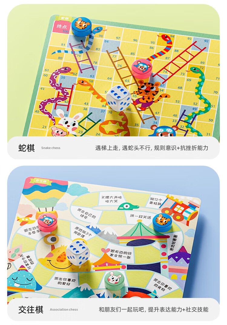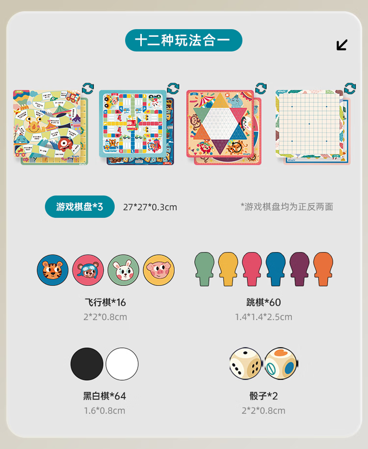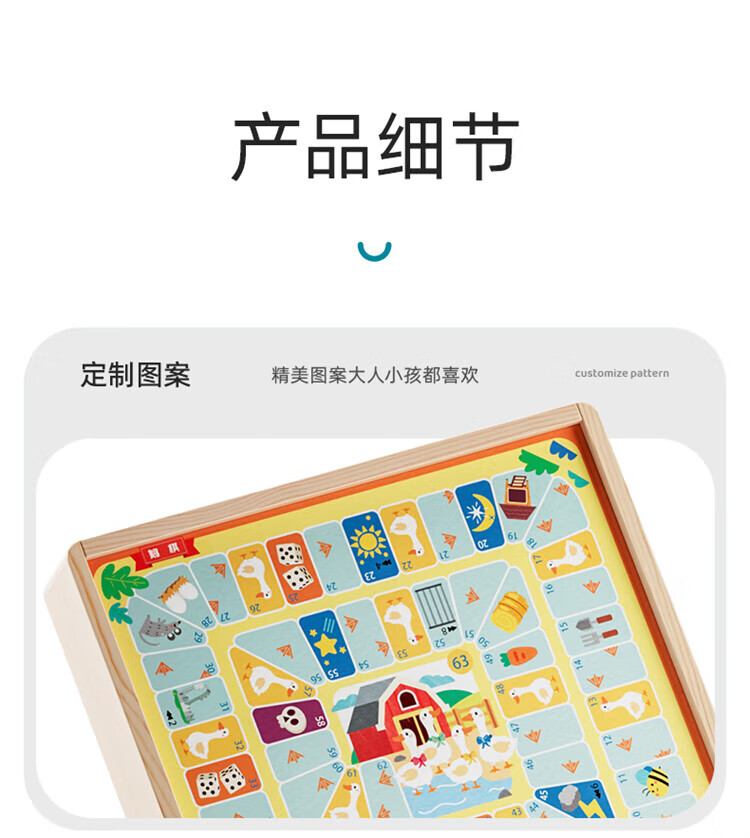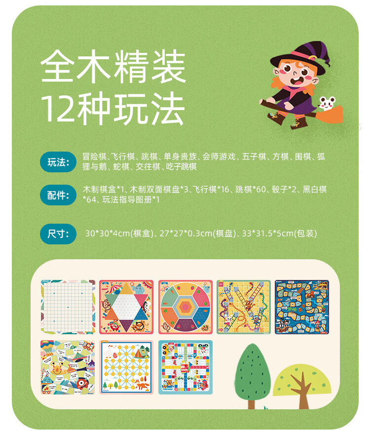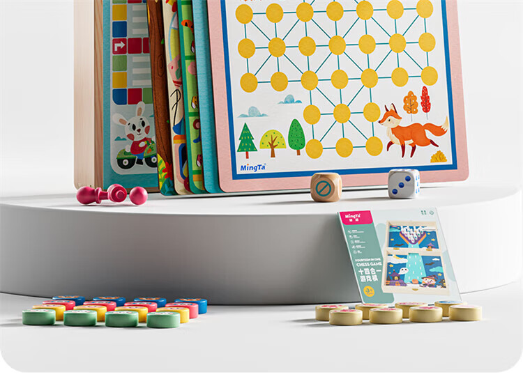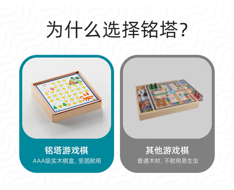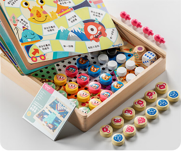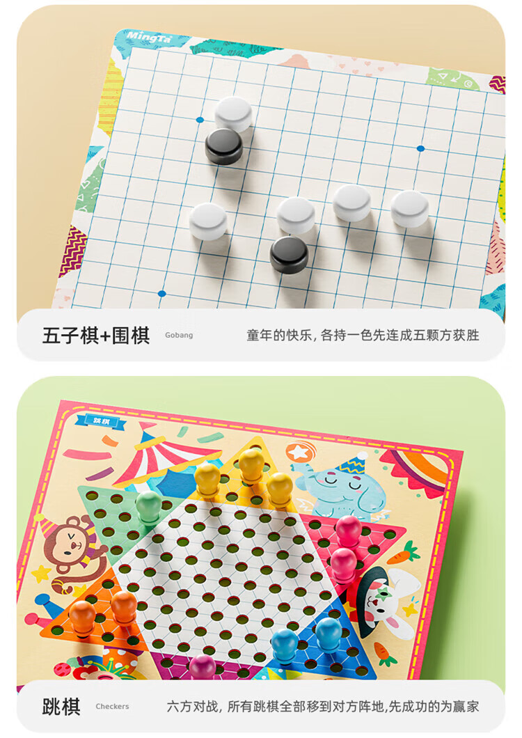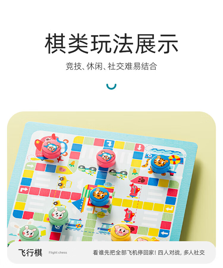 铭塔飞行棋五子跳棋盘多合一男孩女孩儿童益智玩具棋类大全 实木棋盘可收纳+12种玩法