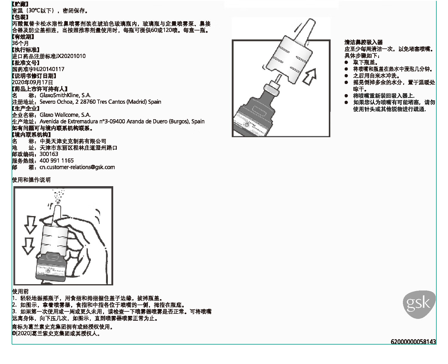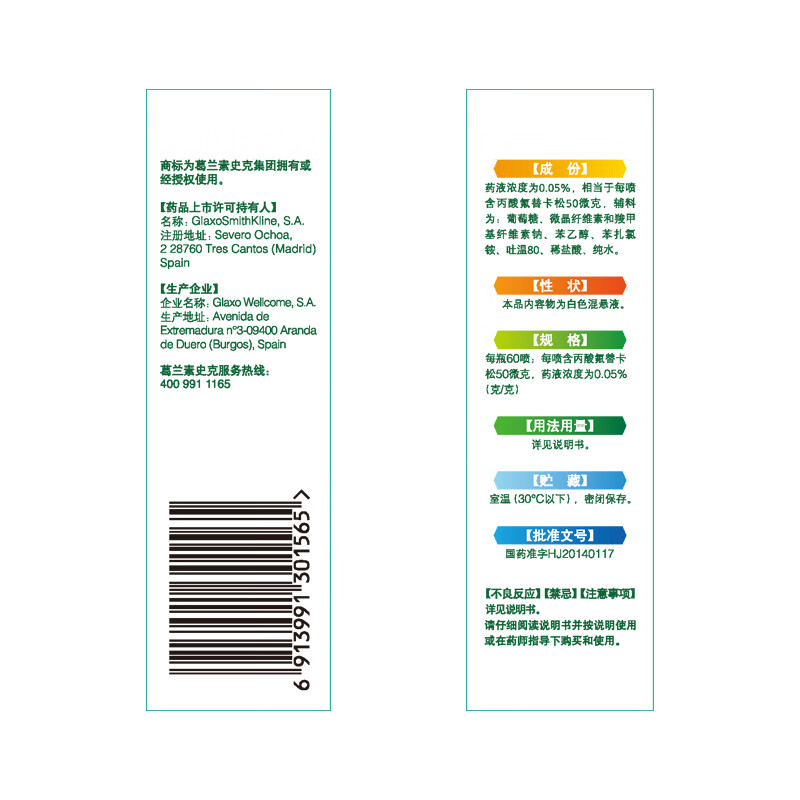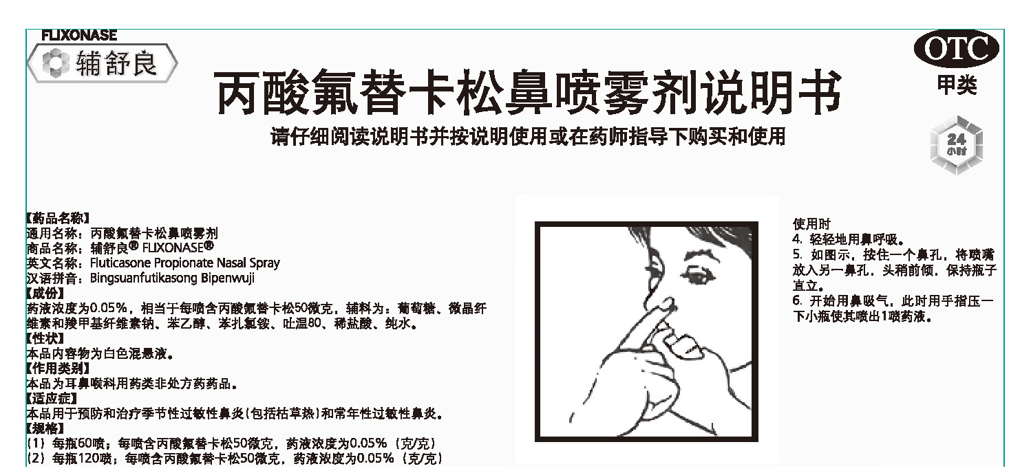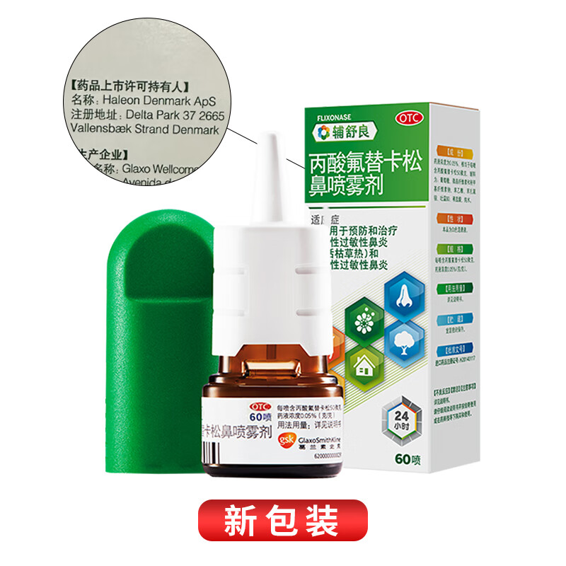 【原研进口】 辅舒良 丙酸氟替卡松鼻喷雾剂 50μg*60喷 预防治疗季节性过敏性鼻炎鼻塞流鼻涕西班牙进口