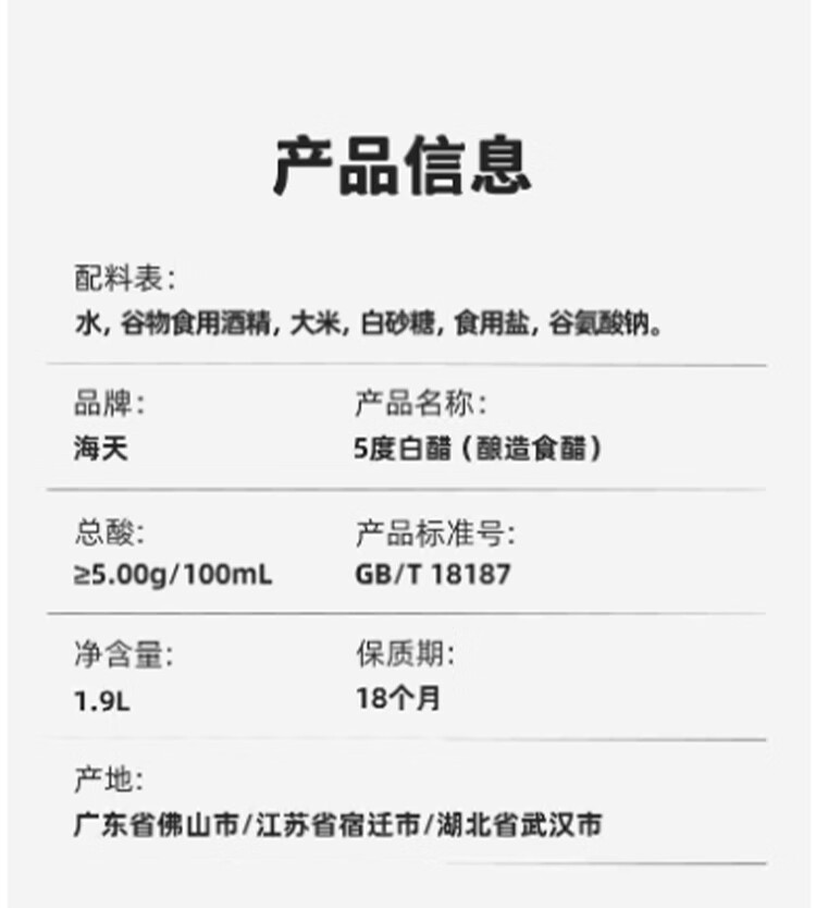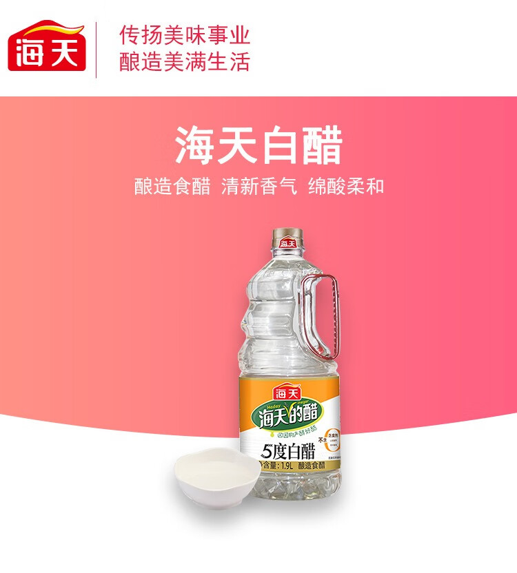 海天 白醋 5度 1.9L 醋酸浓郁 点蘸凉拌炒菜 调味品调味料