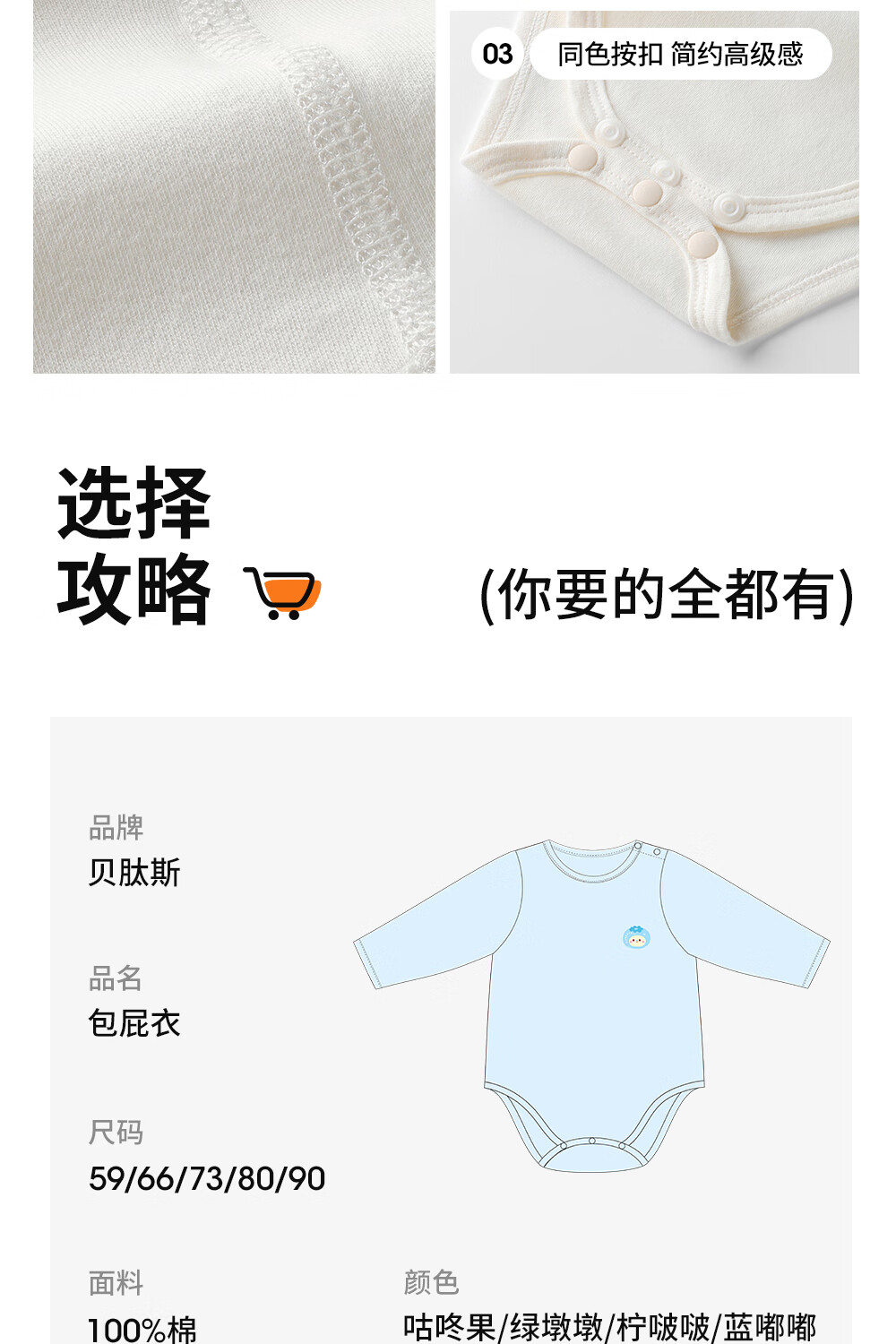 贝肽斯婴儿衣服冬季新款纯棉长袖新生儿包屁衣保暖宝宝连体衣哈衣 柠啵啵 -100%纯棉 59cm