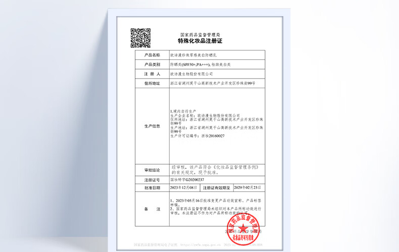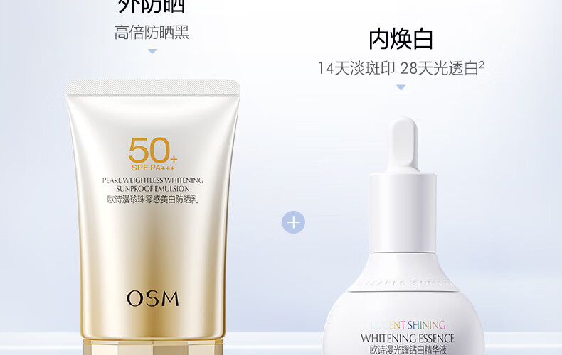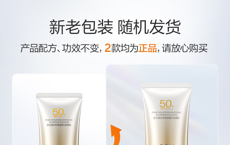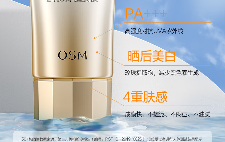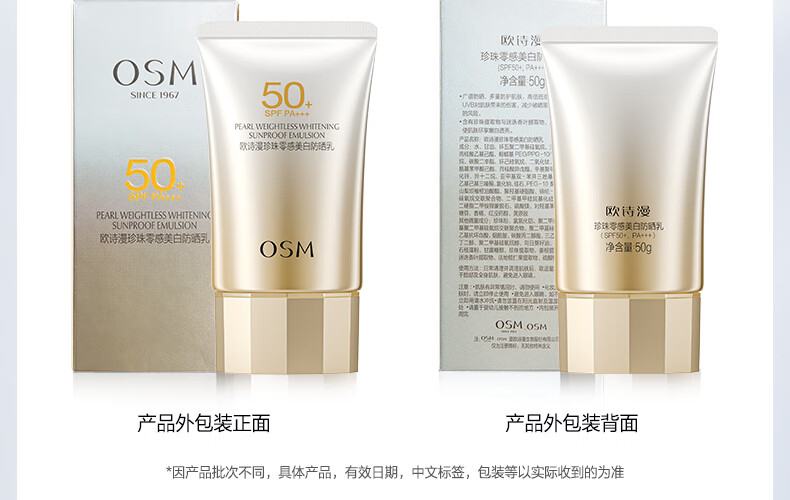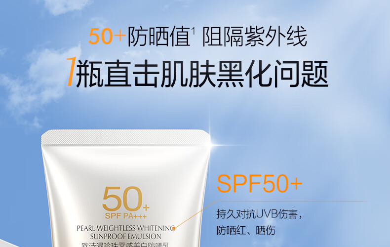 欧诗漫(OSM)防晒霜零感美白防晒隔离乳50g 户外美白耐晒防水化妆品新年礼物