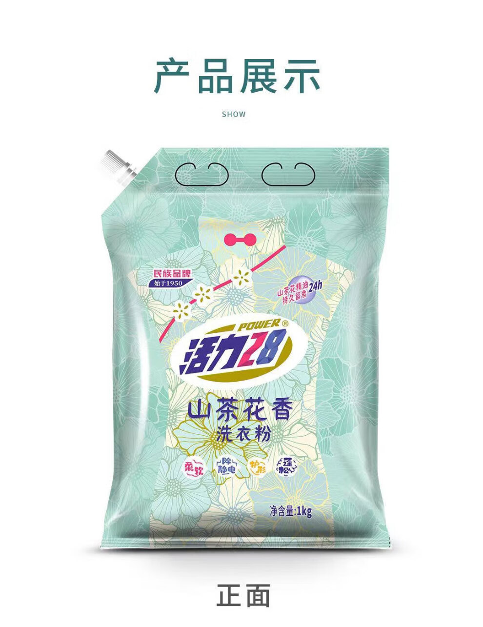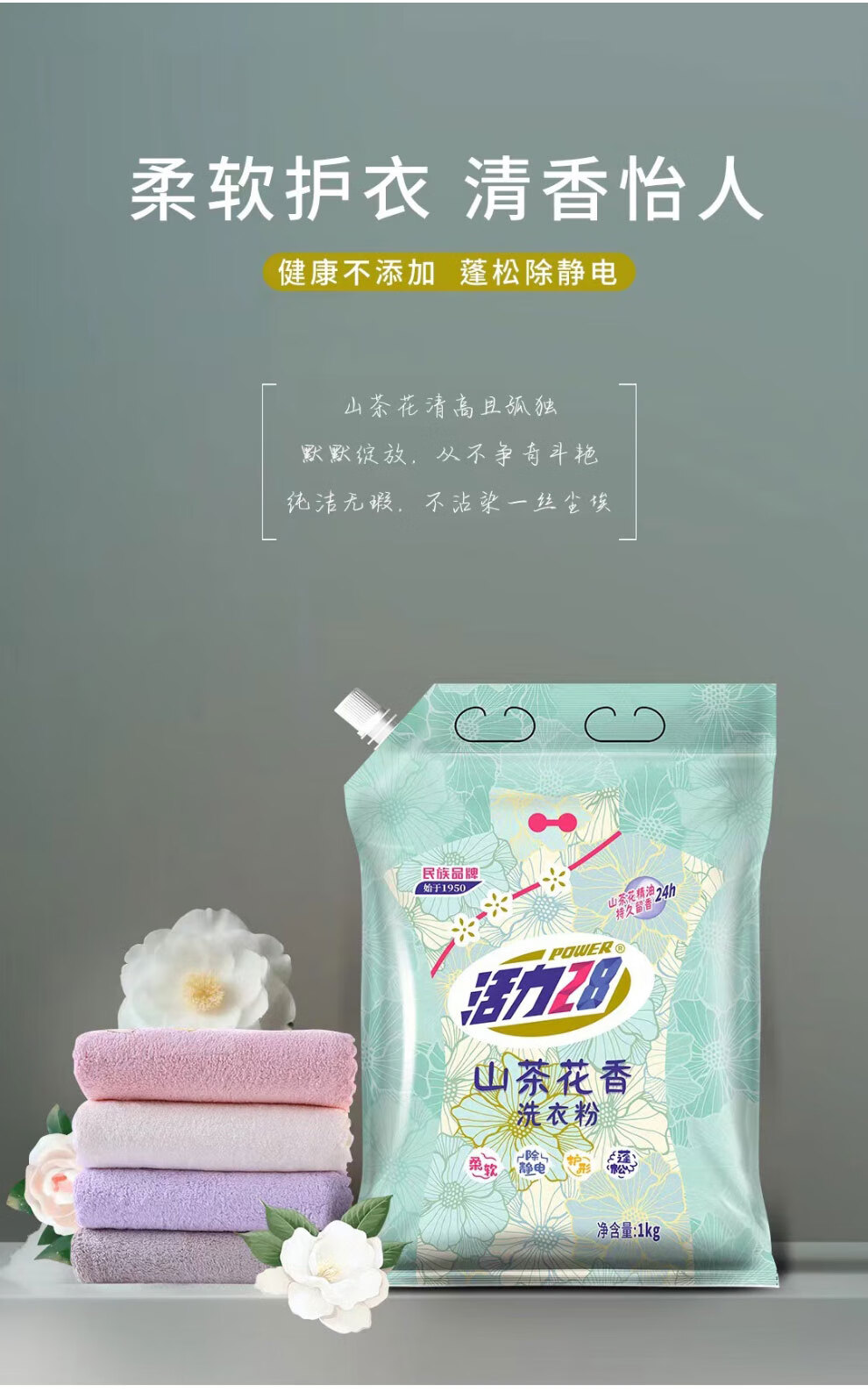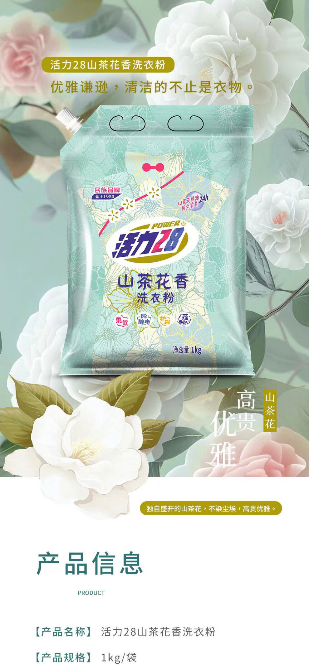 活力28山茶花洗衣粉2斤 去渍持久留香家用机洗手洗不伤手易漂洗无磷1kg