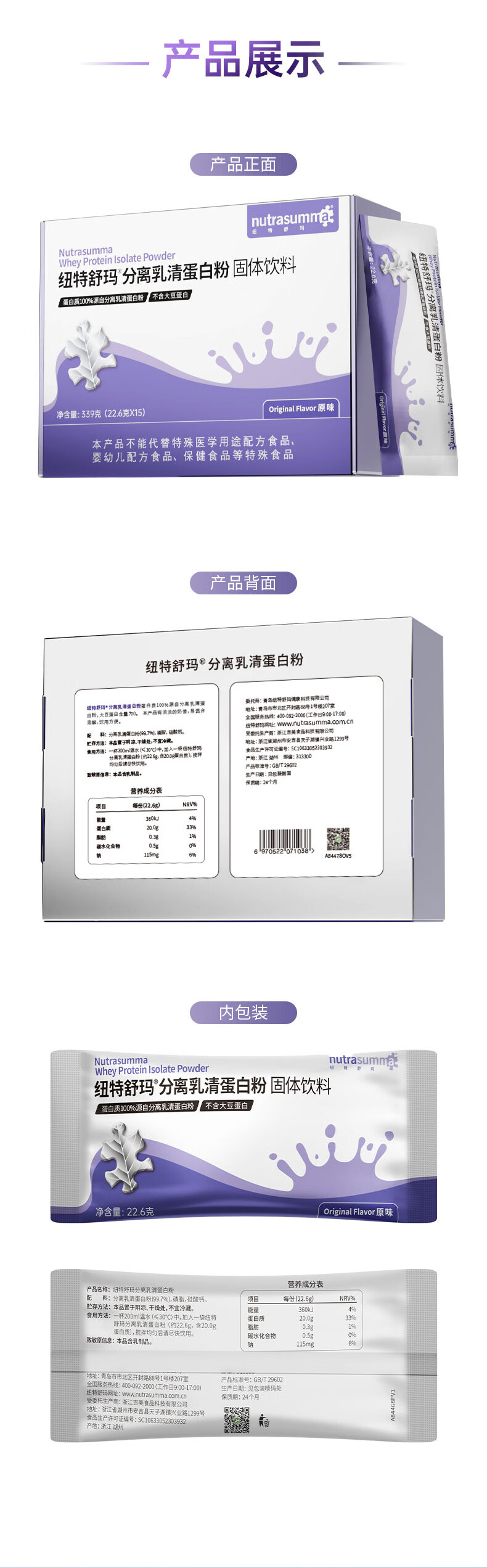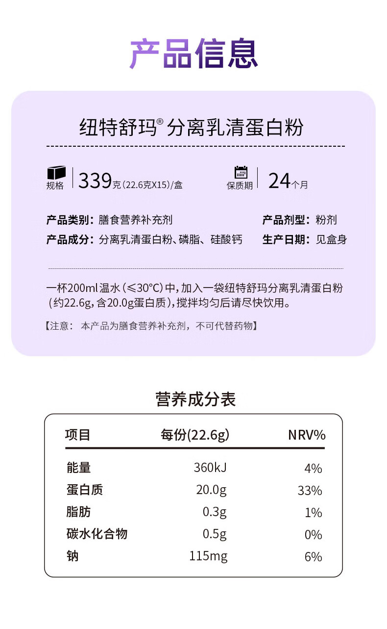 纽特舒玛分离乳清蛋白粉22.6g*15袋/盒年货礼品术后恢复营养品高蛋白补充