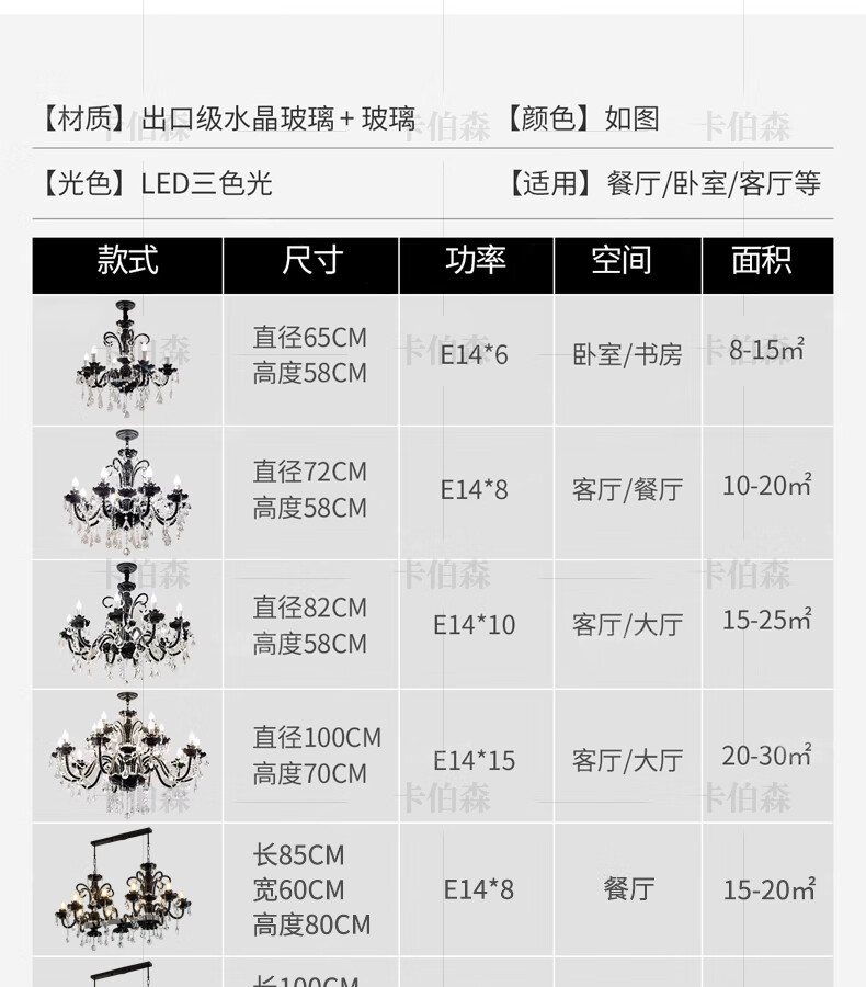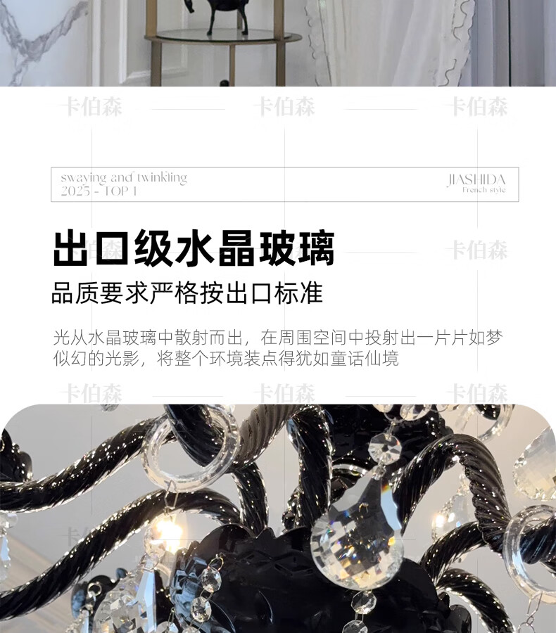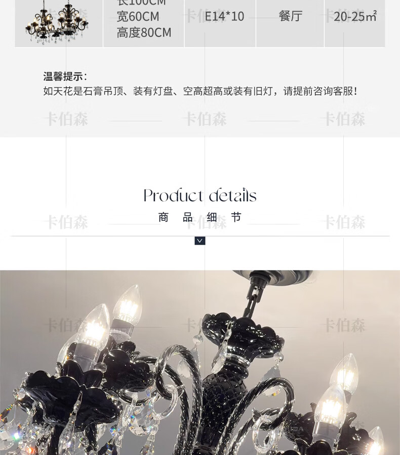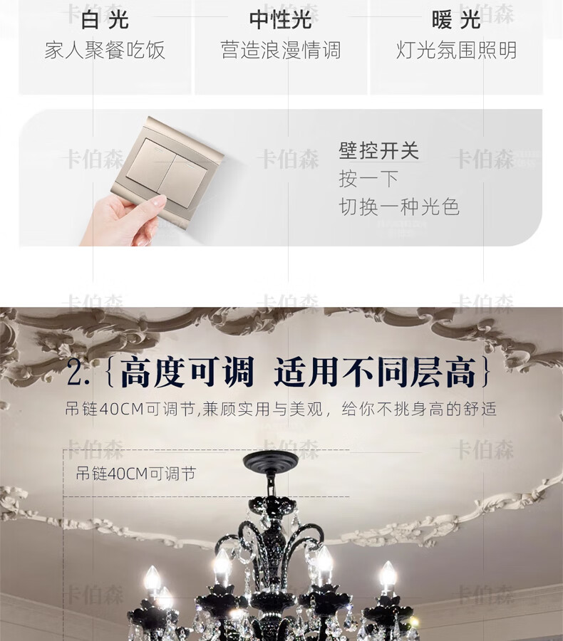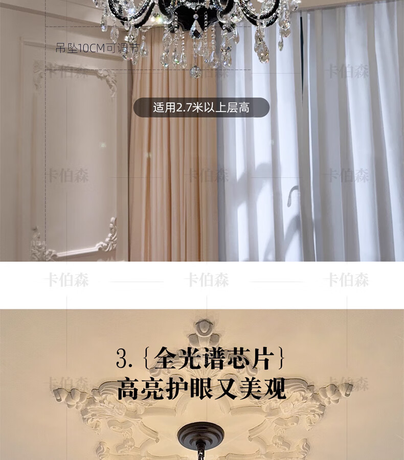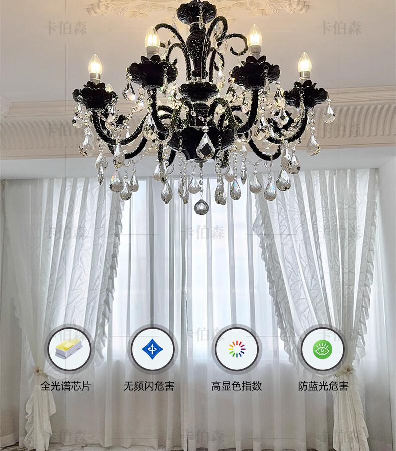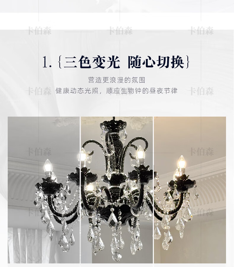 卡伯森欧式客厅吊灯现代轻奢大气复古宫廷风卧室吧台饭厅餐桌餐厅吊灯 6头-直径62*高58CM【三色变光】