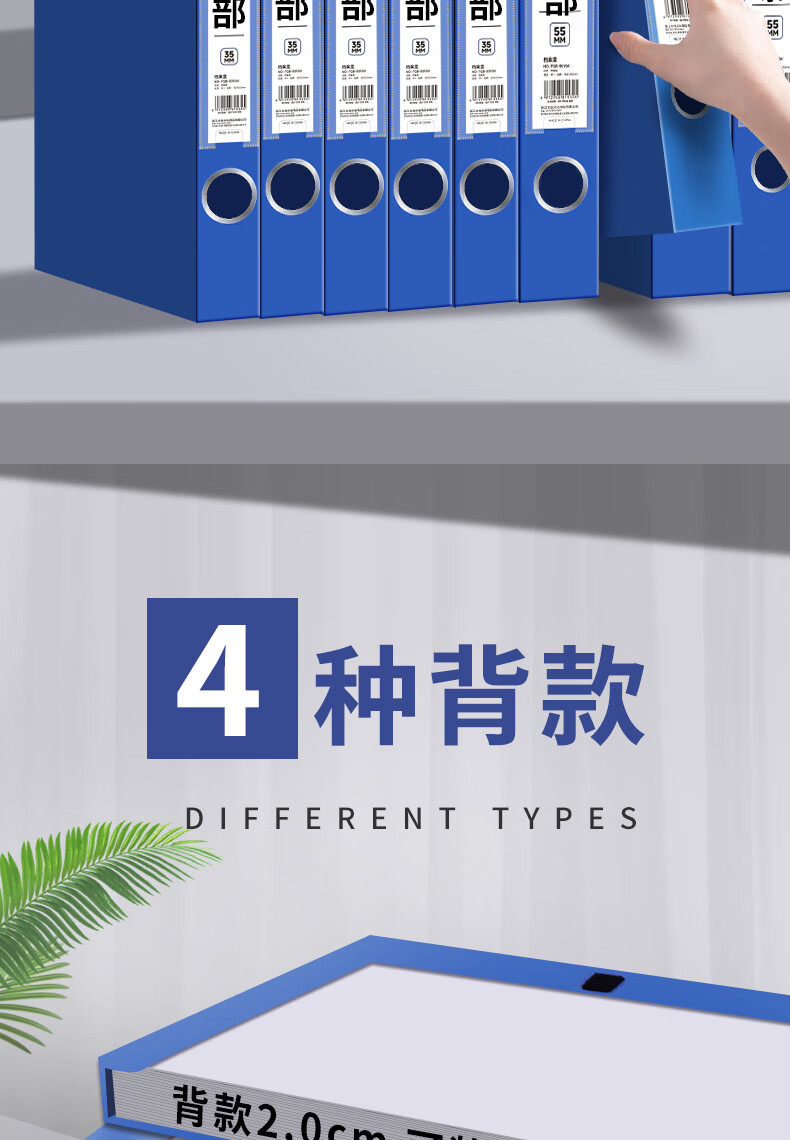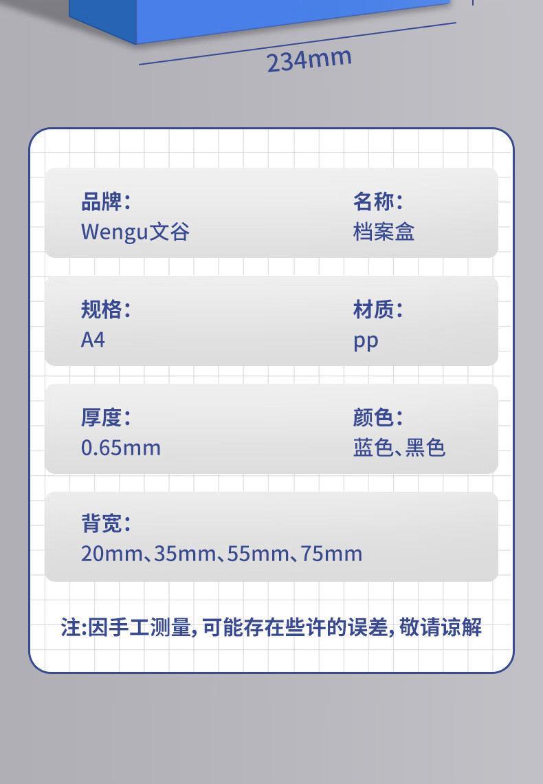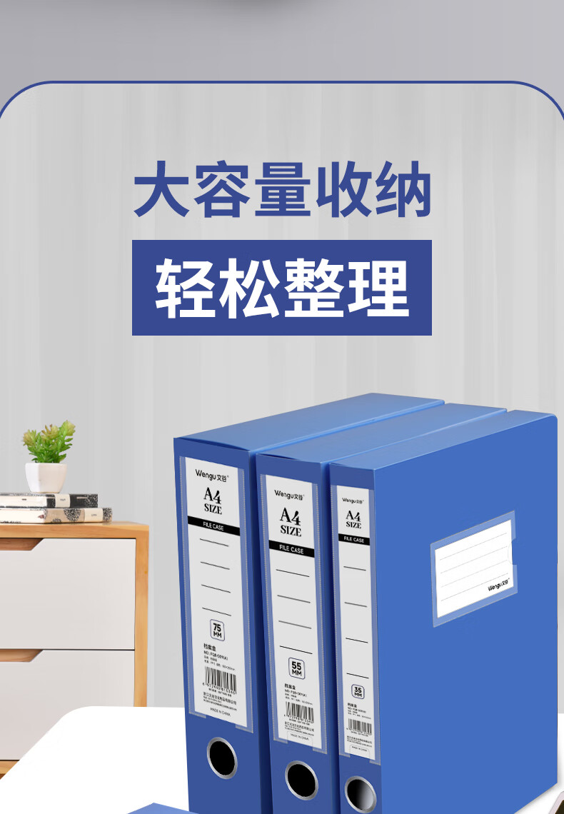 文谷(Wengu)10只35mm档案盒折叠文件盒资料盒粘扣文件票据盒合同资料收纳办公学生用品财会专用DAH(55)-A蓝*10