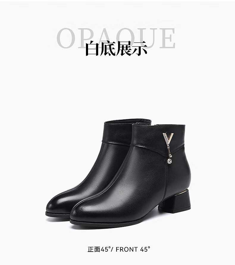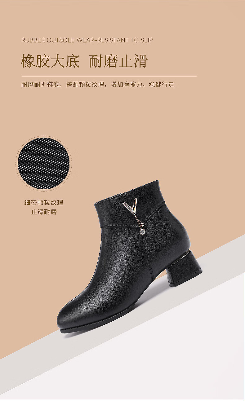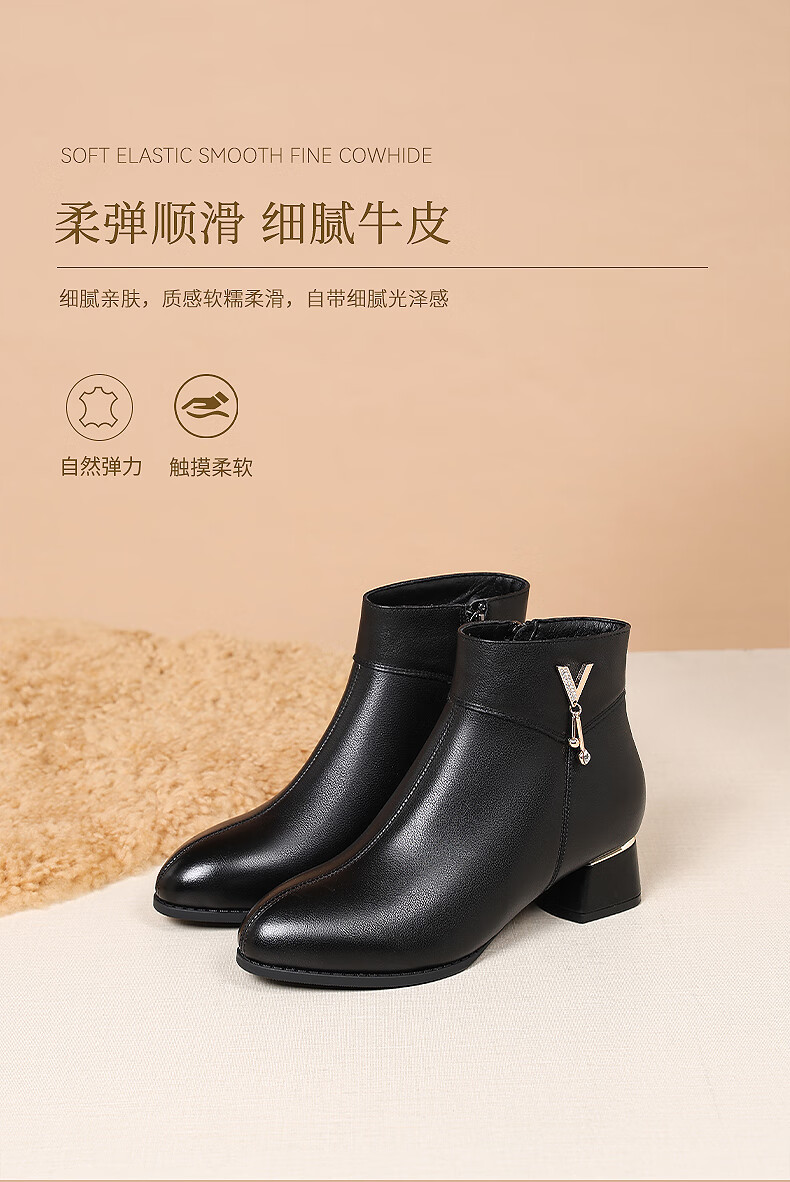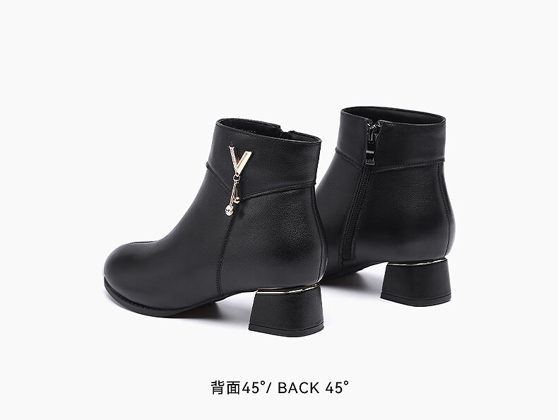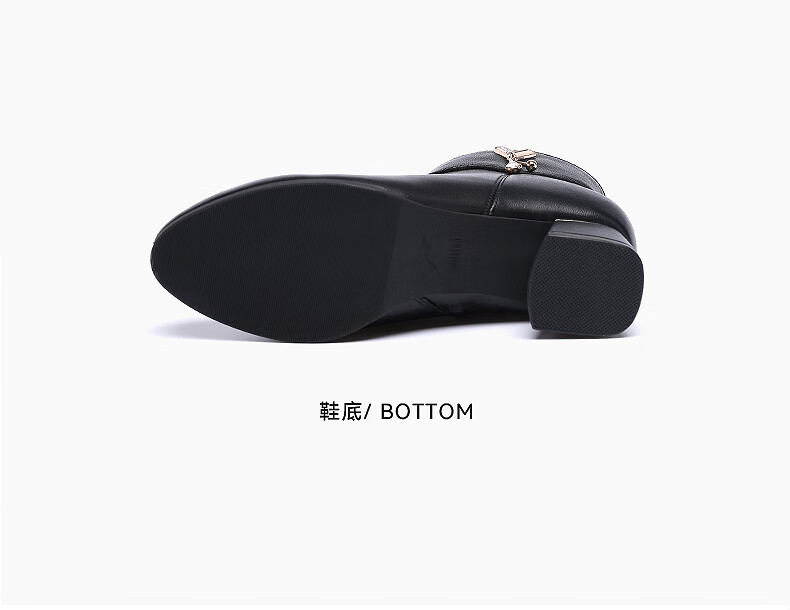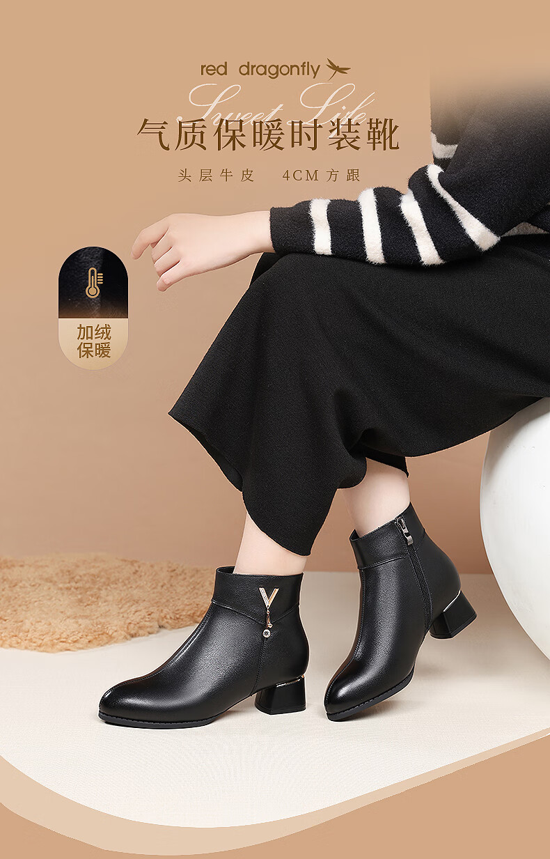 红蜻蜓短靴时装鞋加绒保暖妈妈鞋通勤百搭粗跟增高WLC445181C黑色36