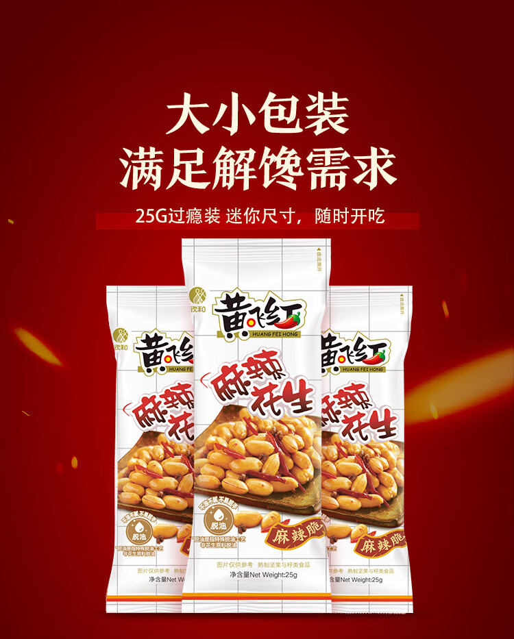 黄飞红(HUANGFEIHONG)麻辣花生米1斤(25g*20包)4种口味休闲零食脱油花生仁 坚果炒货