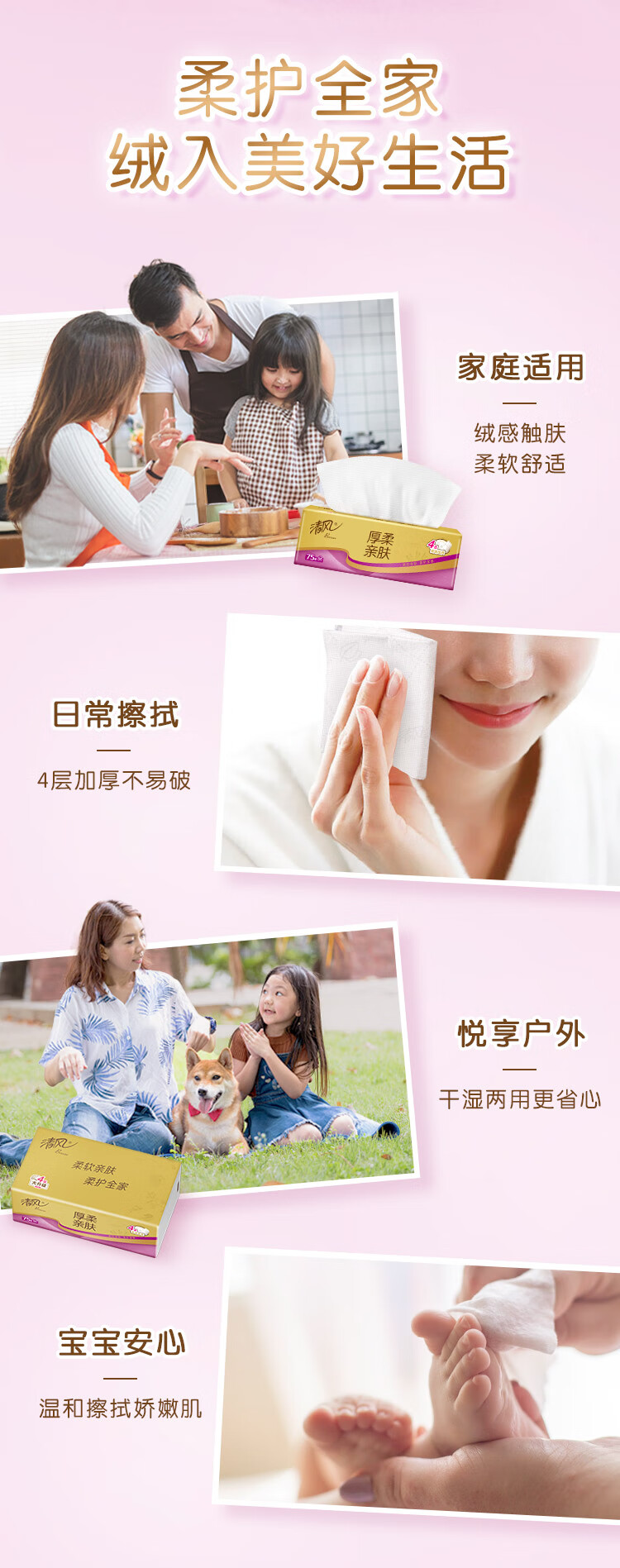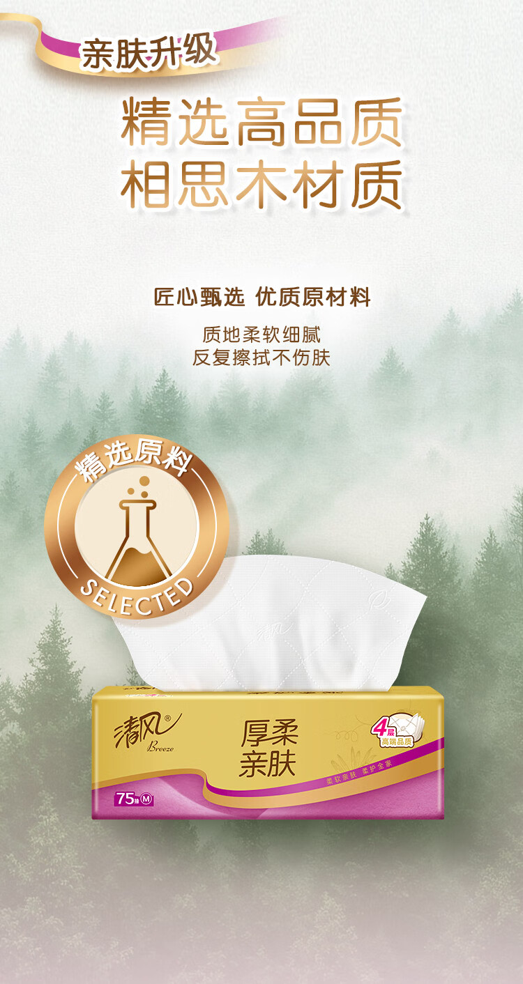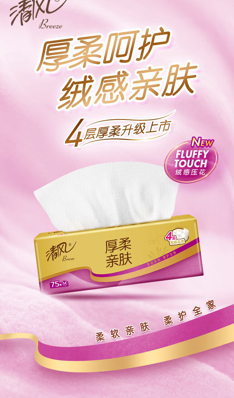 清风【李昀锐同款】抽纸金装厚柔4层75抽*30包M码 纸巾抽面巾纸整箱装