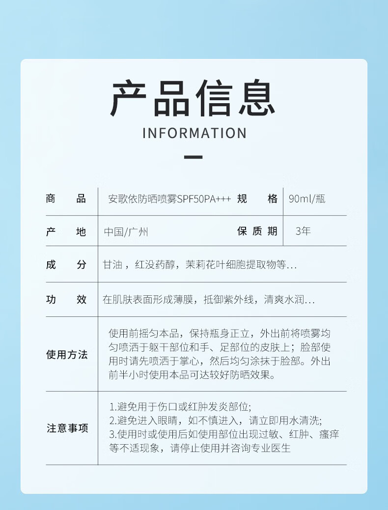 京营甄选【官方】防晒喷雾SPF50高倍隔离防晒防紫外线清爽不油腻 自定义
