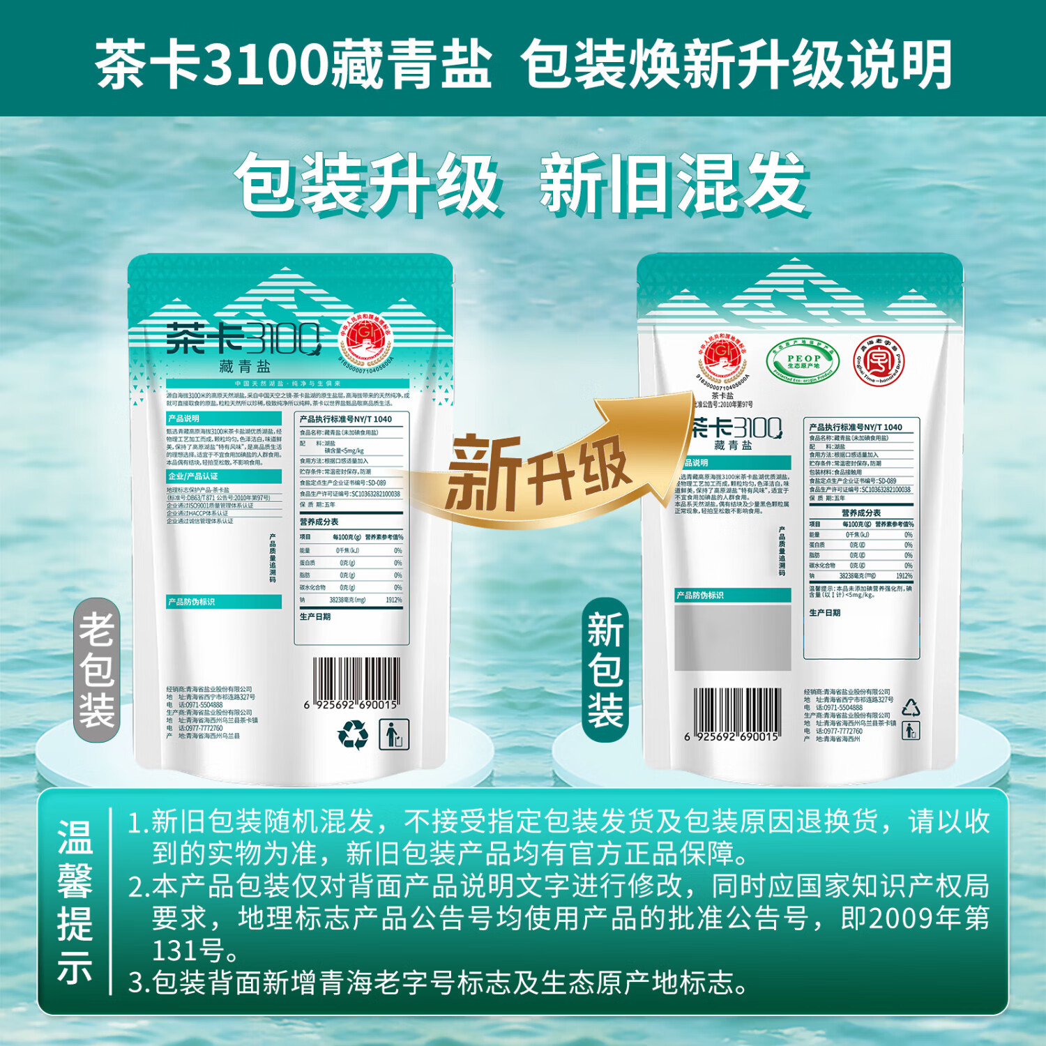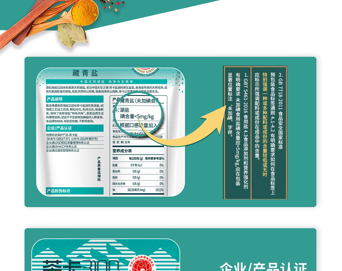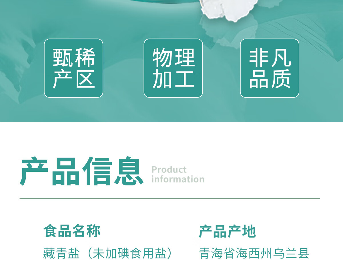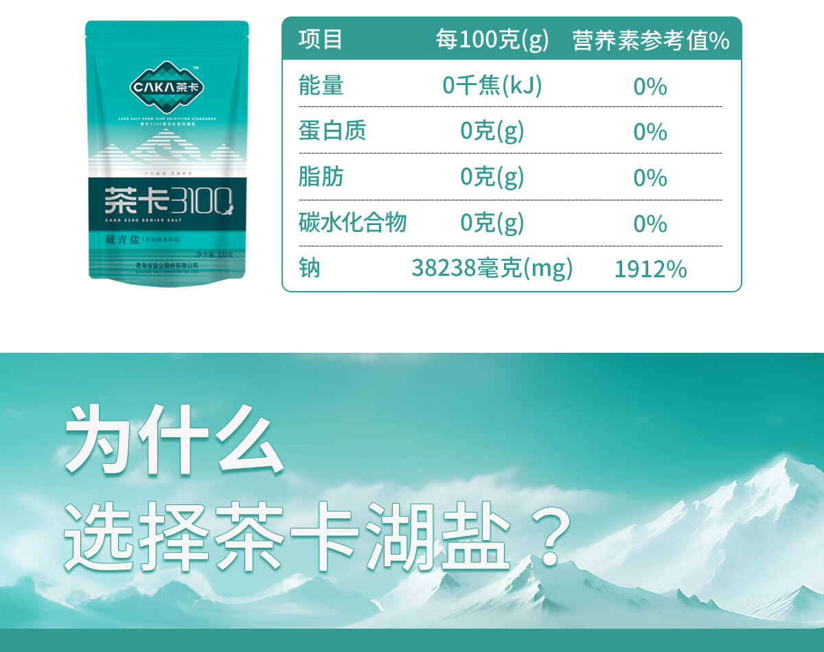 茶卡藏青盐未加碘天然湖盐无抗结剂无添加食用盐自然结晶青藏高原湖盐 3100藏青盐5包*320g