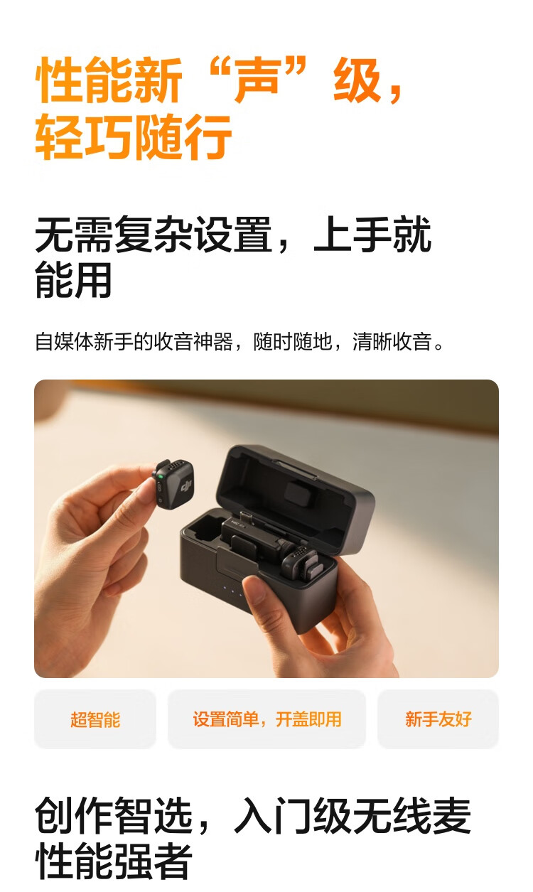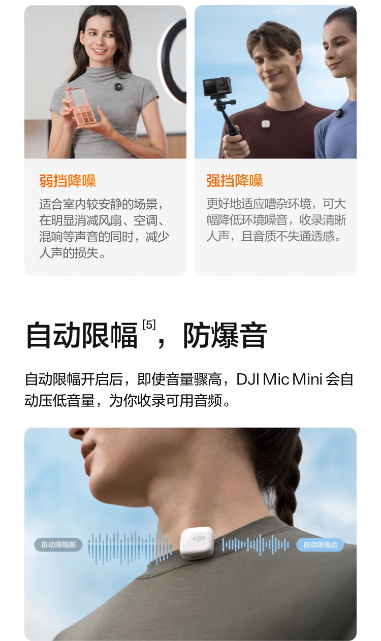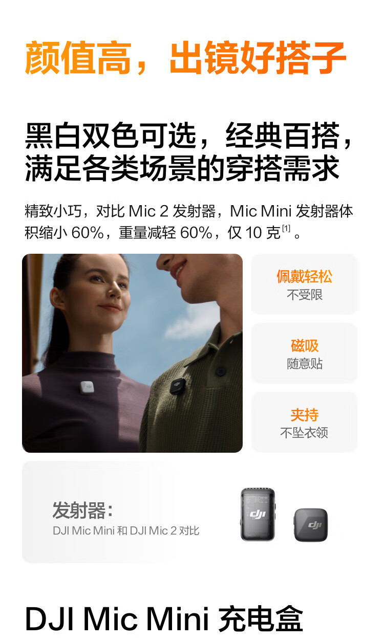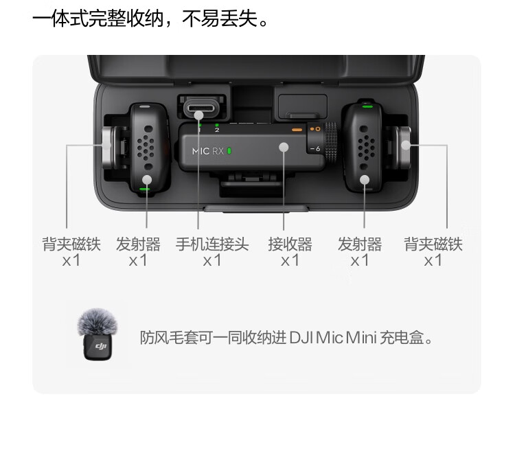 大疆 DJI Mic Mini 迷你无线高品音质 降噪领夹麦克风 户外采访直播vlog手机相机原声级纽扣式收音麦 【相机+手机可用】一拖二(含充电盒) 官方标配【适配安卓+苹果15/16/17系列】