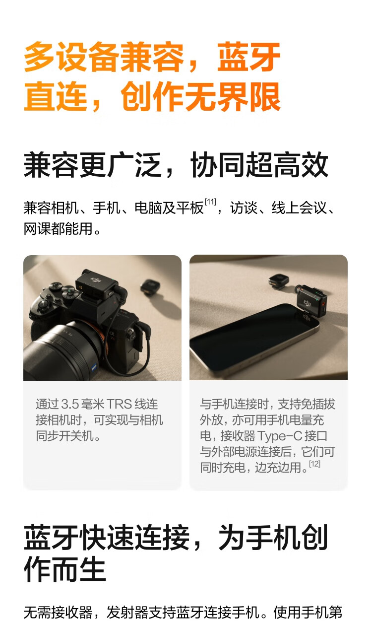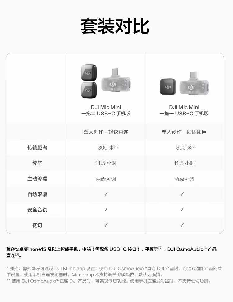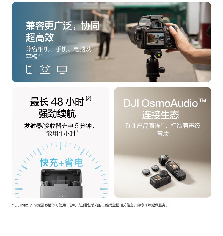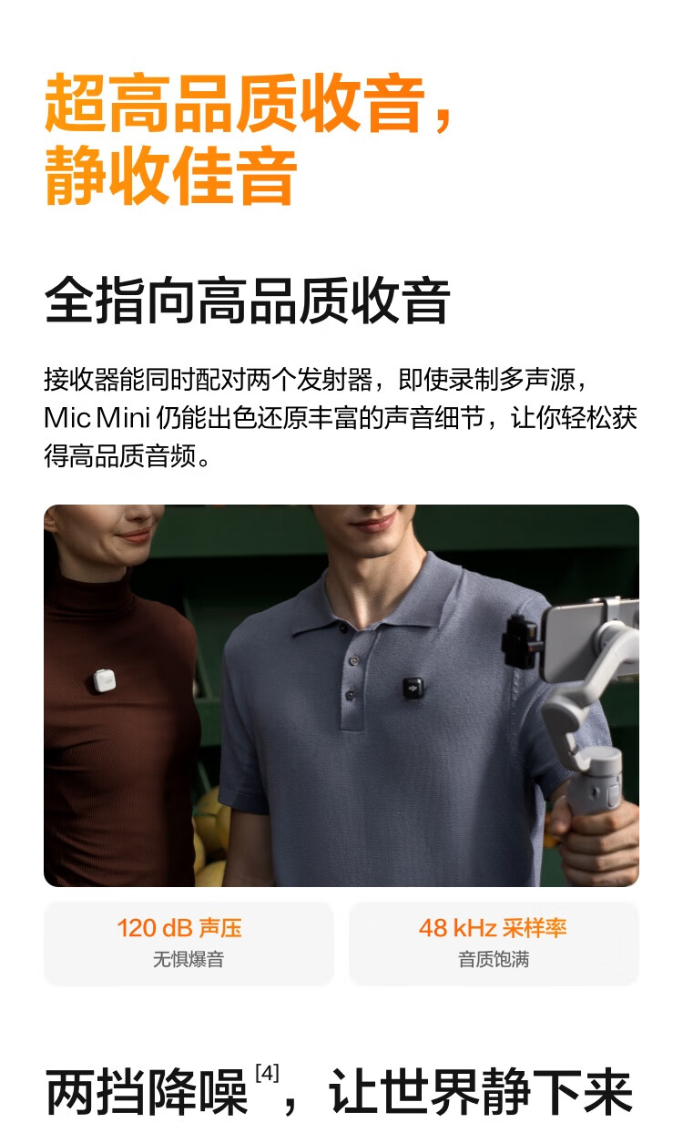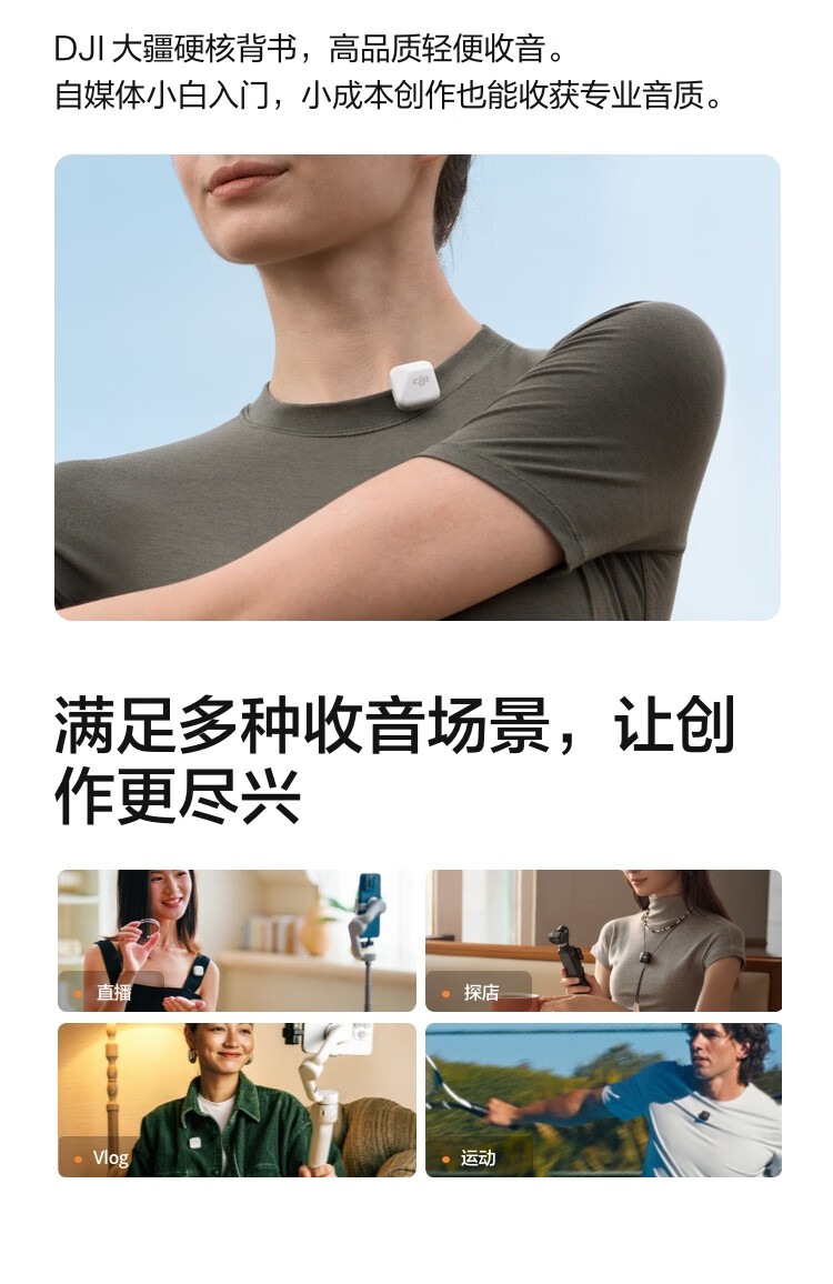 大疆 DJI Mic Mini 迷你无线高品音质 降噪领夹麦克风 户外采访直播vlog手机相机原声级纽扣式收音麦 【相机+手机可用】一拖二(含充电盒) 官方标配【适配安卓+苹果15/16/17系列】