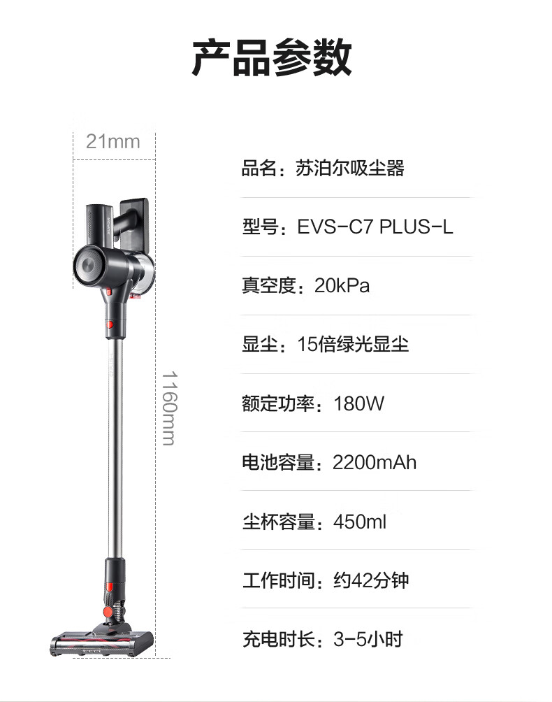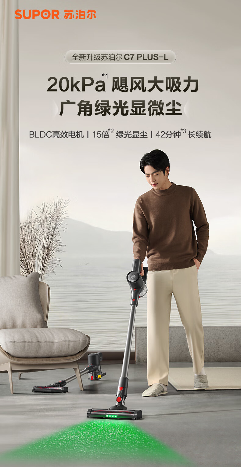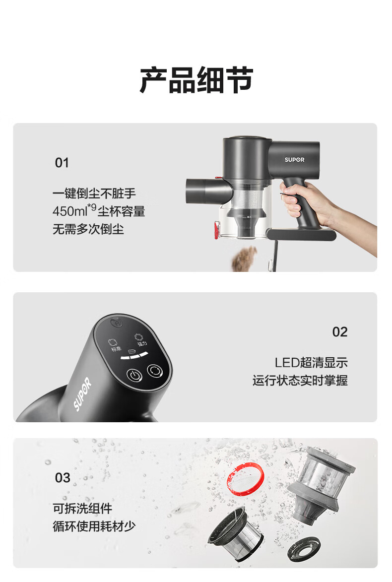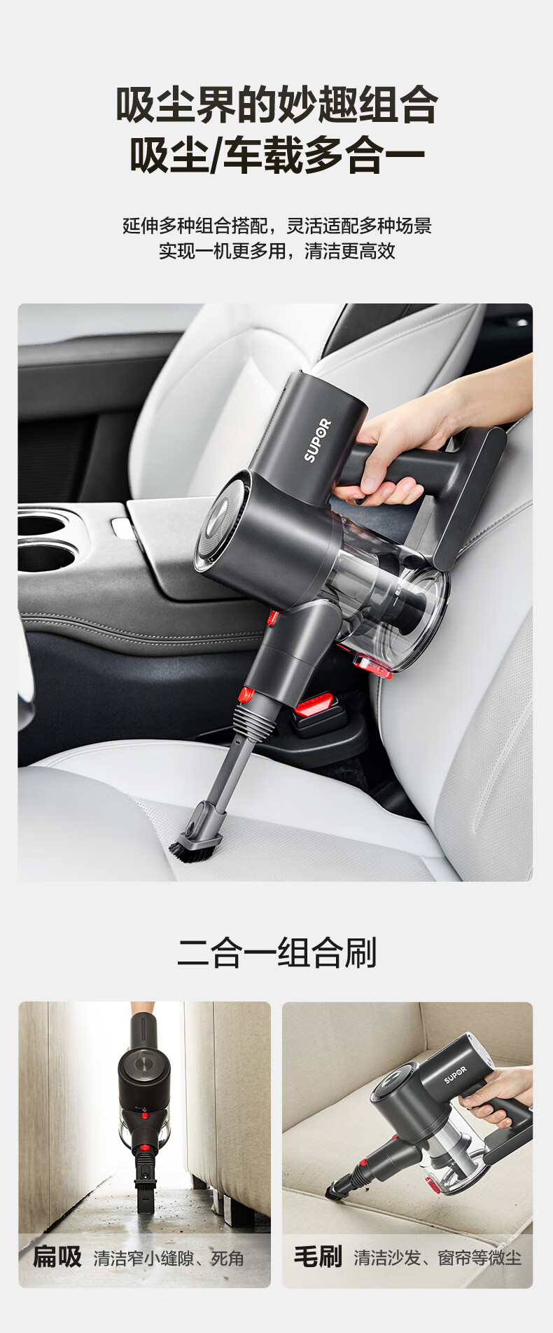 苏泊尔(SUPOR)无线手持吸尘器家用大吸力大功率吸尘长续航宠物家庭适用地毯猫毛狗毛吸毛器C7PLUS-L