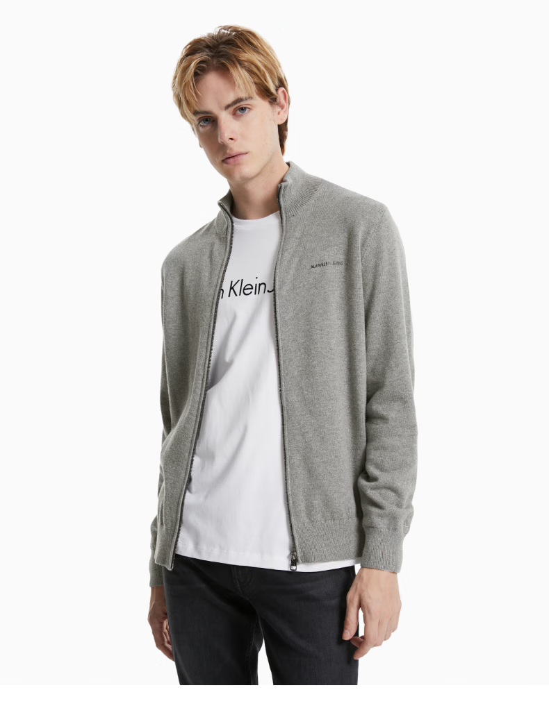 Calvin KleinJeans秋冬男装商务休闲青年ck立领印花拉链针织毛衣开衫外套