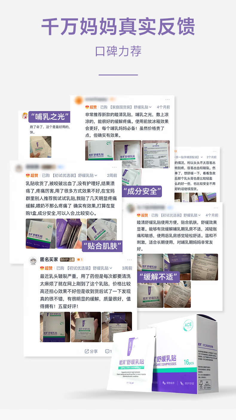 睦清舒缓乳贴缓解哺乳皲裂滋润乳头霜植物修护防干裂乳头膏非羊脂膏 【升级量贩装新版本】16片/盒