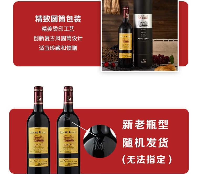 玛茜(RocheMazet)美露干红葡萄酒礼盒装 建发酒业 法国原瓶进口红酒 热门商品推荐 750mL 1瓶