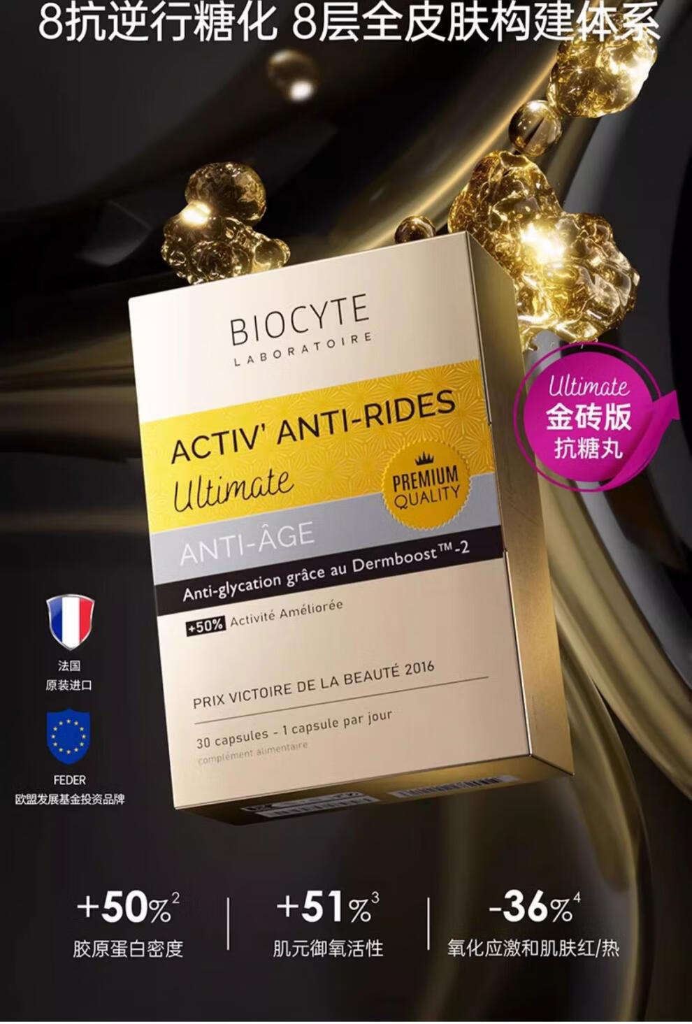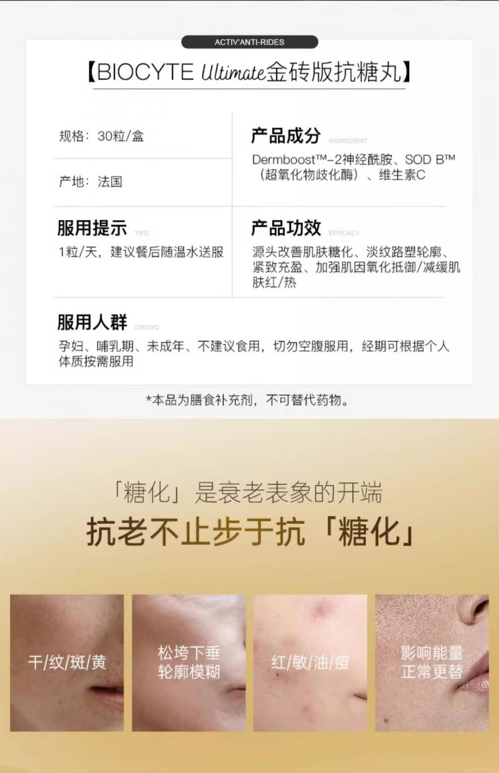 Biocyte法国碧维斯Biocyte六代金砖抗糖丸活性抗糖丸饮祛黄淡纹抵御正品 30粒*12盒 囤货特惠【共360粒】