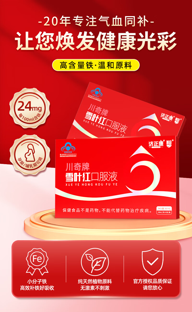 济正康官方正品月经调理黄芪少量发黑痛经卵巢养护川奇牌雪叶红口服液 气血调理巩固装 11%顾客选择 60ml*2盒