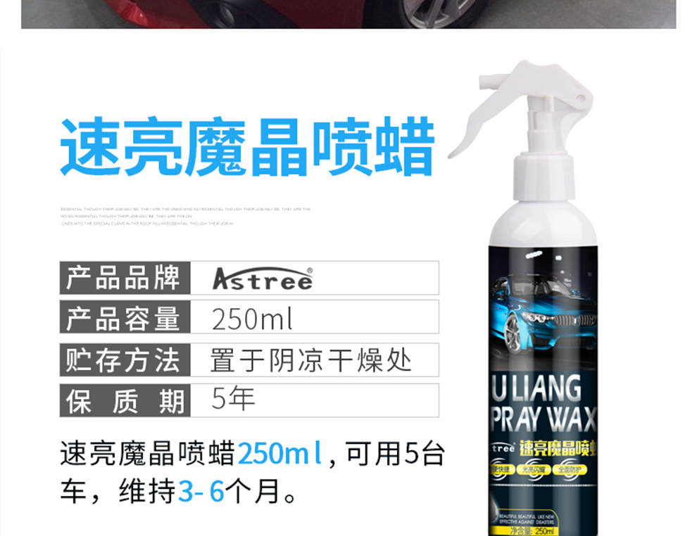 Astree汽车漆面镀膜剂 车漆水晶镀膜封釉上光硬度 玻璃后视镜驱水剂防雨