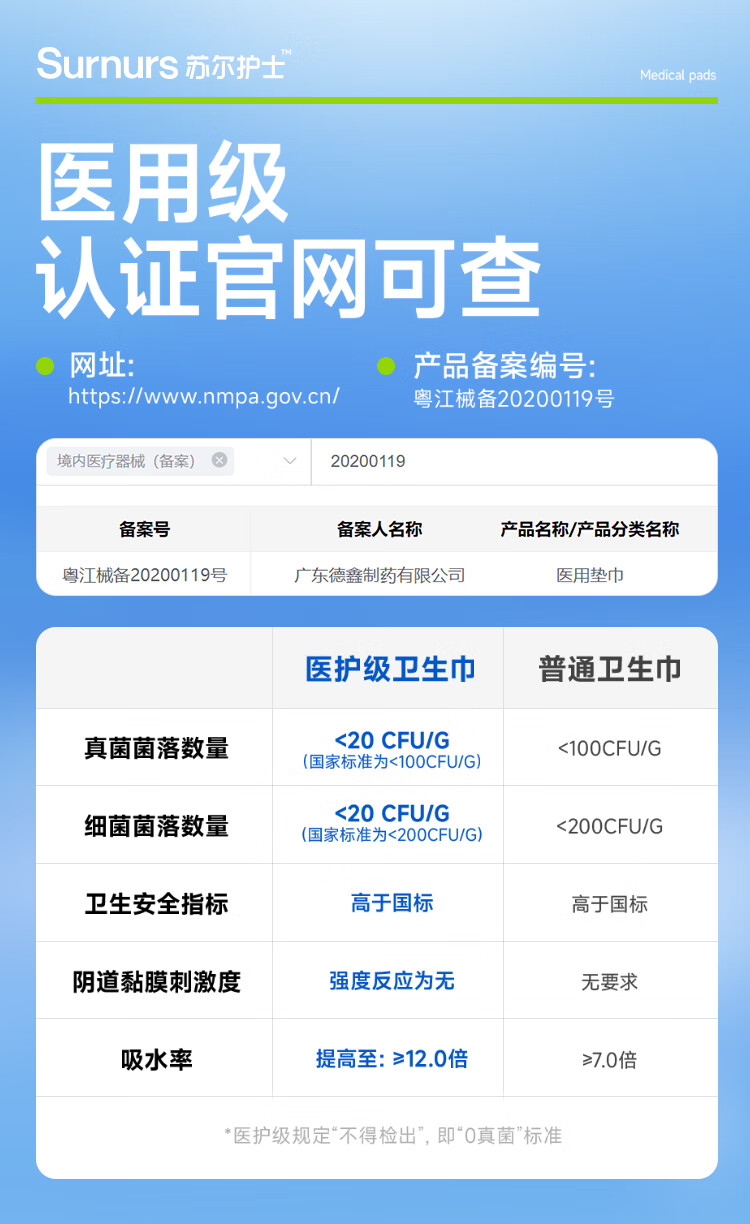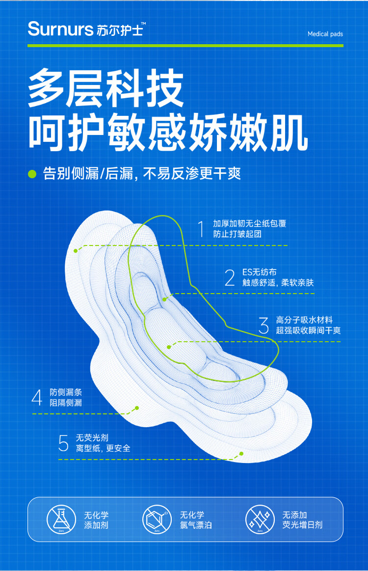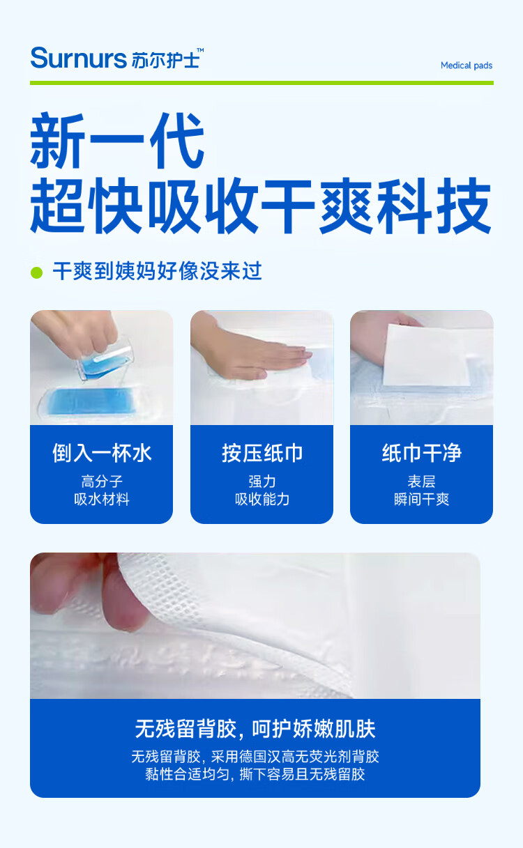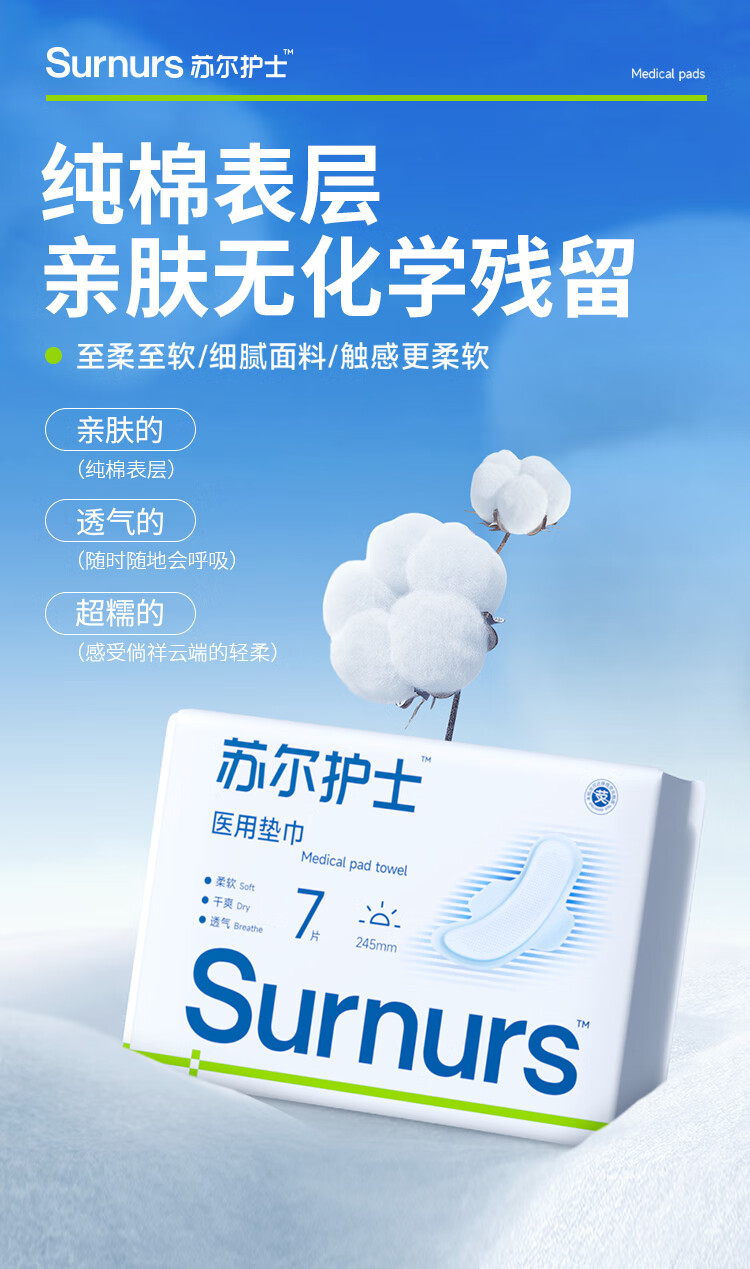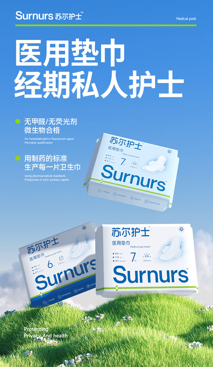 苏尔护士医用加长夜用360mm卫生巾2包械字号姨妈巾经期护理医用垫巾 加长360*5包(共20片)