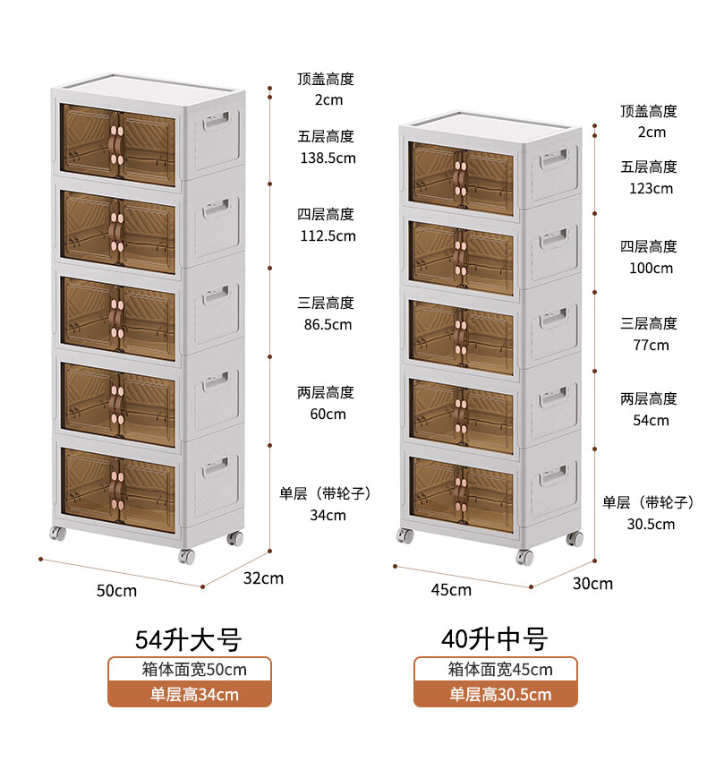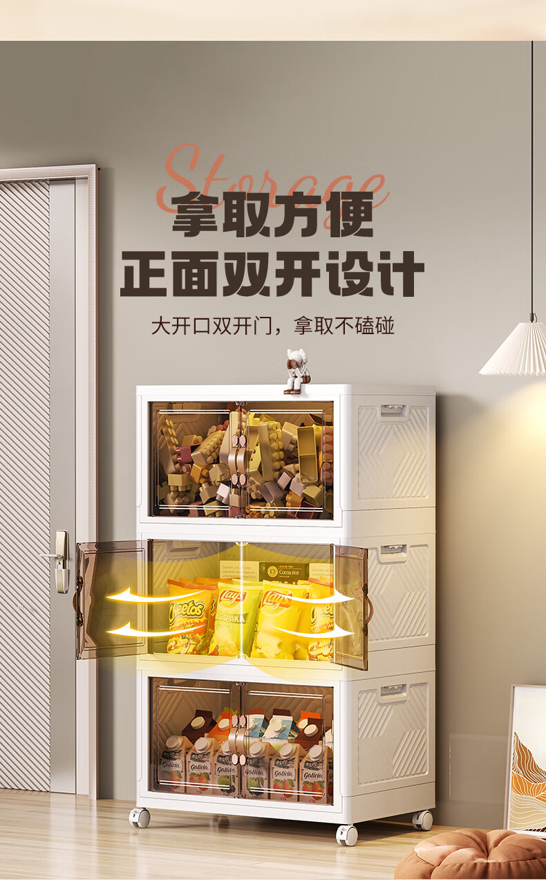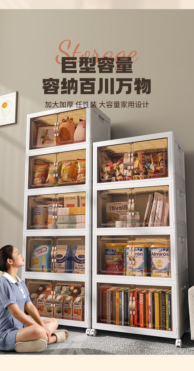炬意(JY)收纳柜免安装可折叠简易衣柜大容量收纳箱卧室宿舍客厅零食储物柜 加强加大号长55*宽35*高36.5cm 4层-带可拆卸轮