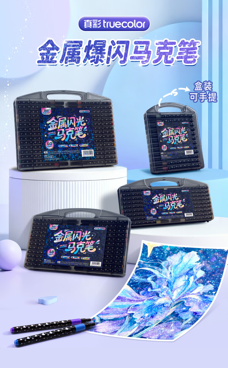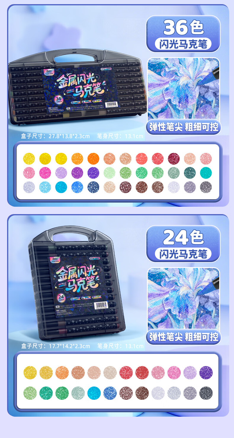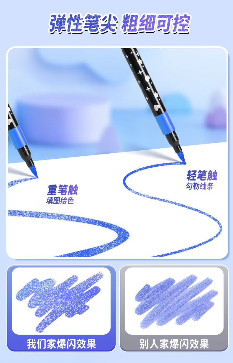 真彩荧光笔彩色闪光马克笔儿童炫彩啫喱笔小学生用软头画画划重点记号笔手账标记闪粉笔水彩流沙笔 24色【闪光马克笔】大容量软头
