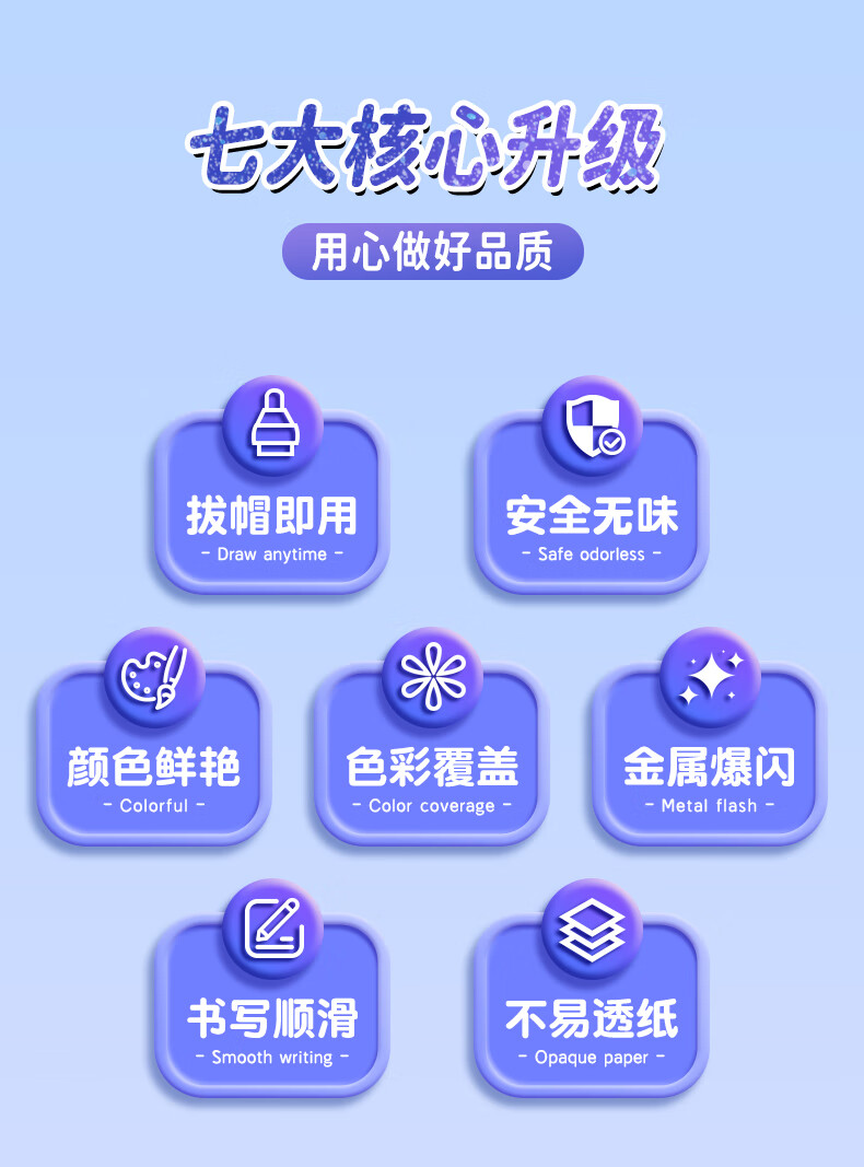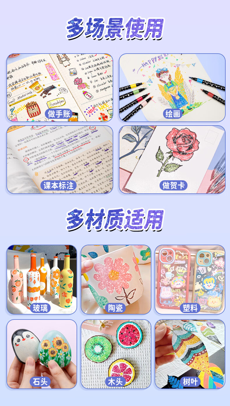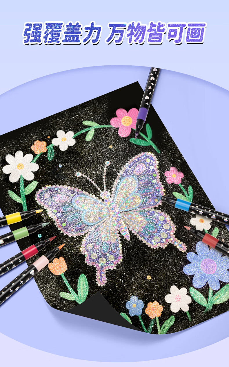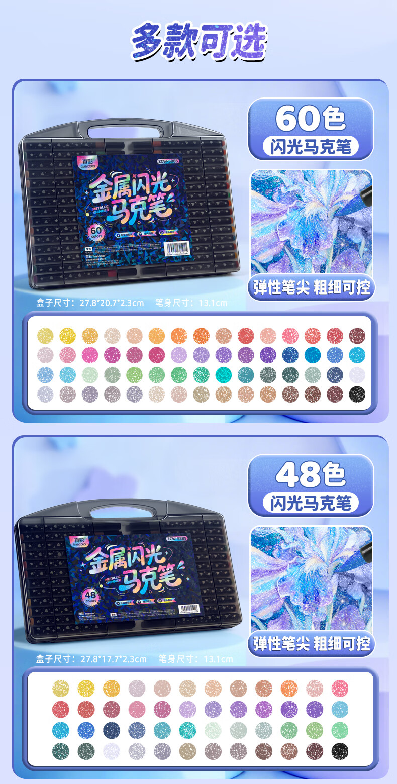 真彩荧光笔彩色闪光马克笔儿童炫彩啫喱笔小学生用软头画画划重点记号笔手账标记闪粉笔水彩流沙笔 24色【闪光马克笔】大容量软头