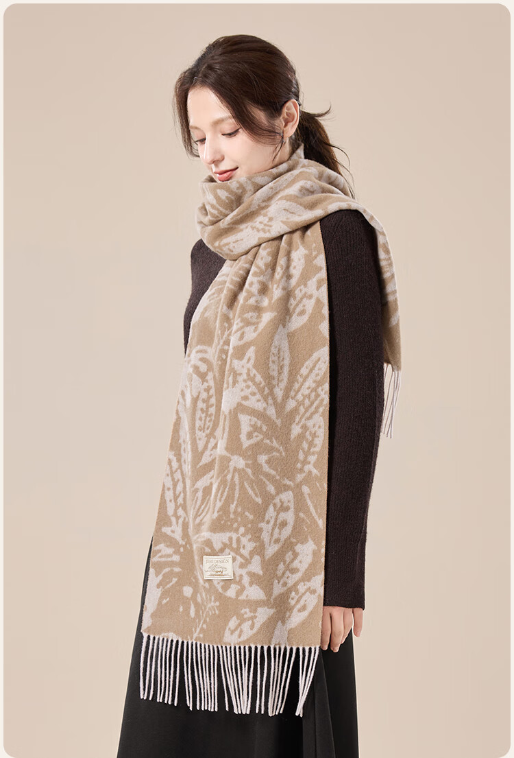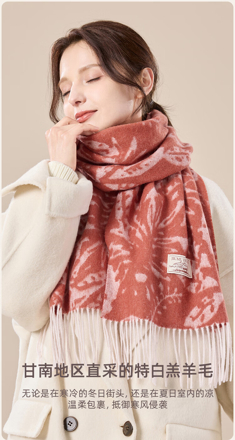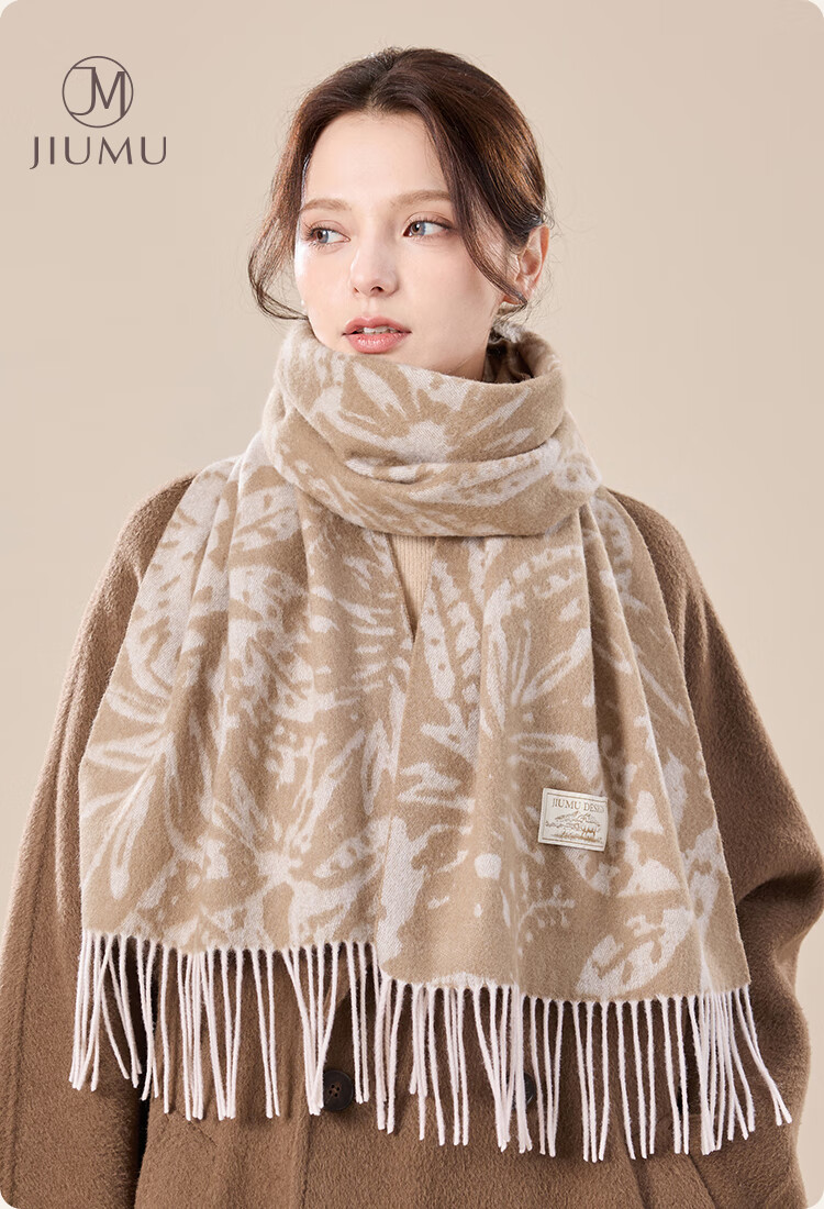玖慕(JIUMU)纯羊毛围巾女秋冬季披肩女士保暖围脖生日圣诞礼物送女生 礼盒装 SZ068 驼色