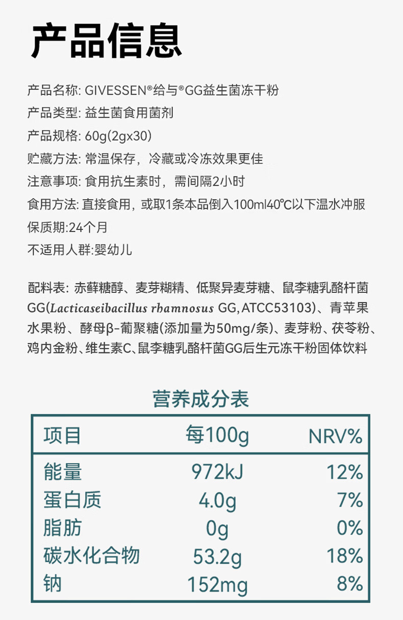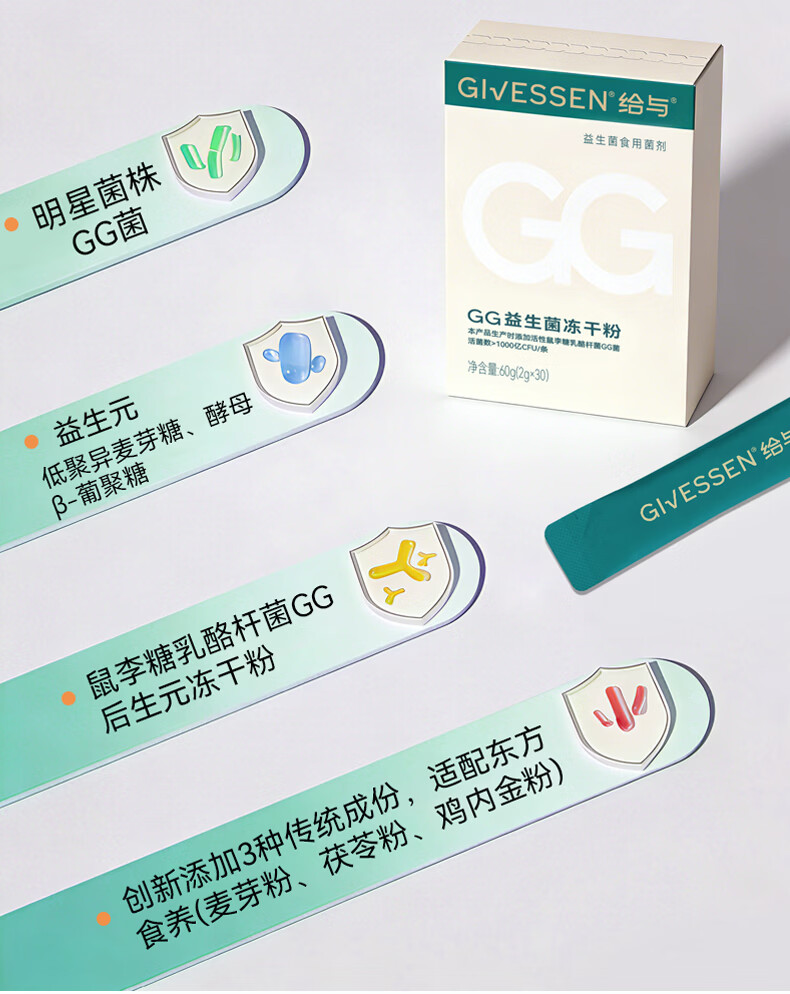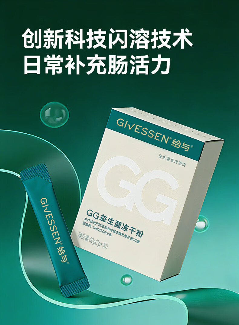 给与Givessen 1000亿活性GG益生菌冻干粉 益生元菌粉固体饮料 30条*1盒