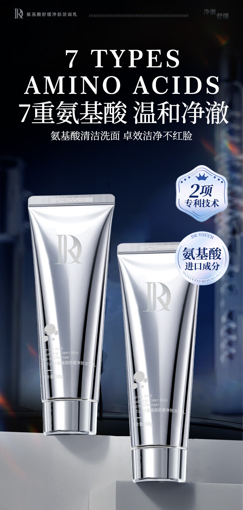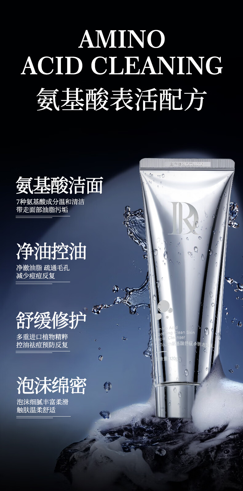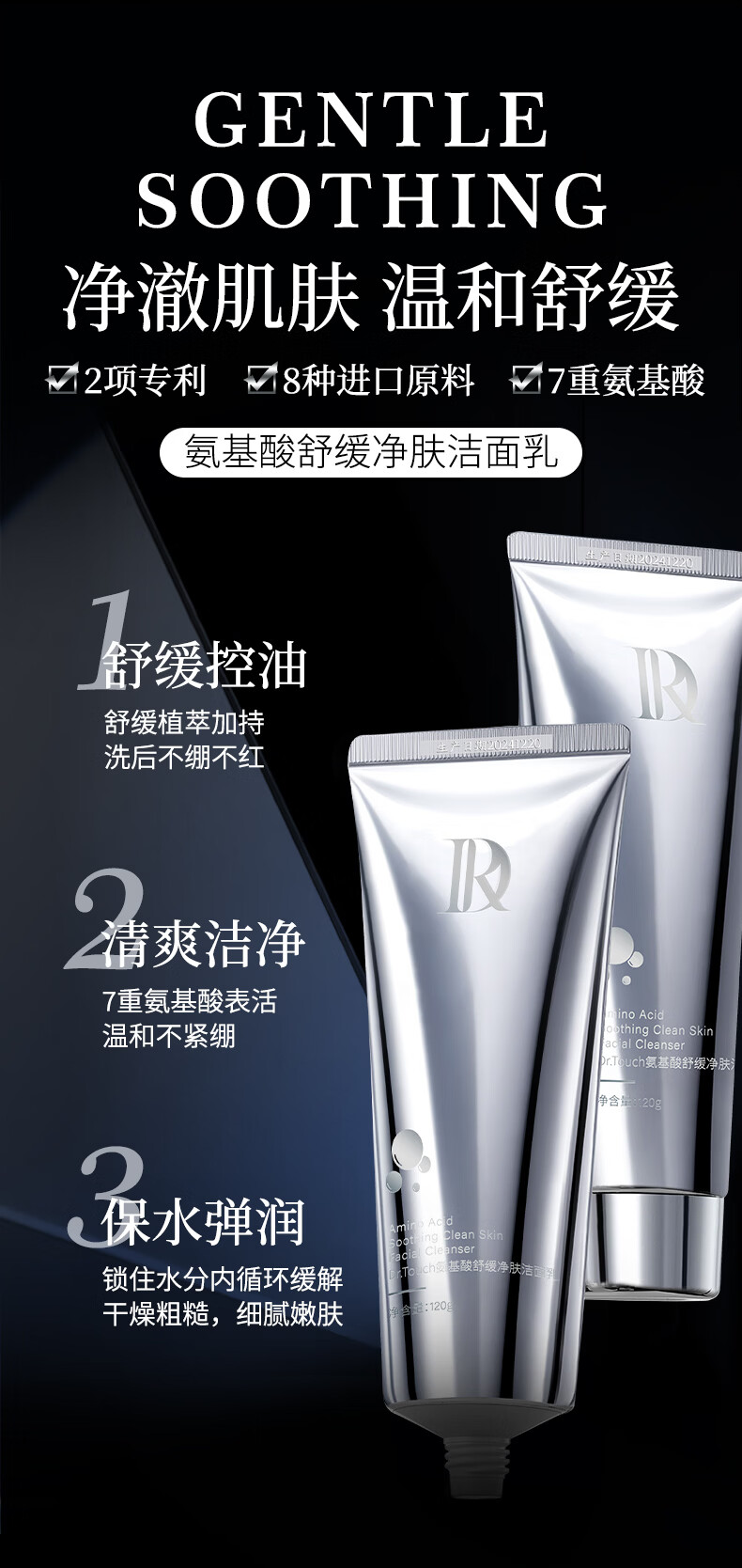 DR.TOUCH氨基酸舒缓洗面奶深层清洁收缩毛孔保湿控油平衡洁面乳 氨基酸洁面乳120g【3支装】