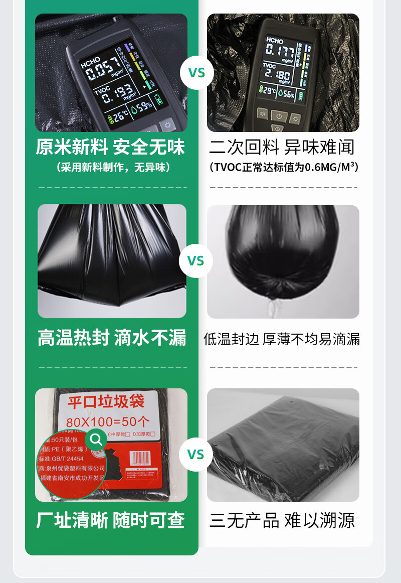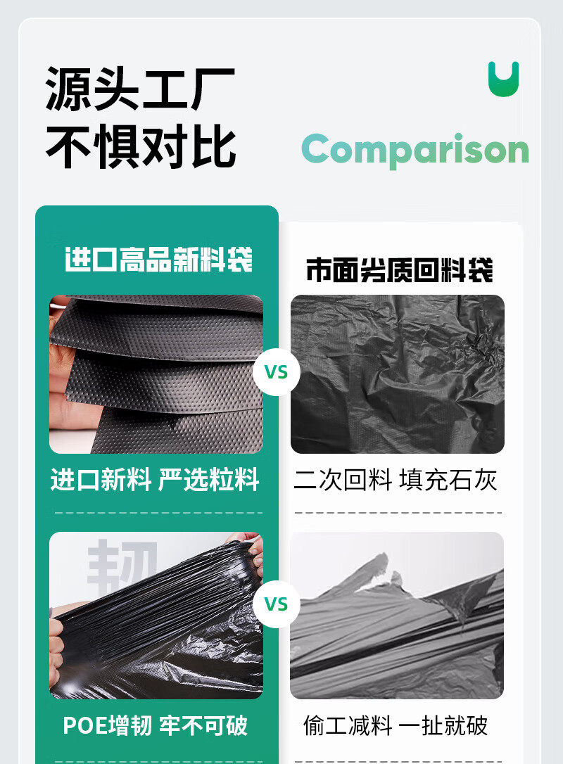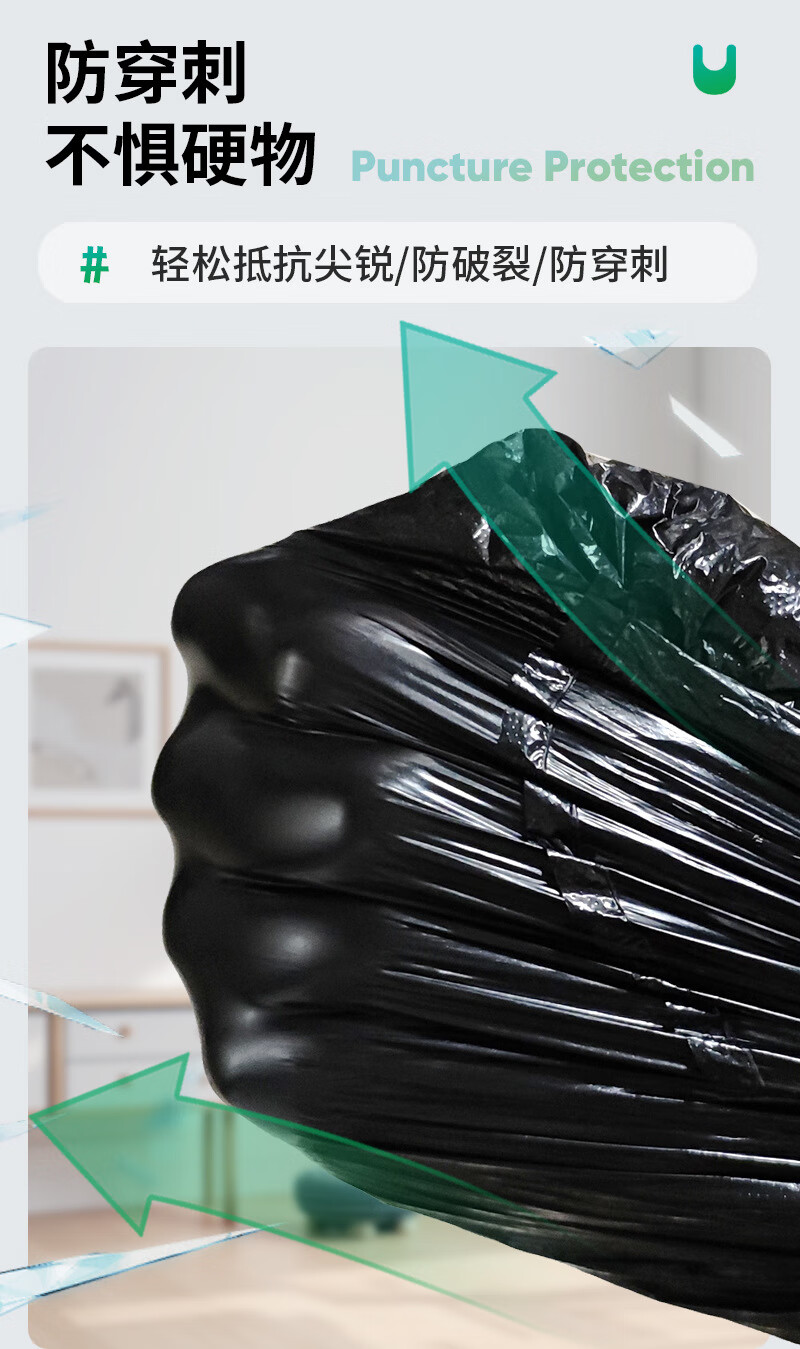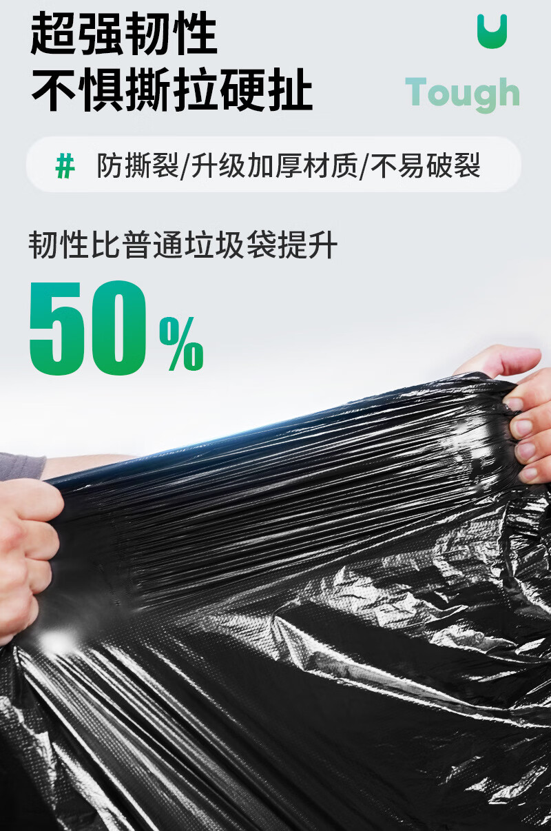ubag加厚加大号环卫保洁垃圾袋餐饮商用平口式黑色塑料袋子物业大桶袋 【爆款推荐】1卷50个 130*140中厚