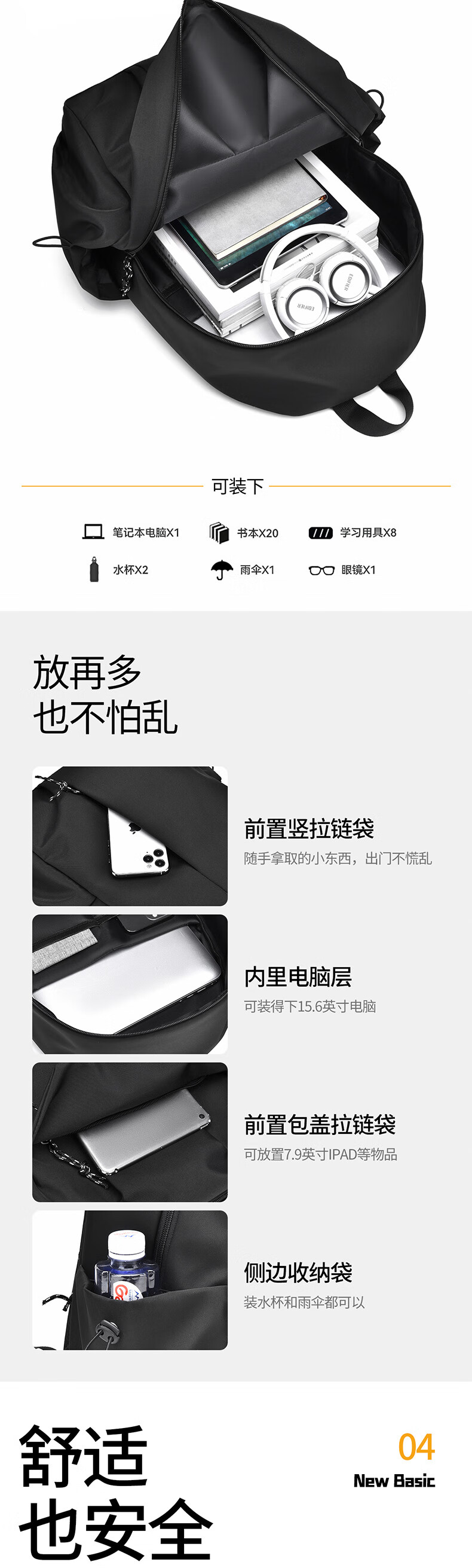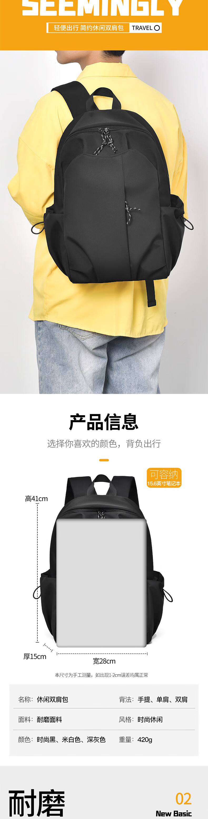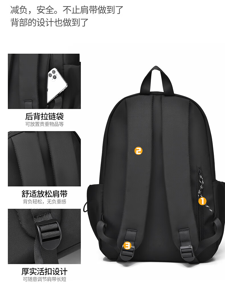 thinkplus联想双肩包学生书包男女旅行出差背包2025年新款轻便电脑包出游 【大容量经典款】黑色
