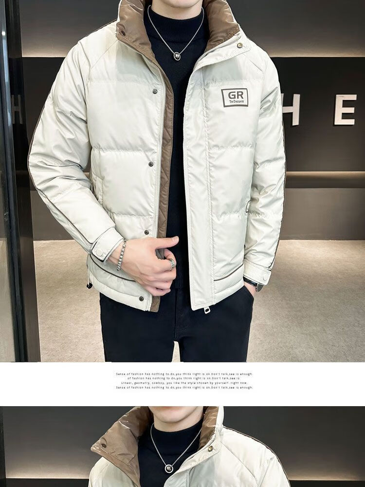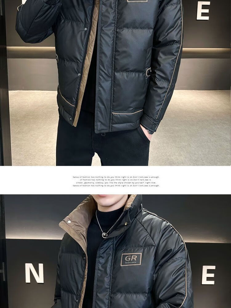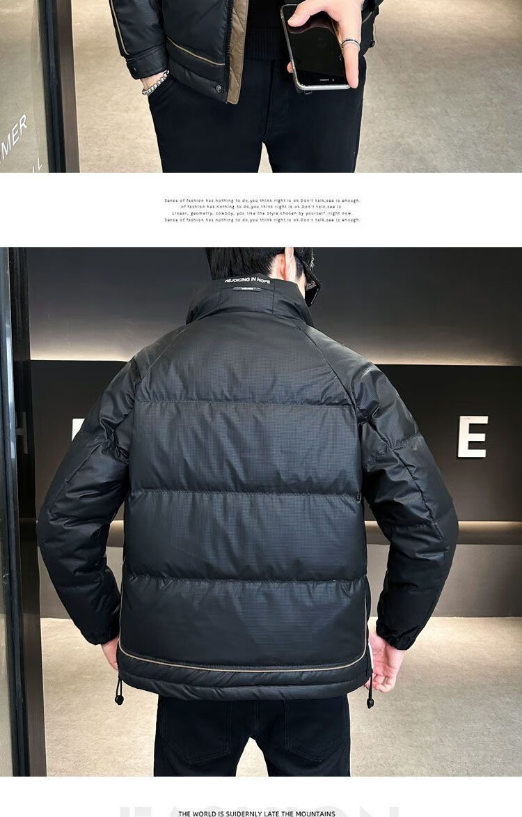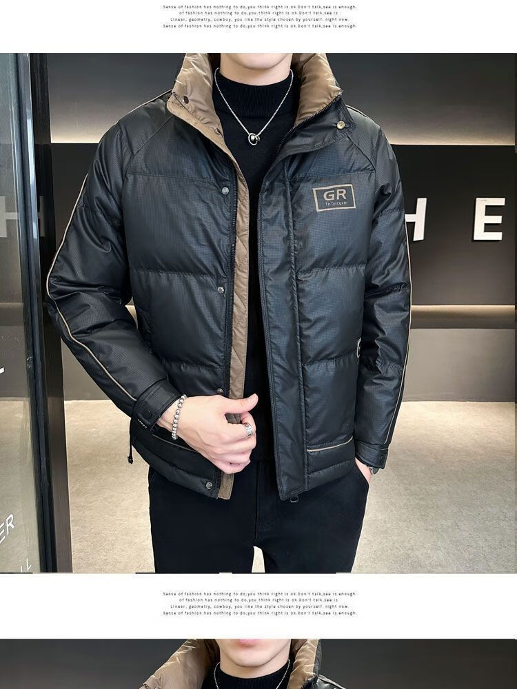 胖东来超市代购同款羽绒服男士高端冬季2025新款感拼色立领加厚保 黑色 2XL 130-145斤