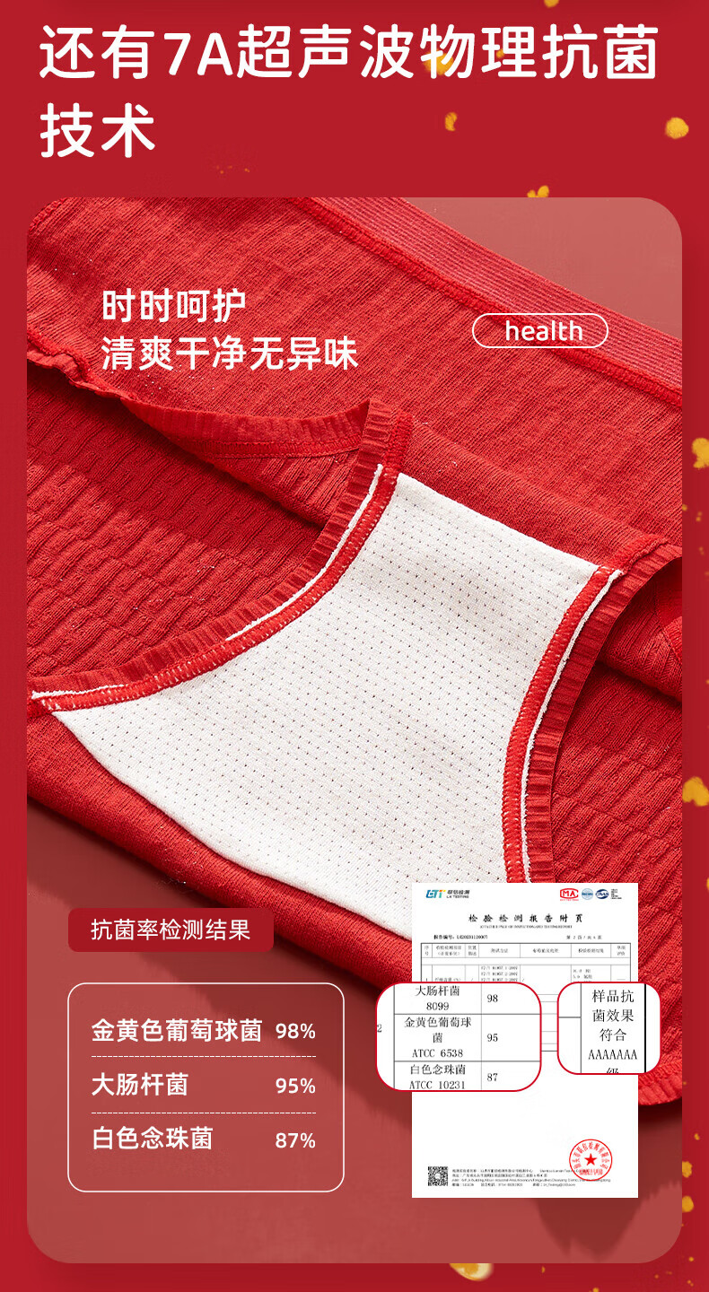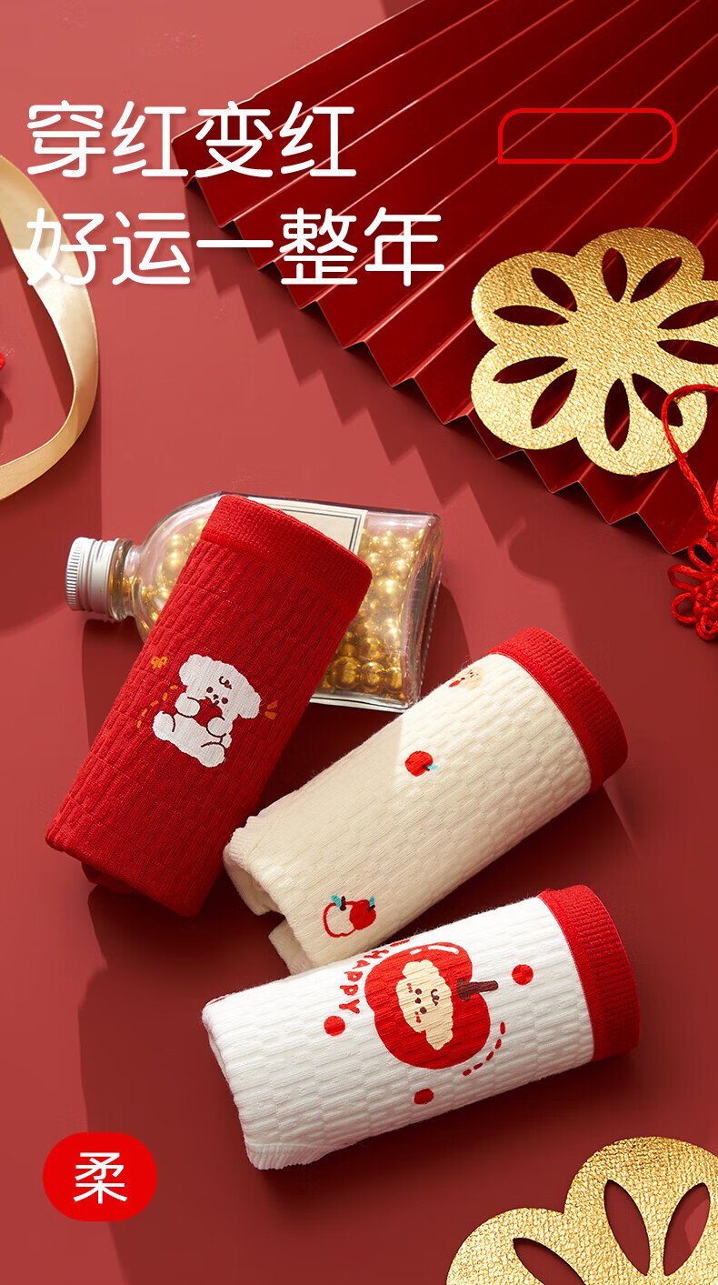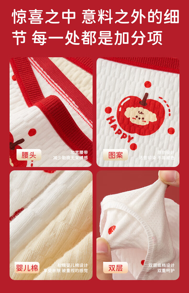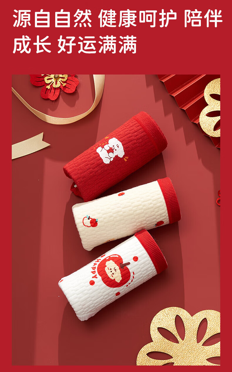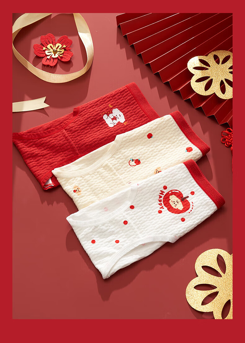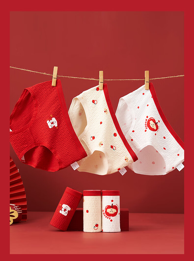顶瓜瓜本命年红色系列少女内裤舒适透气纯棉抗菌裆马年底裤婴儿棉三角裤 甜运满满-3条装【A类纯棉】 160 建议3XL码120-140斤