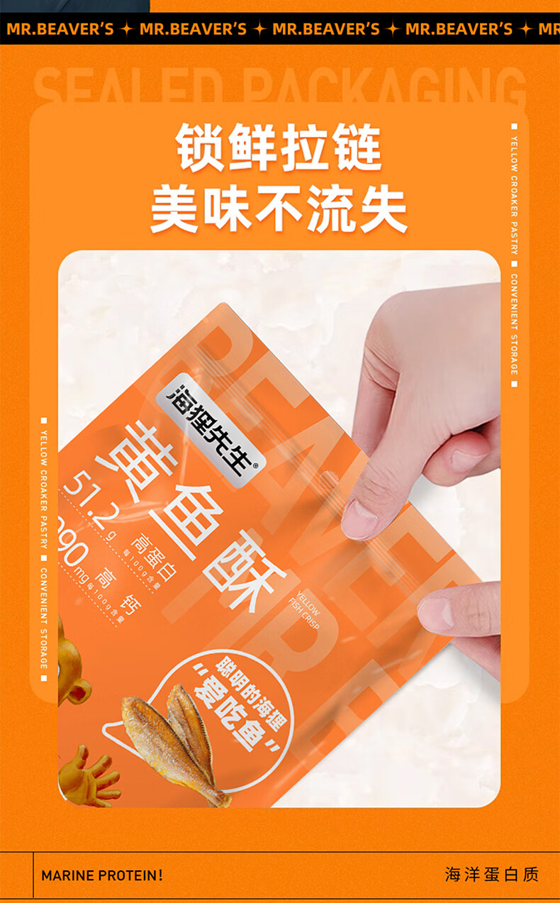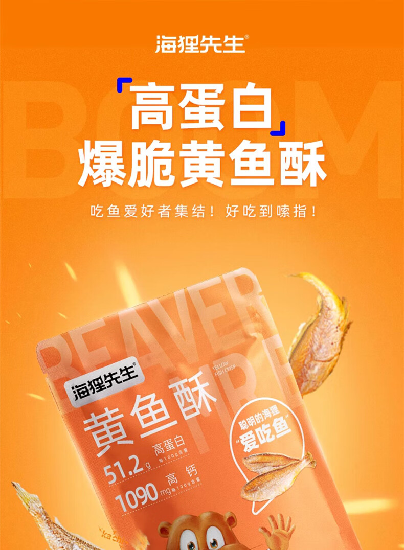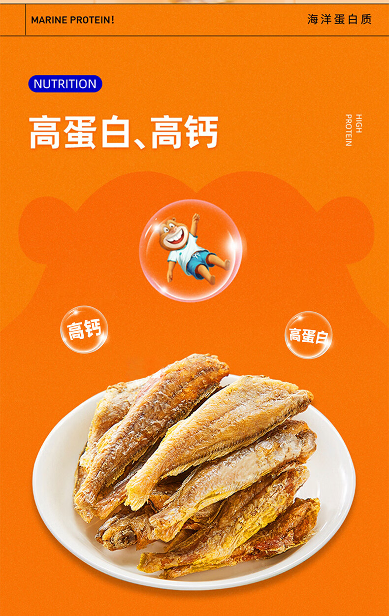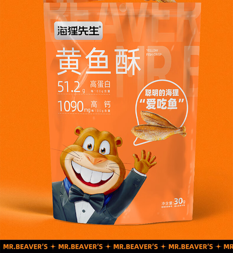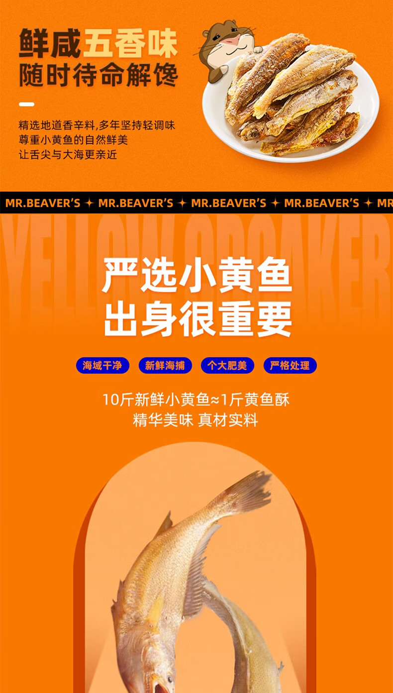 海狸先生 香酥小黄鱼儿童零食即食海味休闲零食小鱼干黄花鱼小鱼仔 30g*6袋