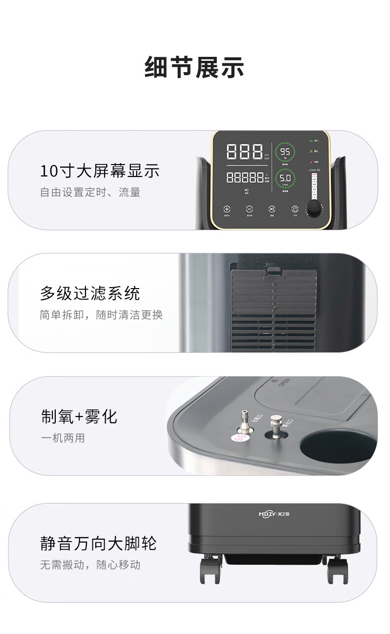 美之氧【四缸静音款】家用医用级5升 制氧雾化一体机 肺心病 老人保健 【送换新险只换不修】ZY-5AW 持续供氧进口材料