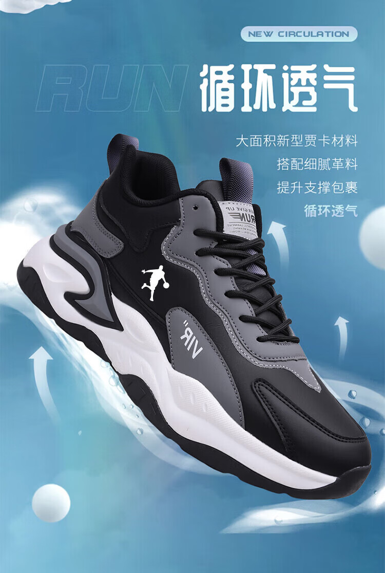 里奇.乔丹 RICKY JORDAN品牌男鞋冬季皮面加绒运动鞋透气软底减震跑步鞋轻便防水旅游鞋子 966黑色【加绒款】 44