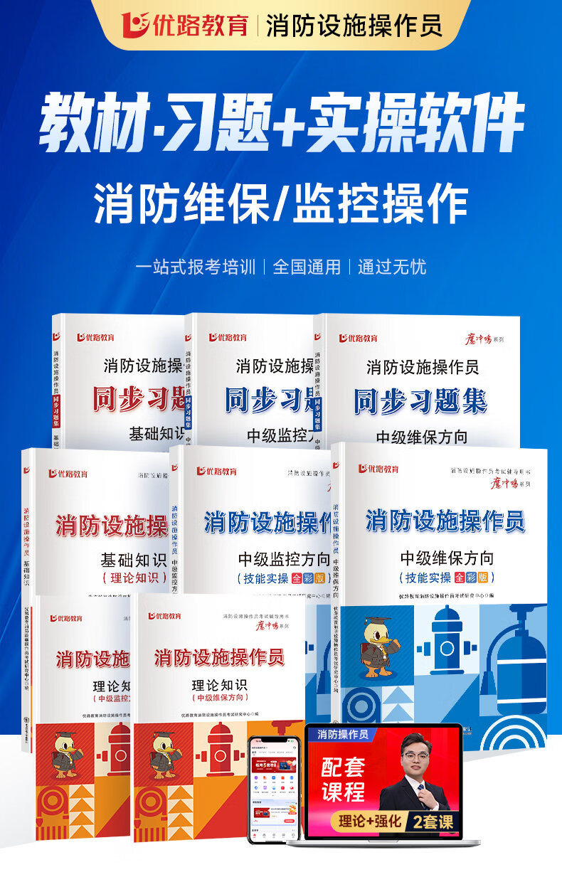 优路教育2026年中级消防设施操作员教材考试用书网课中级消操教材习题集题库课件基础知识监控维保科目赠全景实操课程 26消操-中级【基础知识】教材+习题+网课(2本) 2026