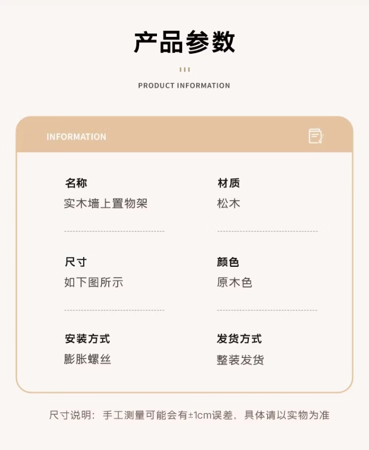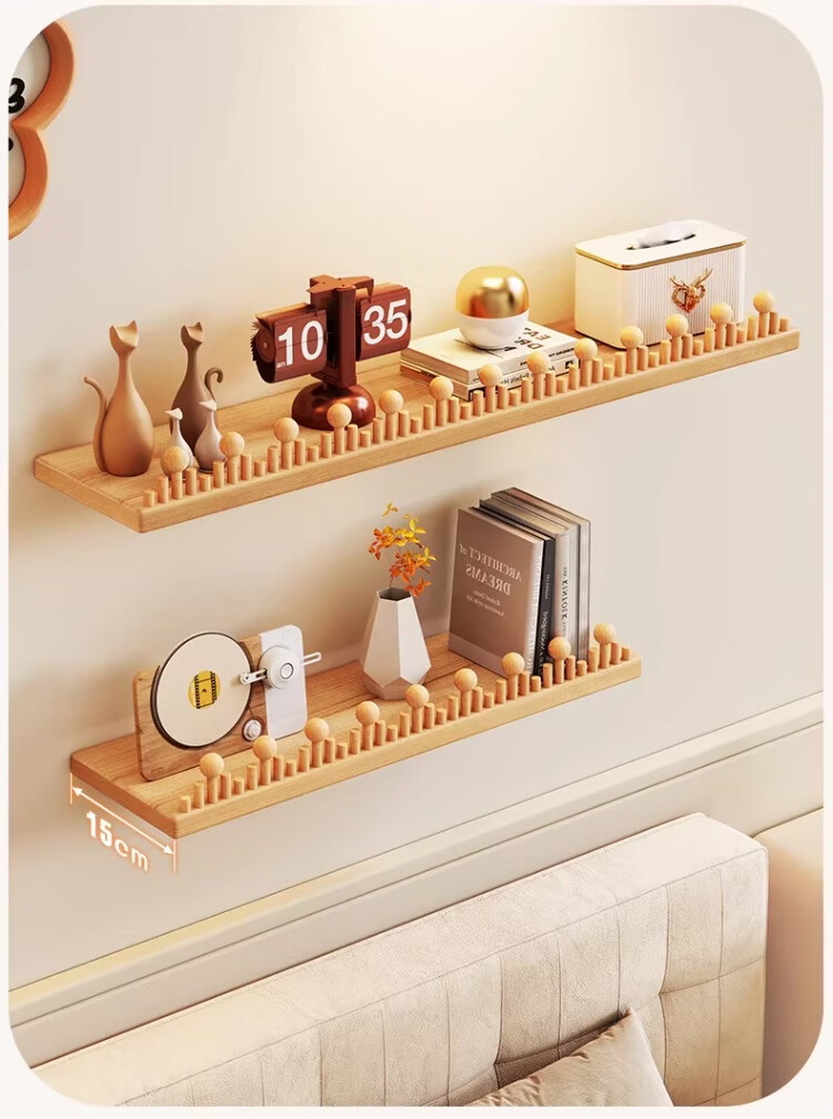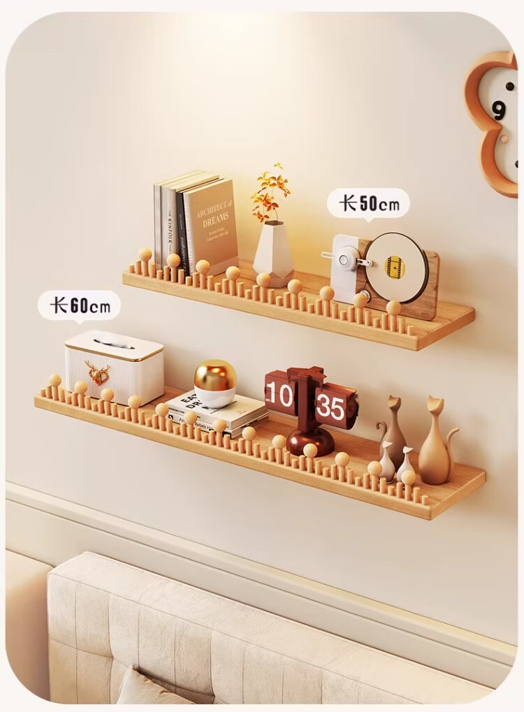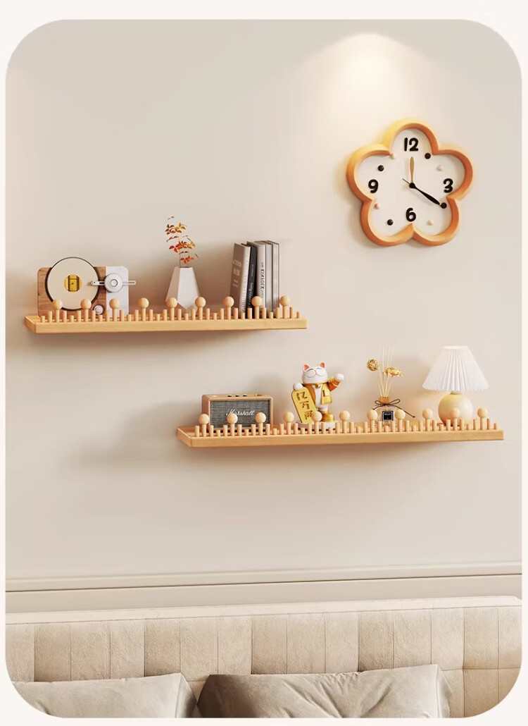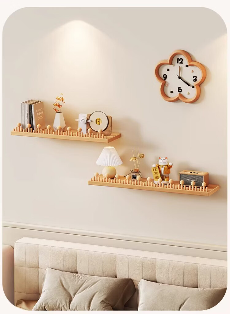 尔思家墙上置物架免打孔壁挂一字隔板墙面隔板架子客厅杯架展示架收纳架 原木色30cm