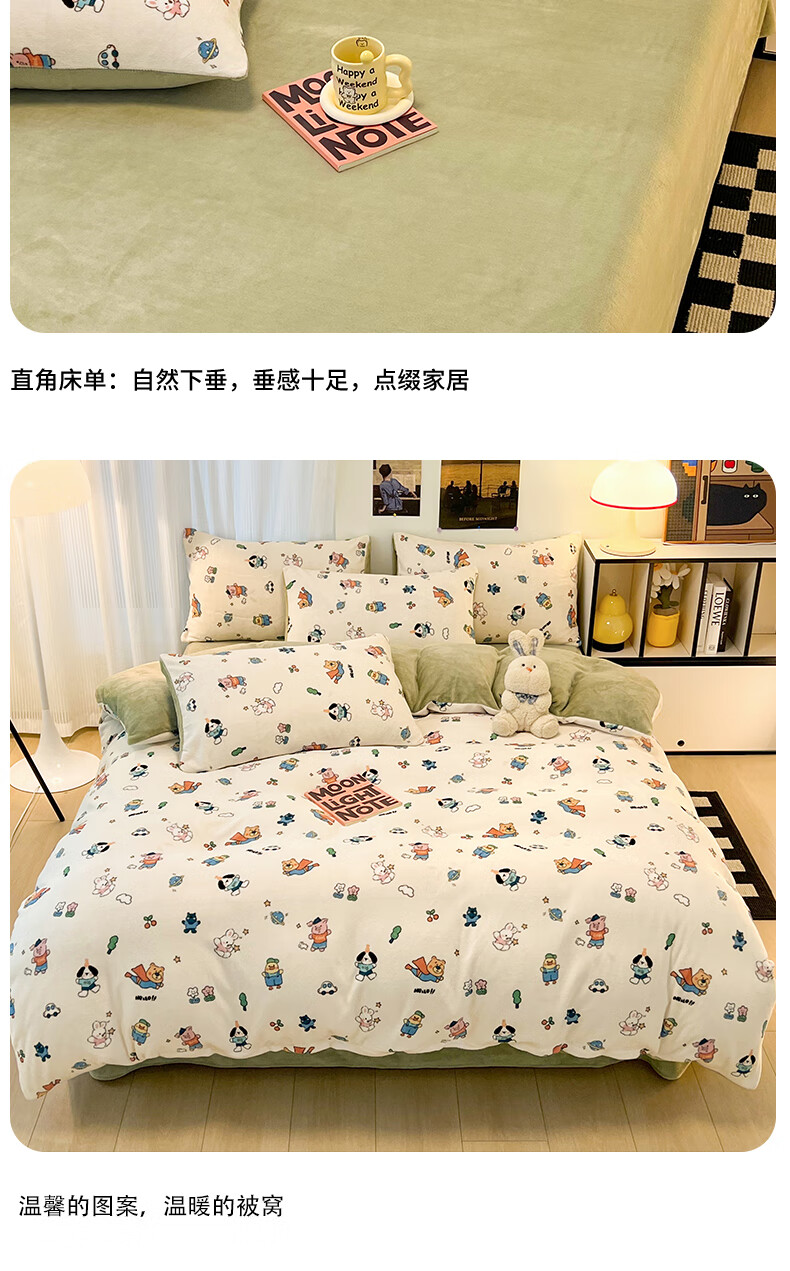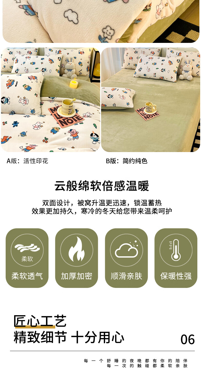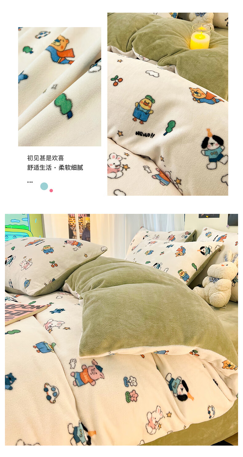 VJE简约格调牛奶绒四件套冬季加厚保暖双面绒床单被套加绒高克重三件 三角空间 三件套1.2m 床单款 (被套150*200cm)