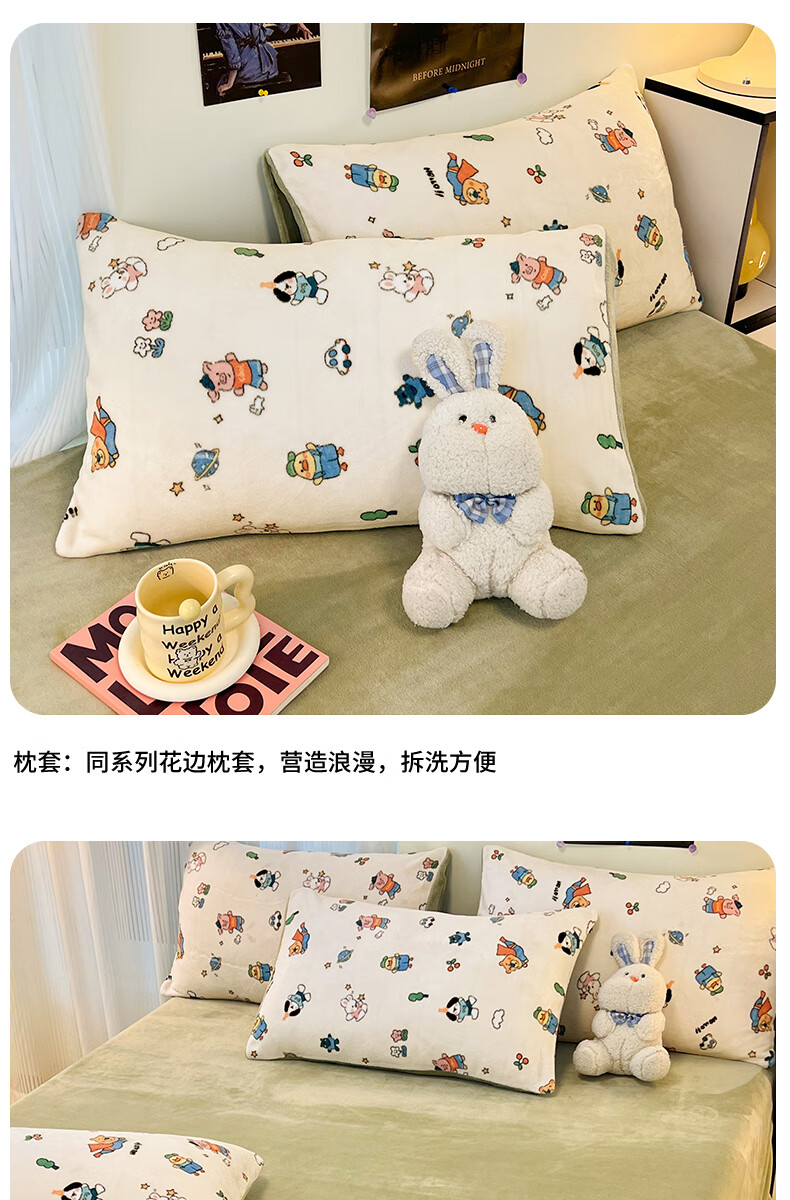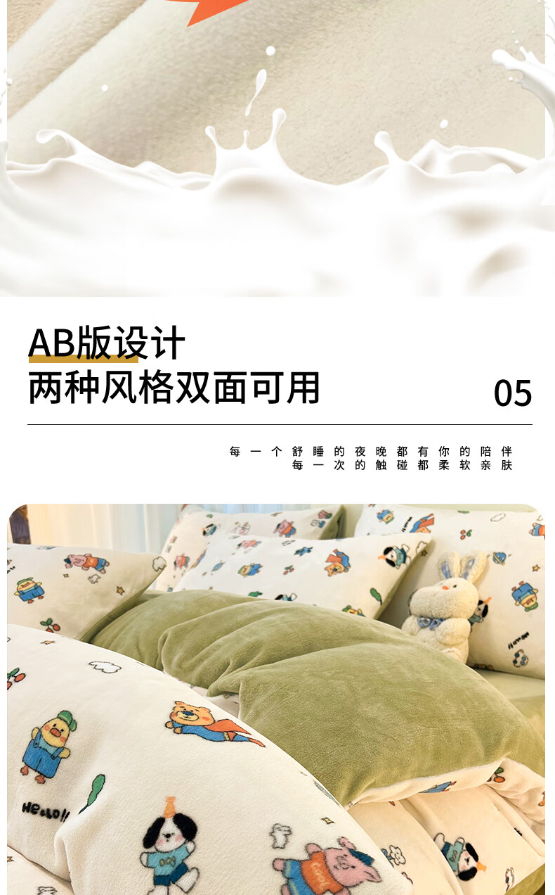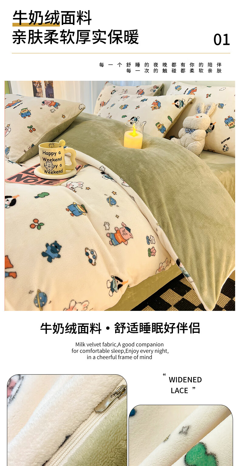 VJE简约格调牛奶绒四件套冬季加厚保暖双面绒床单被套加绒高克重三件 三角空间 三件套1.2m 床单款 (被套150*200cm)