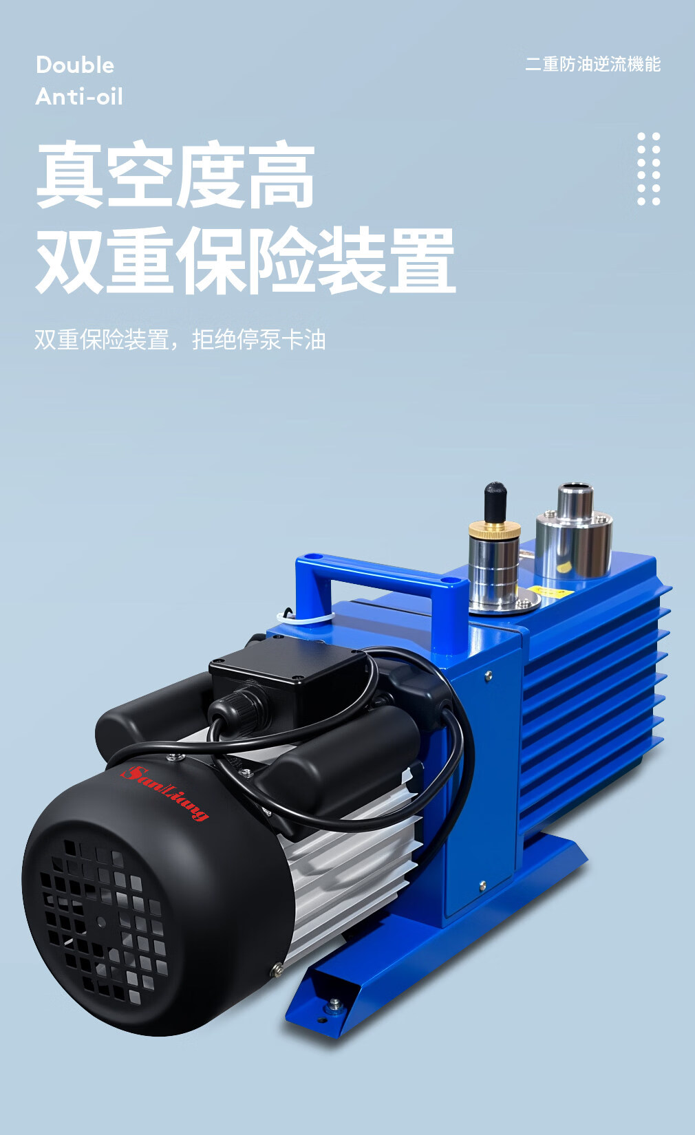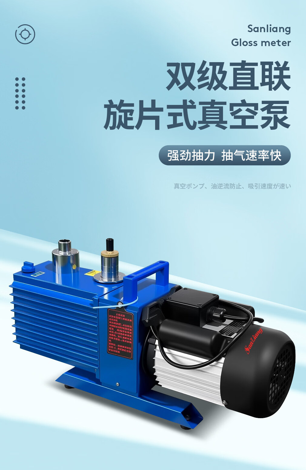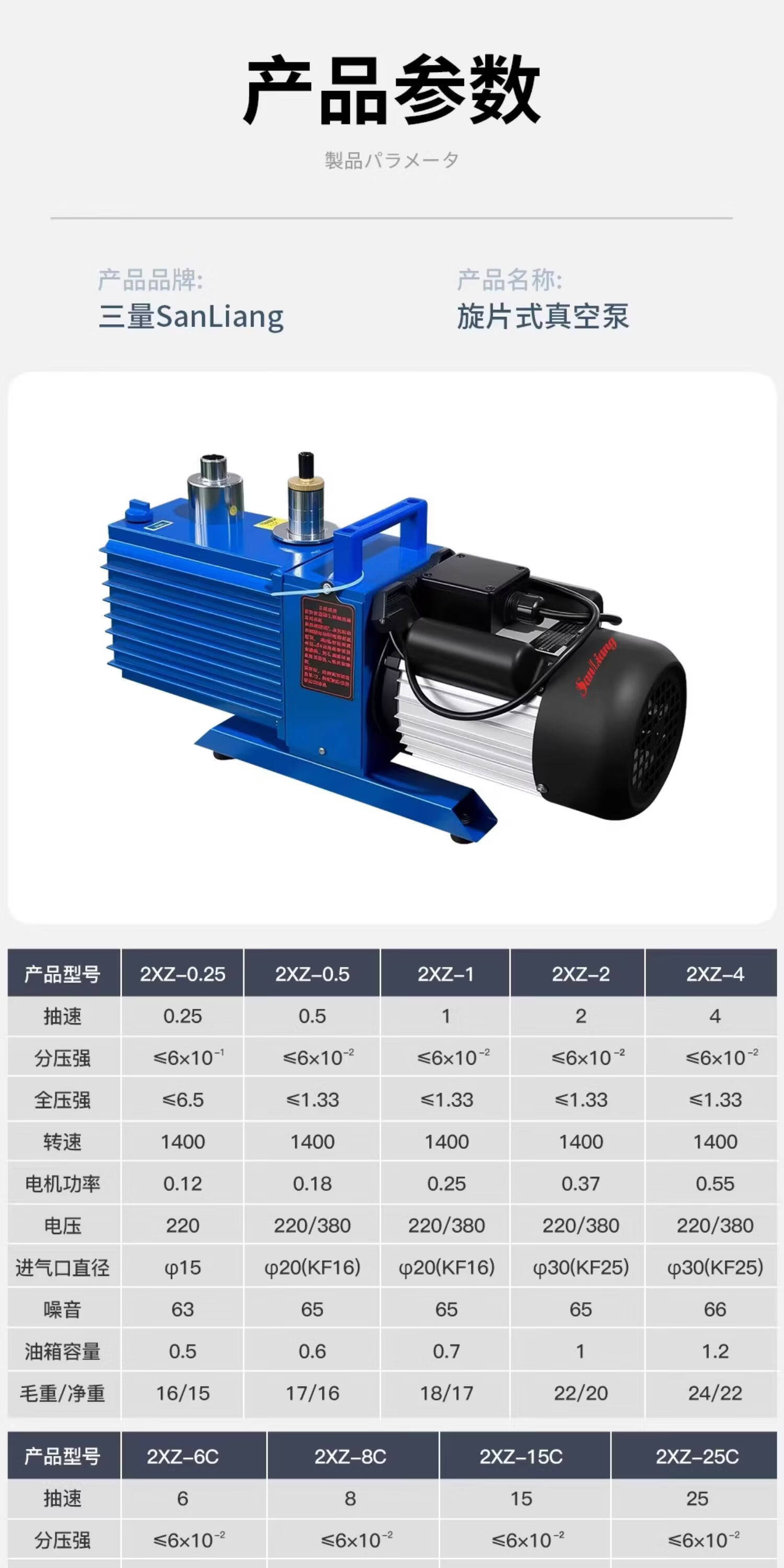 三量(sanliang)三量双级直联旋片式真空泵实验小型工业抽气油泵三相高速2XZ 2XZ-0.25(220V单相,抽速0.25L/s) 无规格