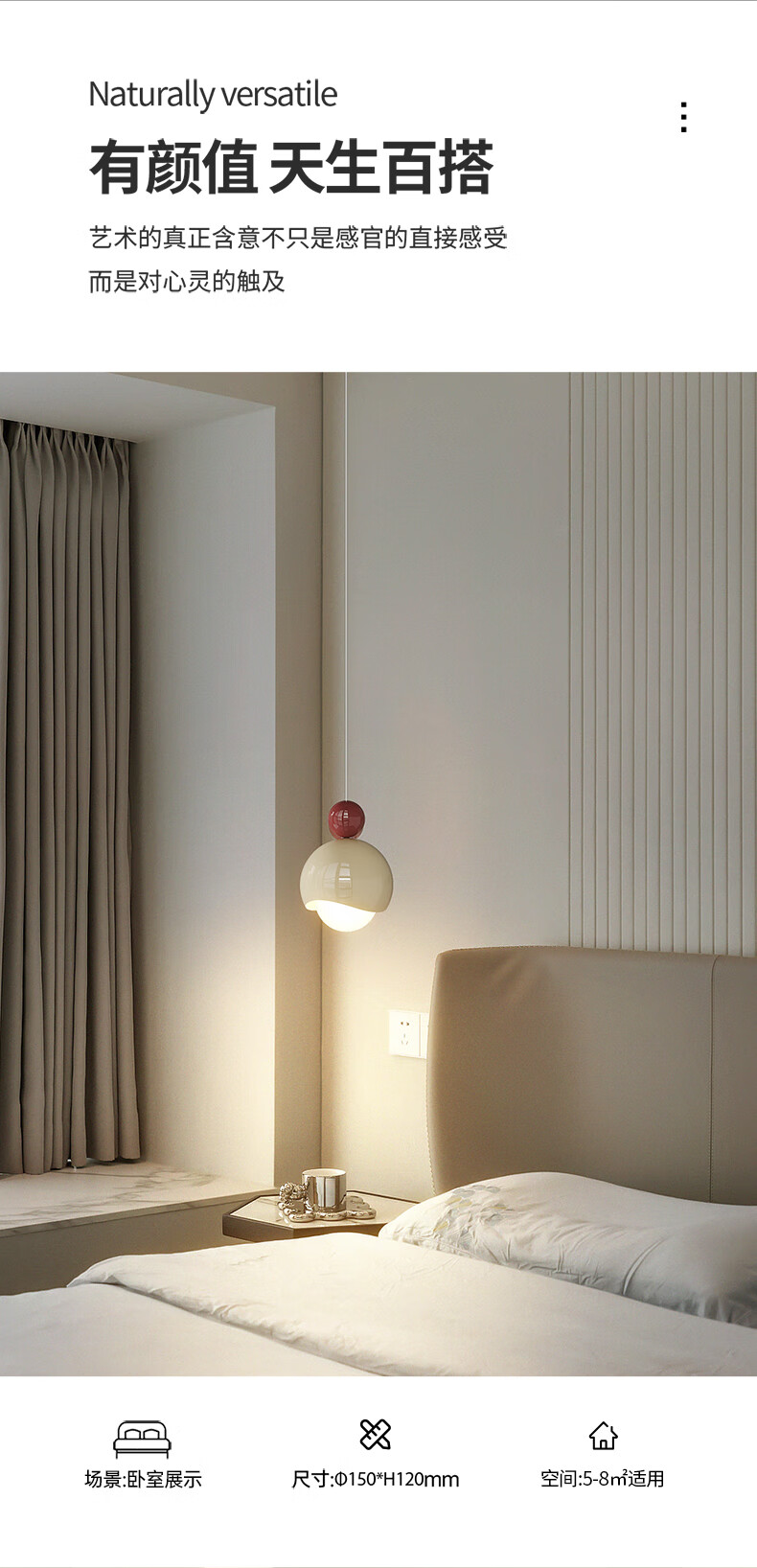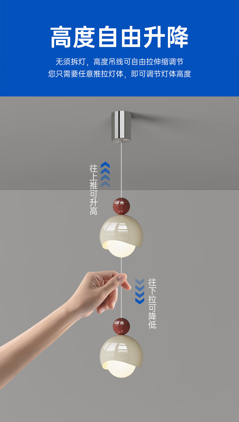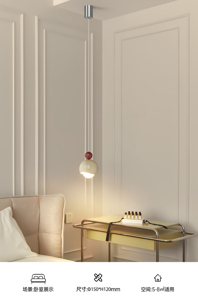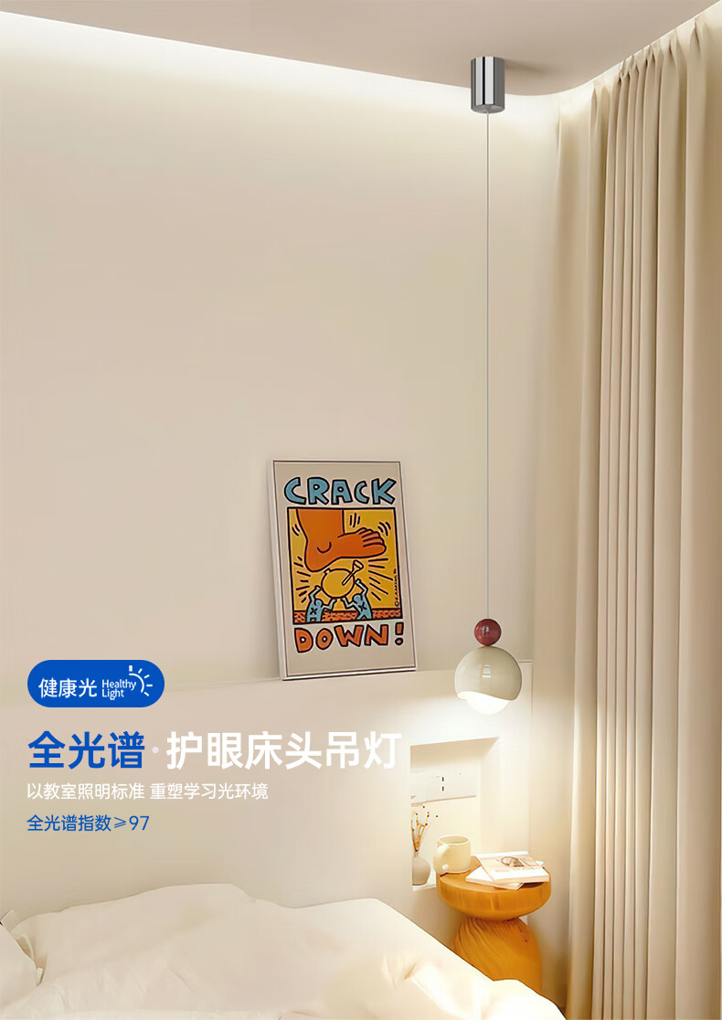 卡伯森设计师款卧室床头吊灯可升降多功能全光谱护沙发边眼客厅背景墙灯 普通款-直径15cm【三色变光】【全光谱】