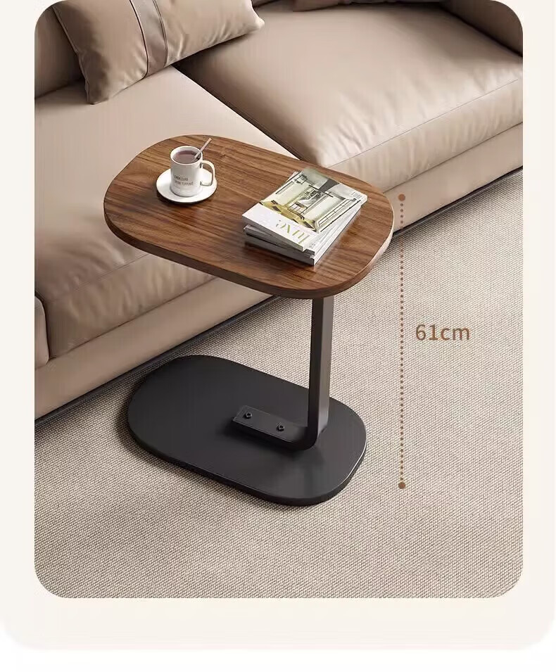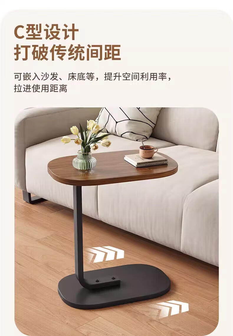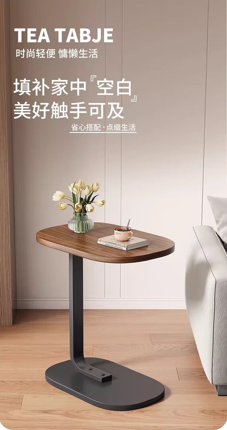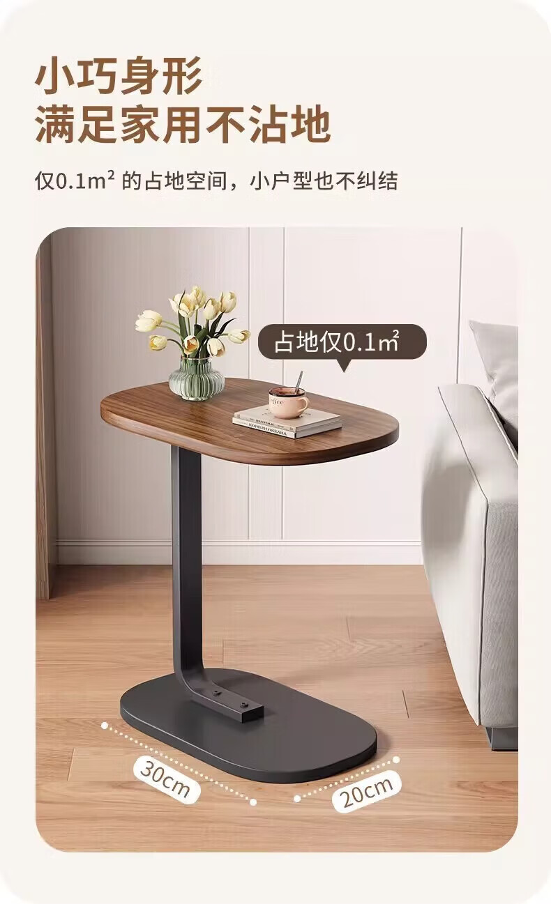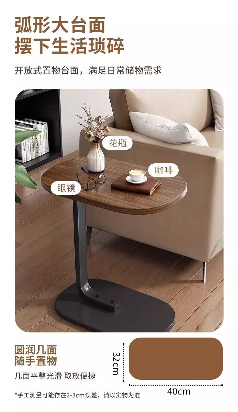 馨婺家床头柜现代简约小型卧室落地床边置物小型桌子茶几边几简易床头架 黑胡桃-小号C型【福利款】