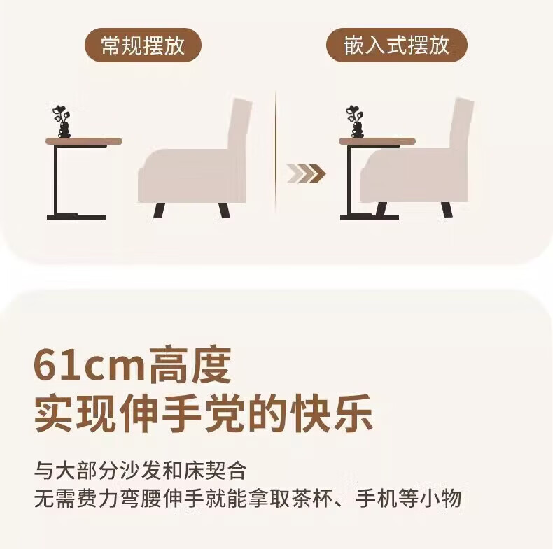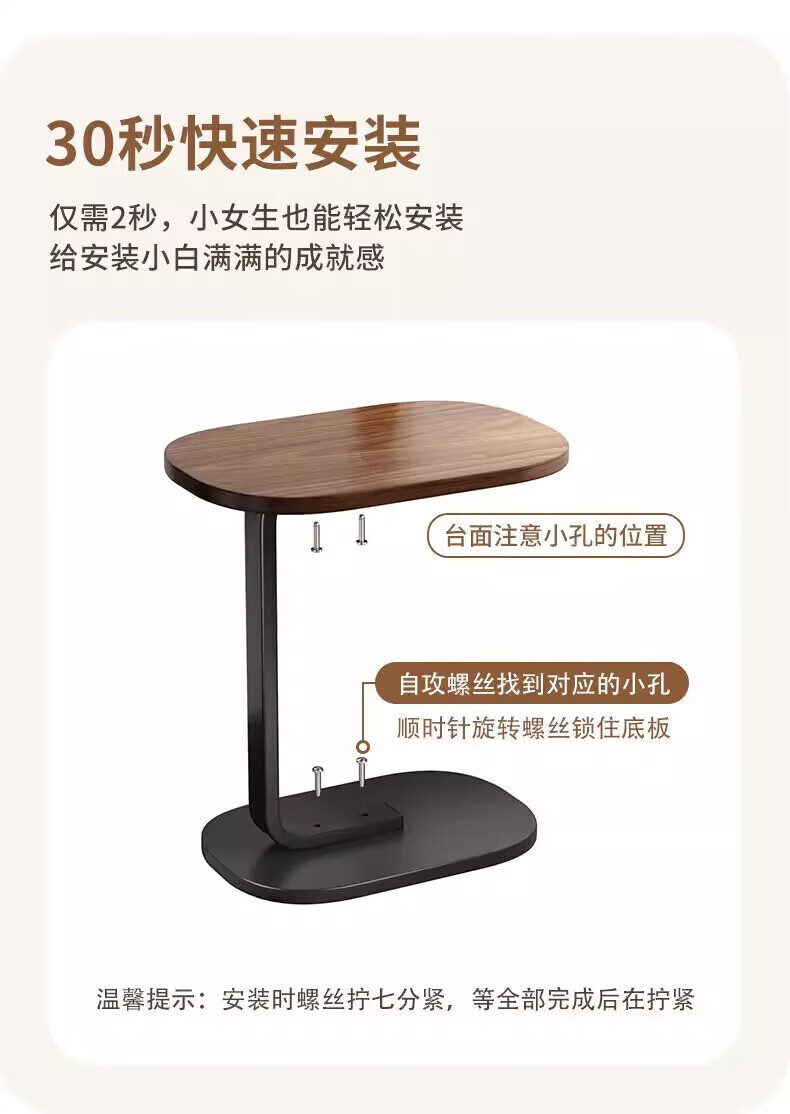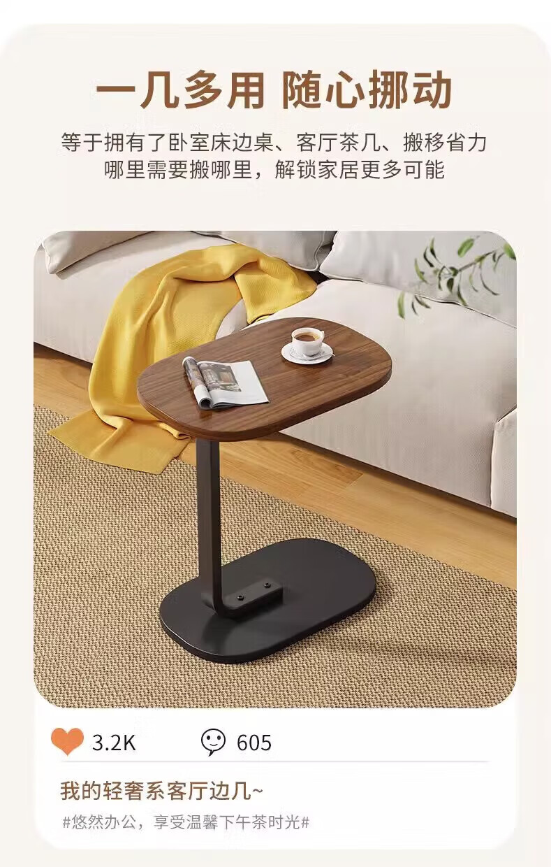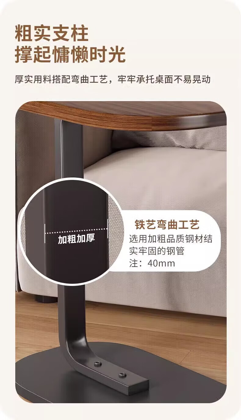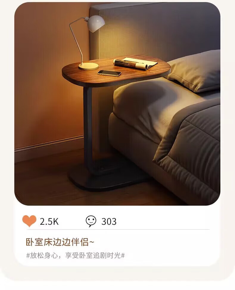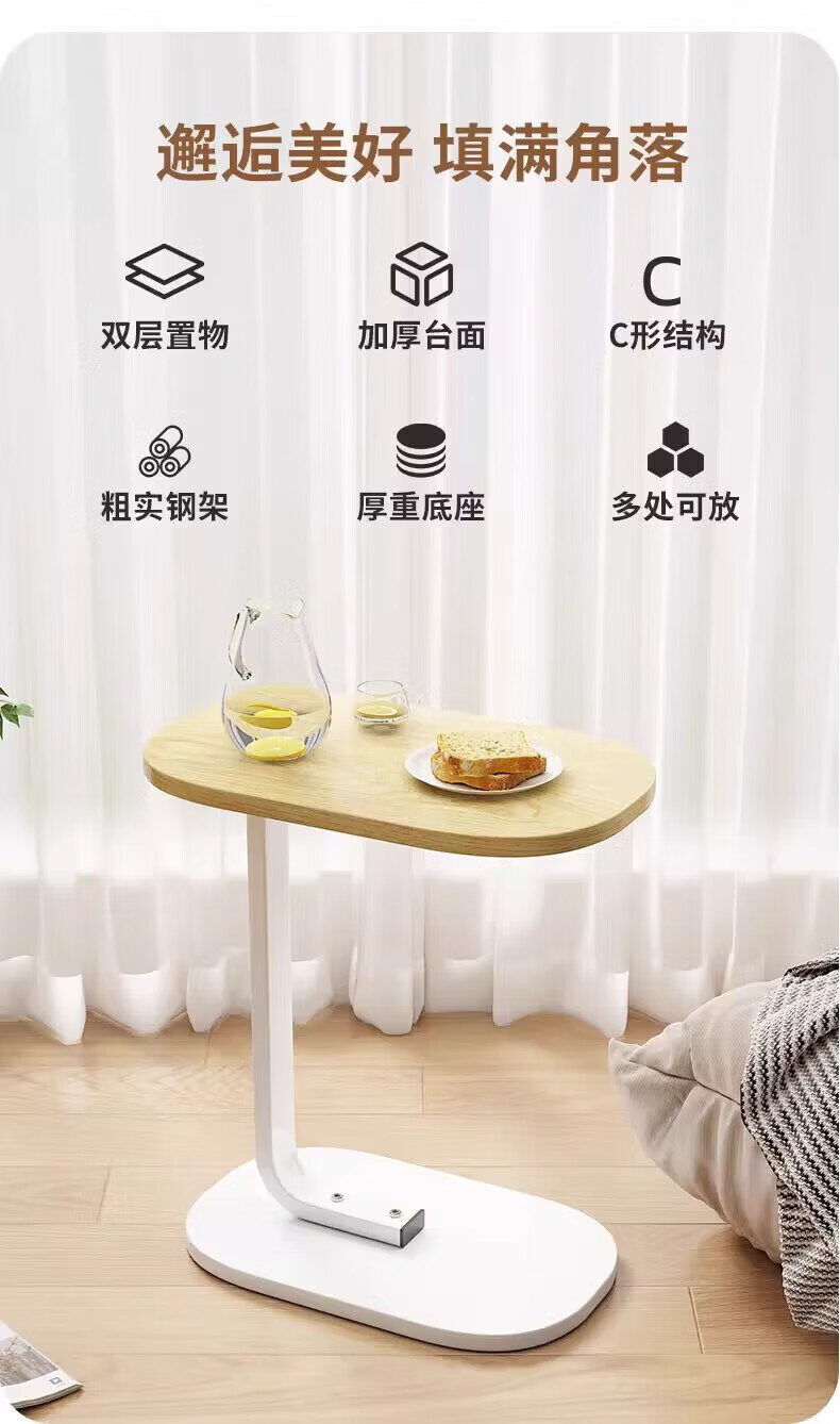 馨婺家床头柜现代简约小型卧室落地床边置物小型桌子茶几边几简易床头架 黑胡桃-小号C型【福利款】