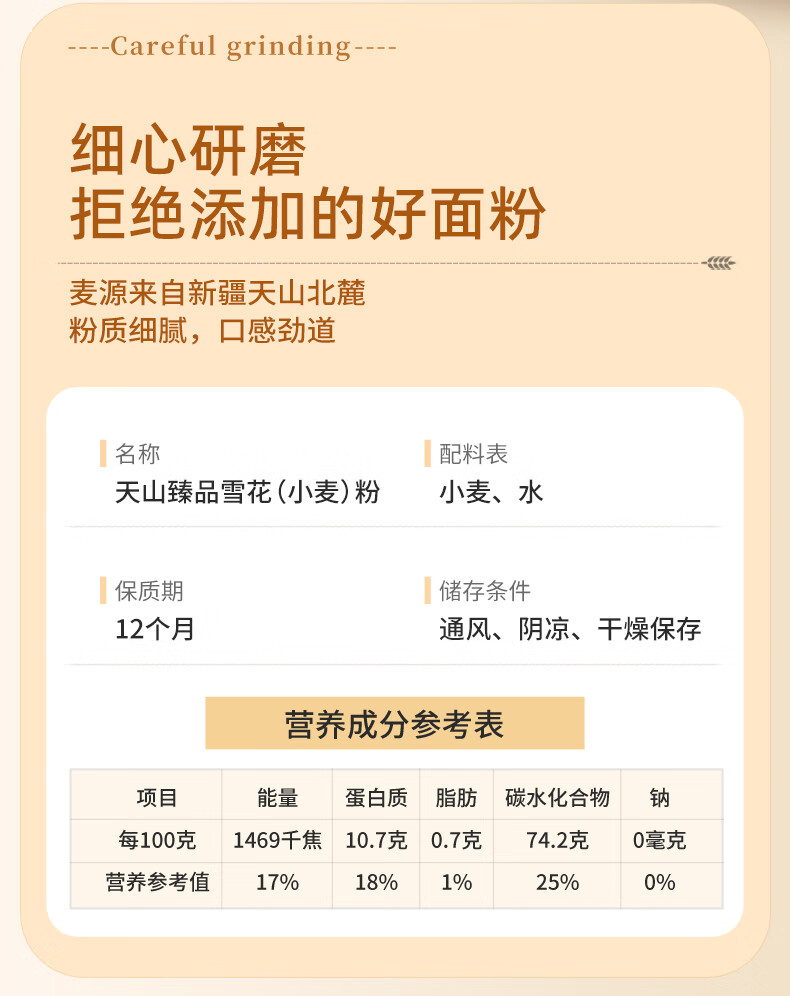 天山 新疆面粉臻品雪花粉 家用包子馒头拉条子中筋通用小麦粉 5斤