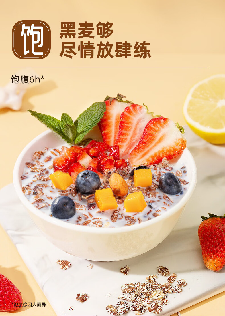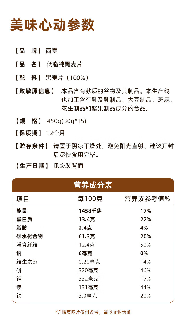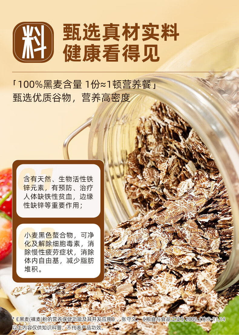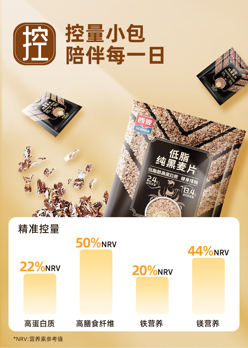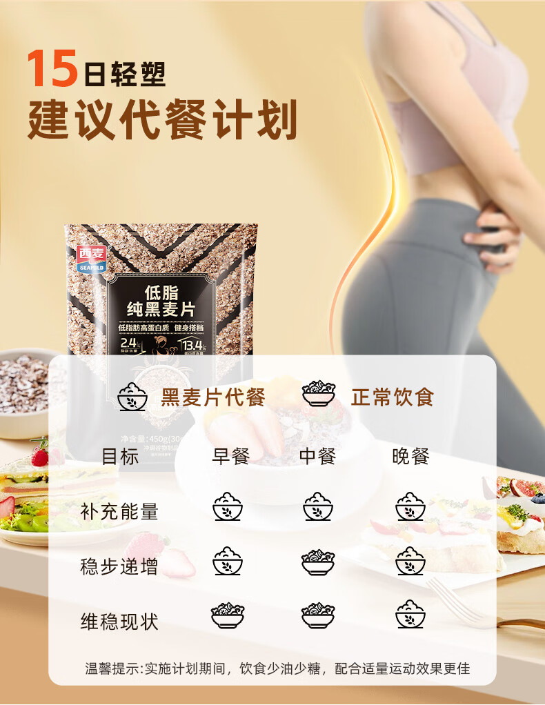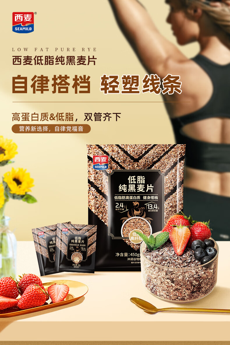 西麦低脂纯黑麦片450g 高纤健身代餐即食谷物早餐麦片无添加蔗糖