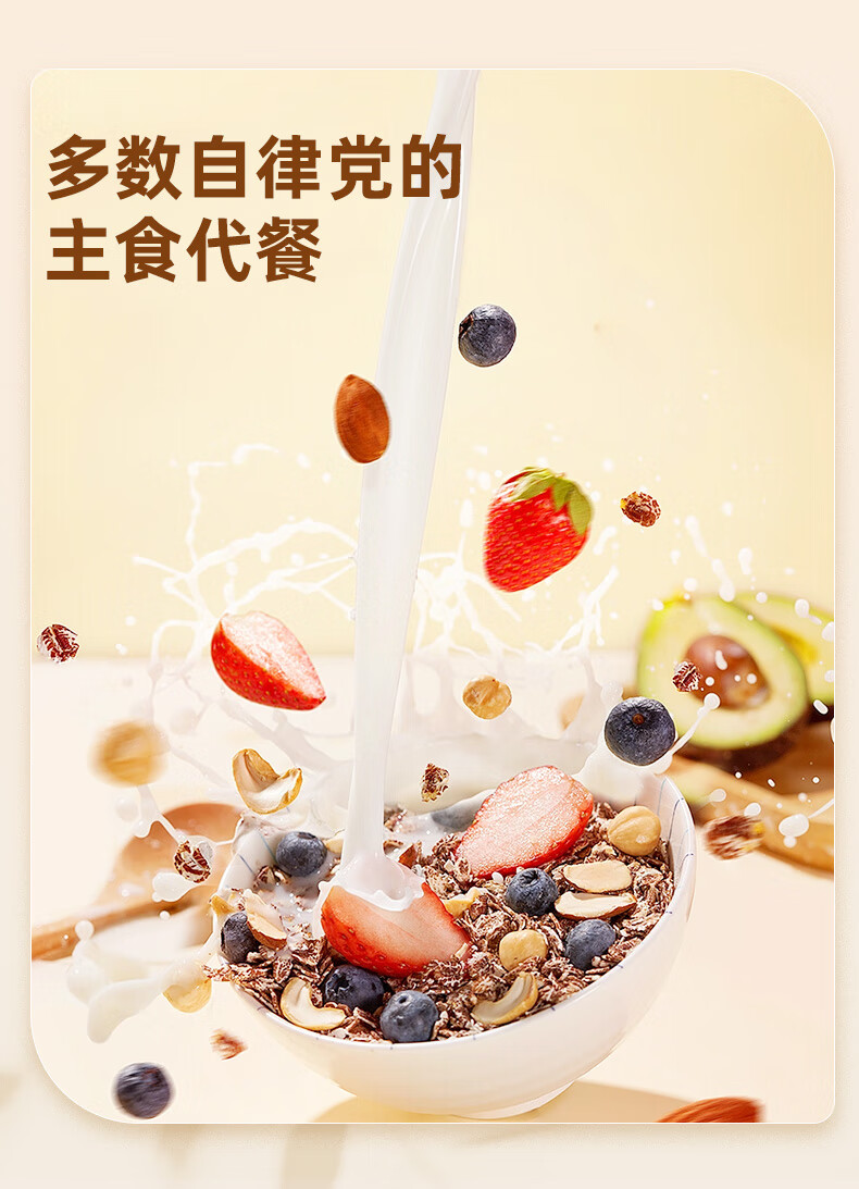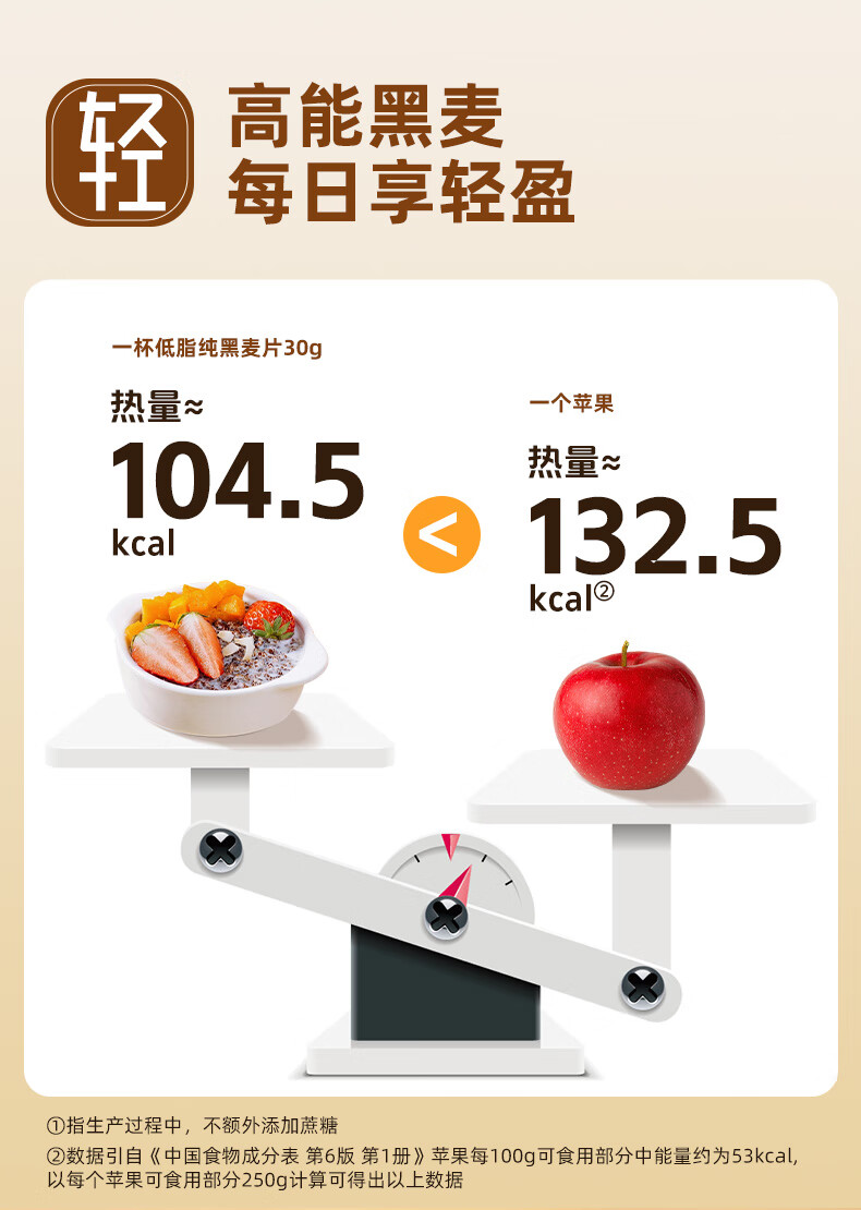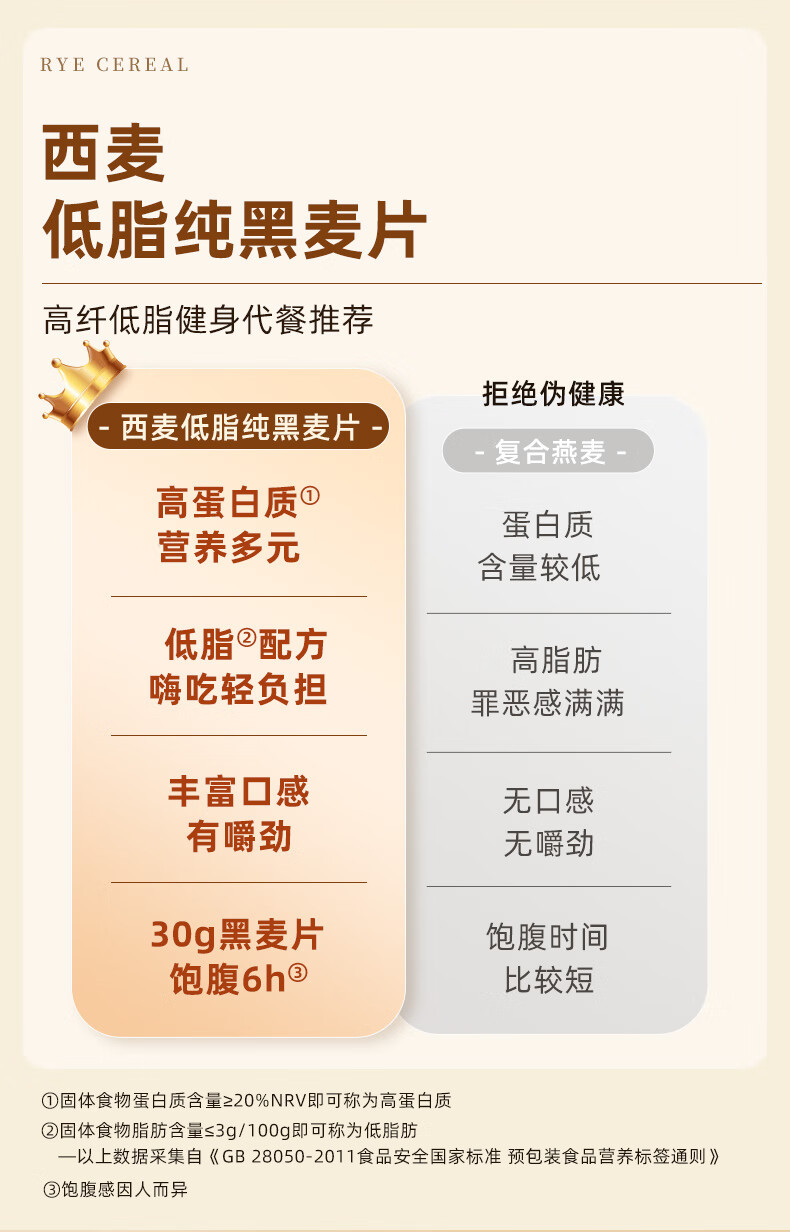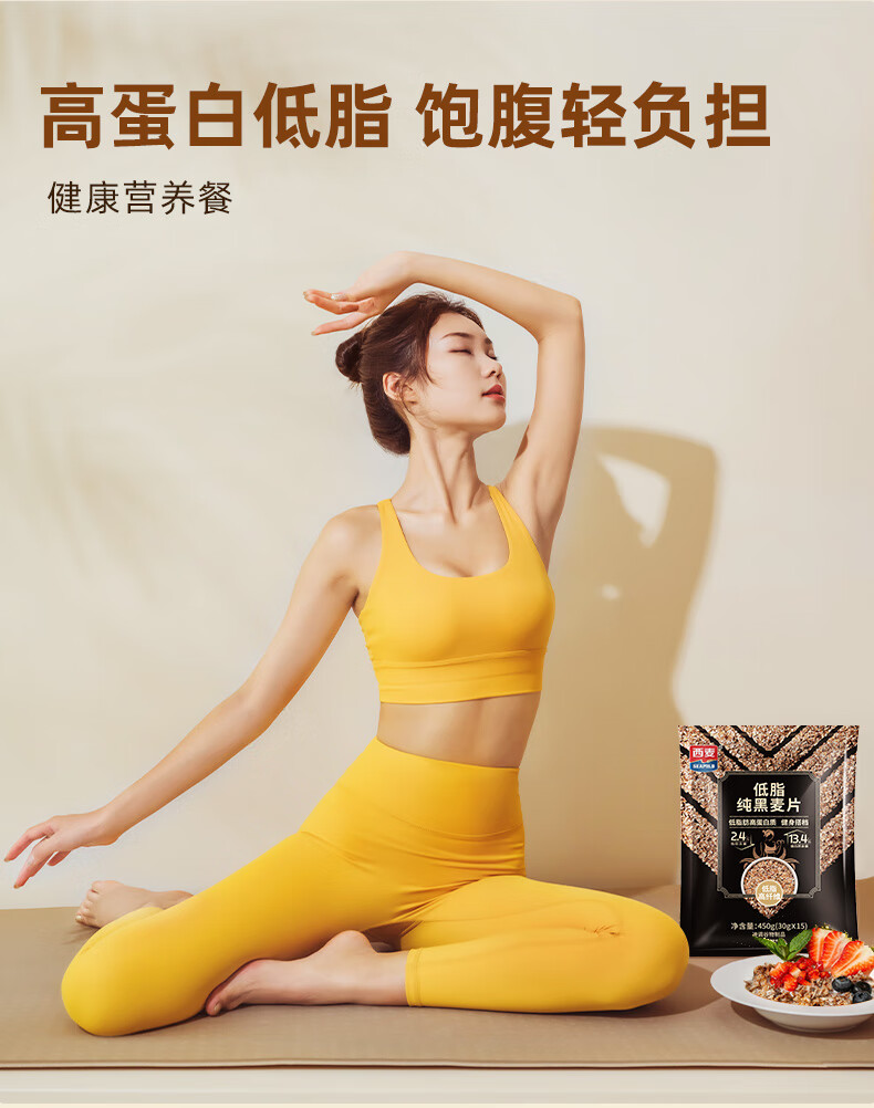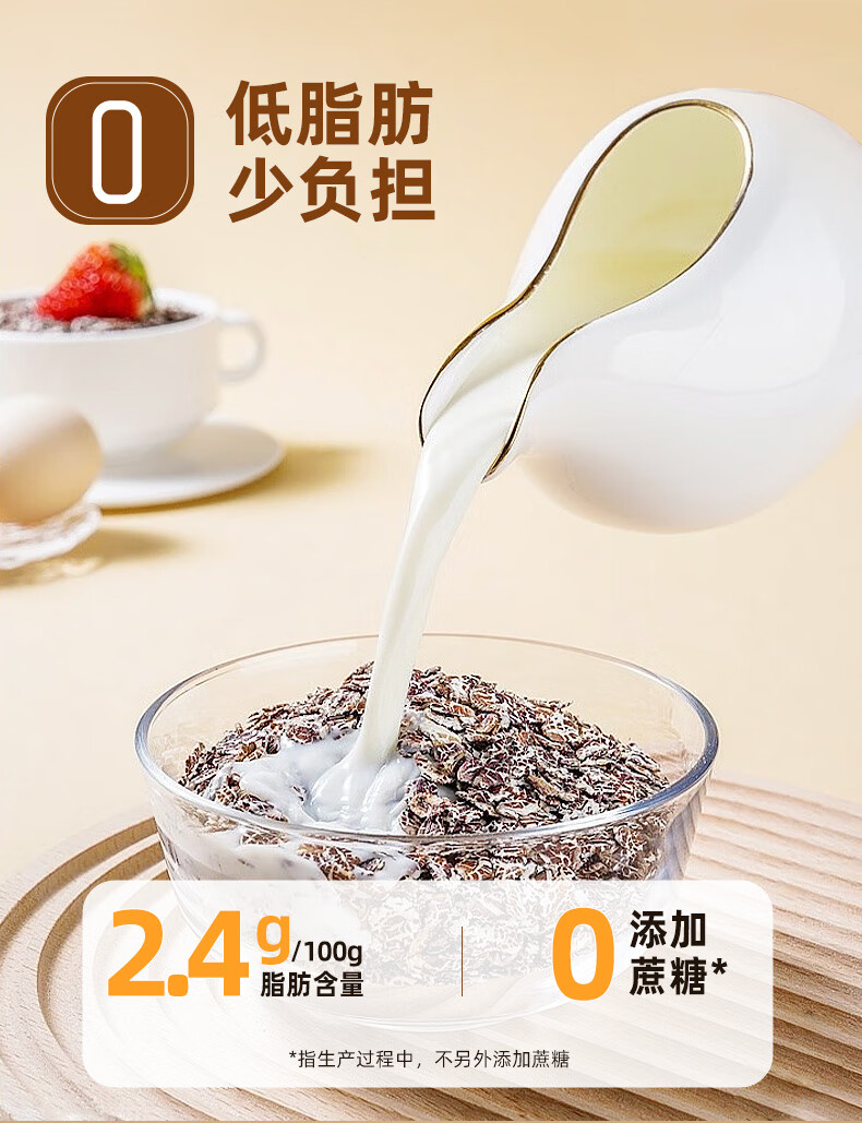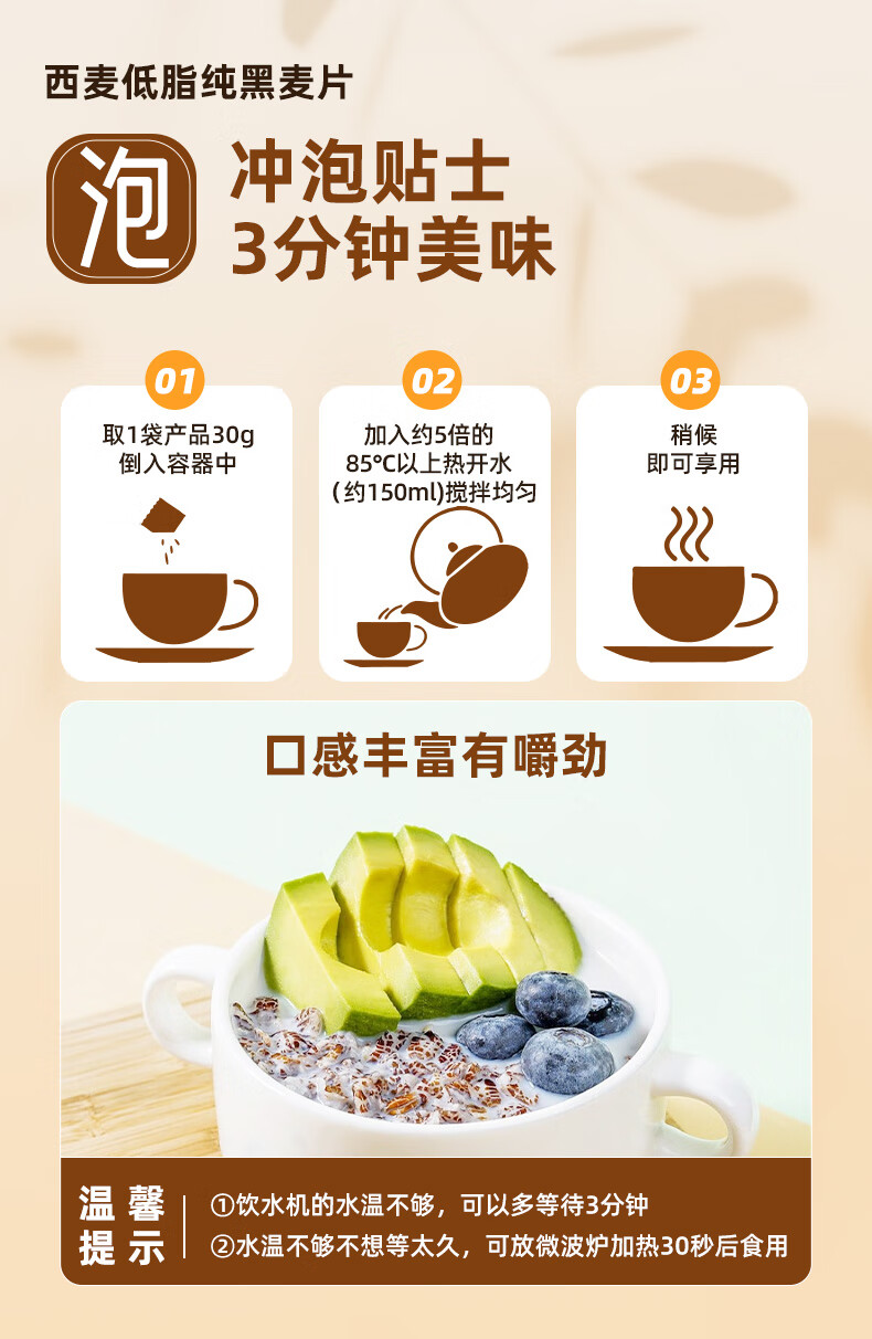 西麦低脂纯黑麦片450g 高纤健身代餐即食谷物早餐麦片无添加蔗糖