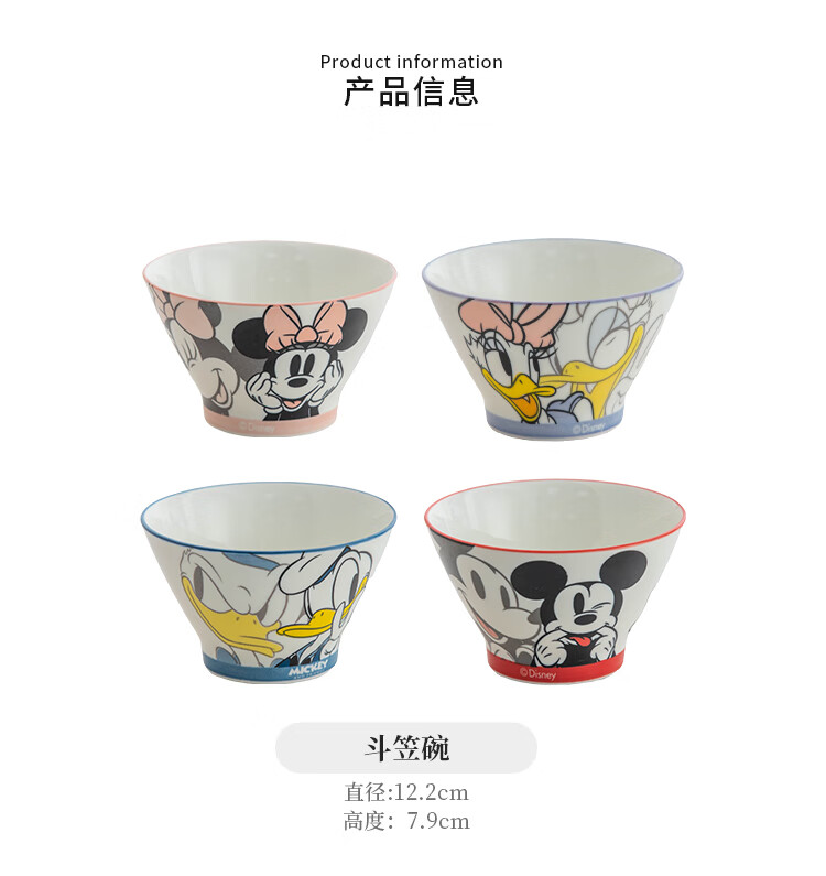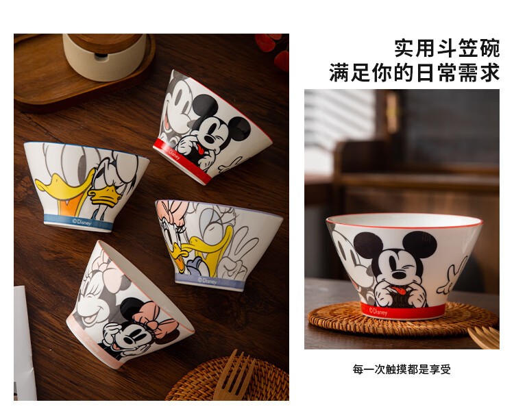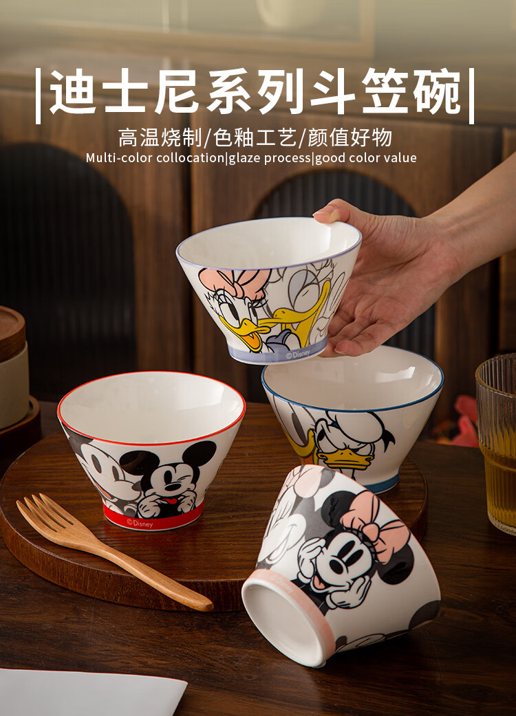 【新品首发】迪士尼奇趣系列陶瓷斗笠碗饭碗釉下彩餐具高颜值吃饭 5英寸斗笠碗(米奇)