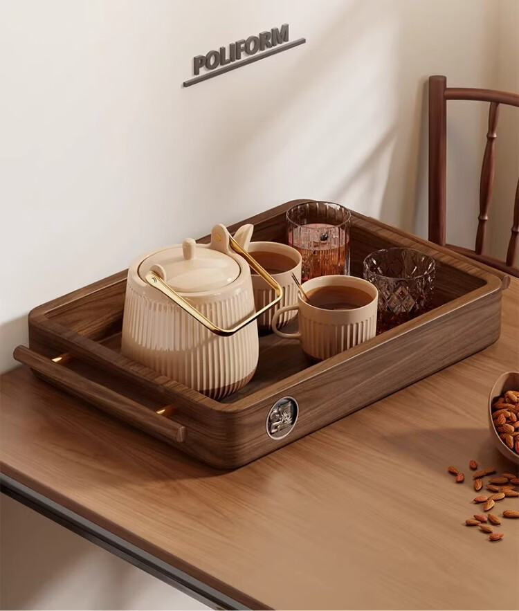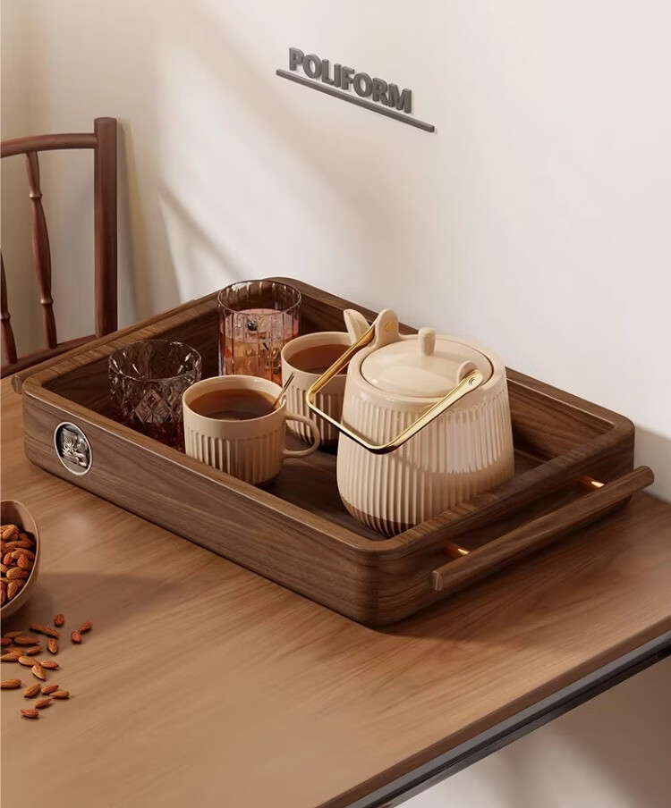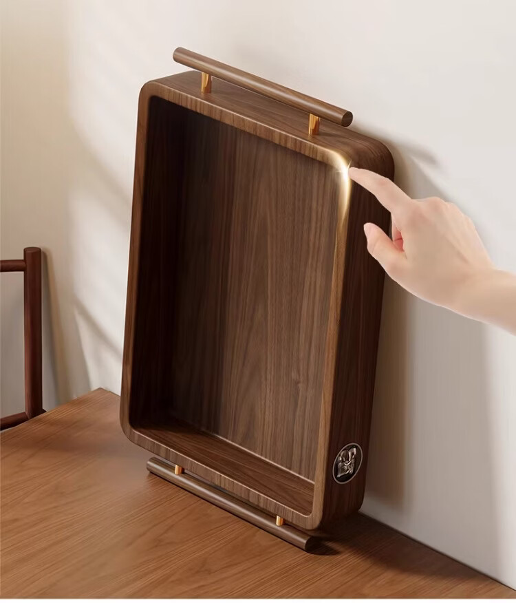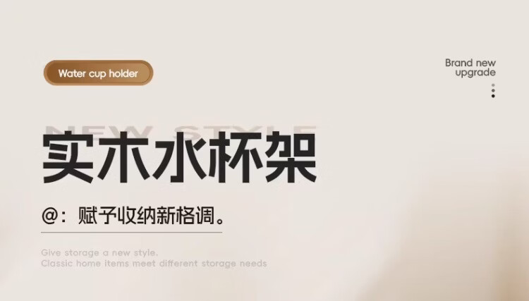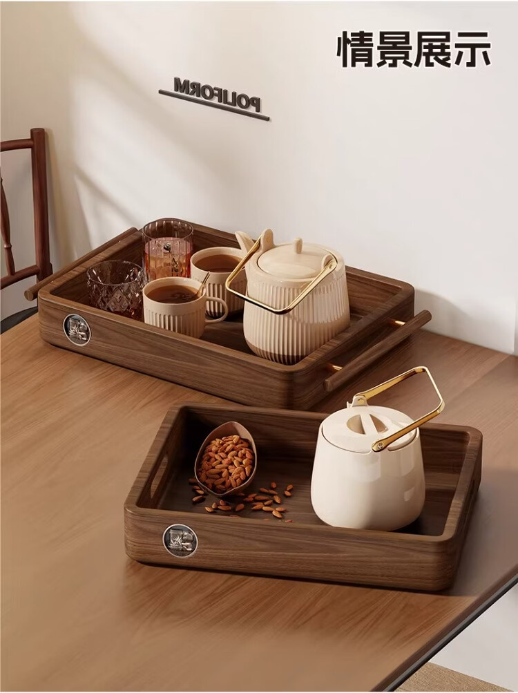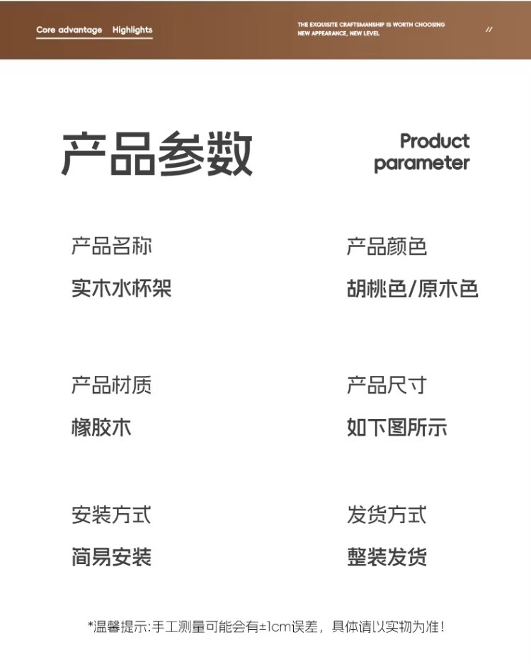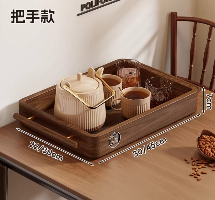 尔思家实木水杯架茶盘杯子收纳置物架桌面放水杯咖啡杯马克杯餐桌展示架 胡桃色大号把手款【进口实木】